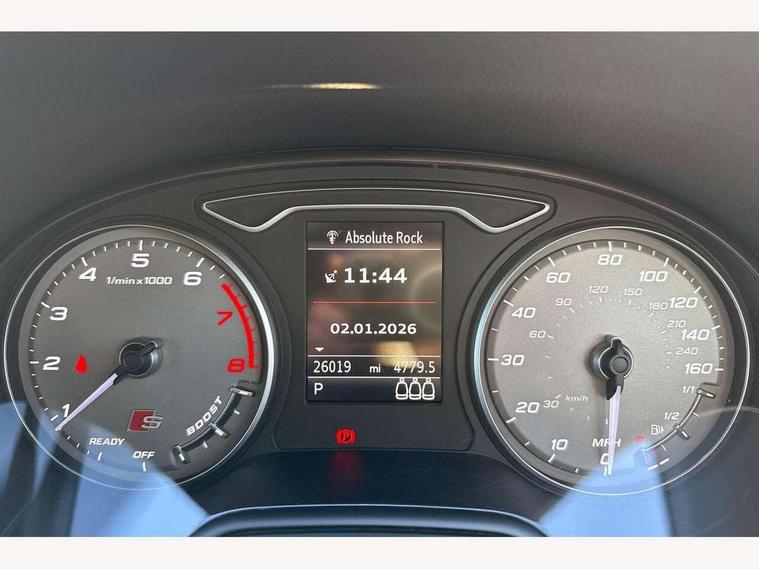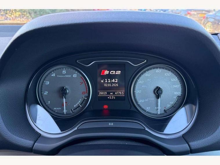 Audi drive select, Audi smartphone interface, Automatic start/stop system with recuperation, Bluetooth interface includes bluetooth audio streaming, Cruise control, Driver's information system - 3.5" colour display, Instrument dials with S logo, MMI SD card integrated nav with 3D map display, dynamic route guidance with TMC, MMI search, natural voice recognition and myAudi special destinations, Power operated tailgate, Progressive steering, Service interval indicator, S sports suspension with lowered by 20mm, 2 x SDXC card reader, Audi music interface - apple iPod, apple iPhone, USB storage media, compatible MP3 players, 2 x USB charging points and 1 x Aux-in, CD Drive, DAB digital radio and AM/FM radio, MMI radio plus with 7" colour MMI screen and MMI controller, Black window trims, Electrically adjustable and heated door mirrors with integrated LED side indicators, Front and rear electric windows, Front windscreen with grey tinted sunband, Headlight washers, Interior mirror, LED headlights with LED rear lights + dynamic rear indicators, LED indicator lights, Manual folding door mirrors, Rain and light sensors, Rear wiper, S design body styling - underbody protection, SQ2 - front bumper with S design inlets, rear diffuser in silver and roof spoiler, S design radiator grille with horizontal struts and SQ2 logo, S specific dual branch tailpipes on left and right in chrome finish, 3 spoke flat bottomed high multi-function leather sport steering wheel with gearshift paddles, 60/40 split folding rear seat bench, Black cloth headlining, Dual zone electronic climate control, Floor mats with contrast stitching, Front centre armrest, Front headrests, Front sport seats with S embossed logo, Height/reach adjust steering wheel, Illuminated door sill trims with S logo, ISOFIX child seat mounting for front passenger with airbag deactivation and outer rear seat including top tether attachment point for outer rear seats, Manual seat adjustment including seat height adjustment for front seats, Stainless steel pedals, Storage compartments - Glovebox, cupholder compartment in centre console, storage compartment in rear centre console, front and rear door pockets, Three rear headrests, Extended interior upholstery pack - Q2, Non smoking pack - Q2, 3x3 point rear seatbelts, 6 airbags - Front, curtain and front side airbags, Electromechanical parking brake, Electronic stabilisation control including ABS, ASR and EDL, Extended and proactive pedestrian protection, Hill hold assist, Multi collision brake assist, Pre-sense front with pedestrian recognition, S model enhanced braking system, Seatbelt monitoring, Tyre pressure warning light, Warning triangle and first aid kit, Anti theft alarm, Anti theft wheel bolts, Central locking system with remote control key, Electronically operated child locks, Aluminium interior element,