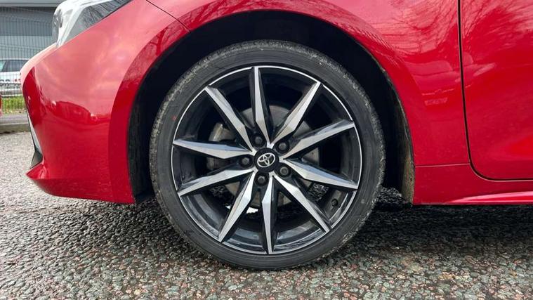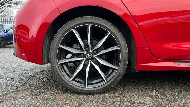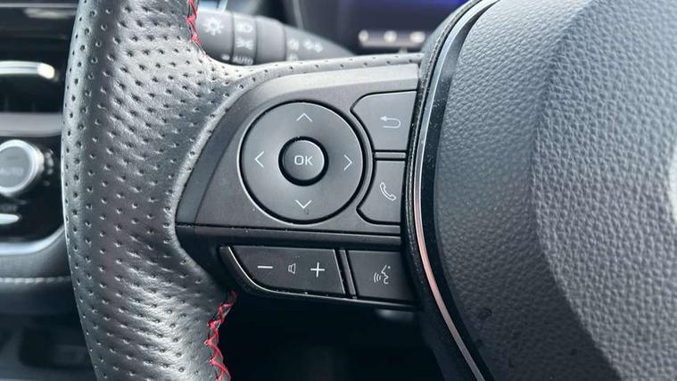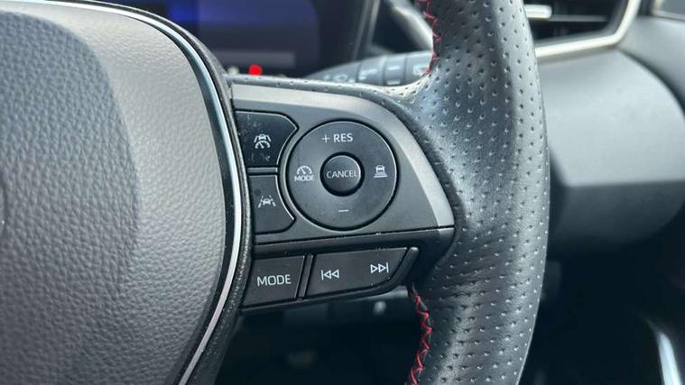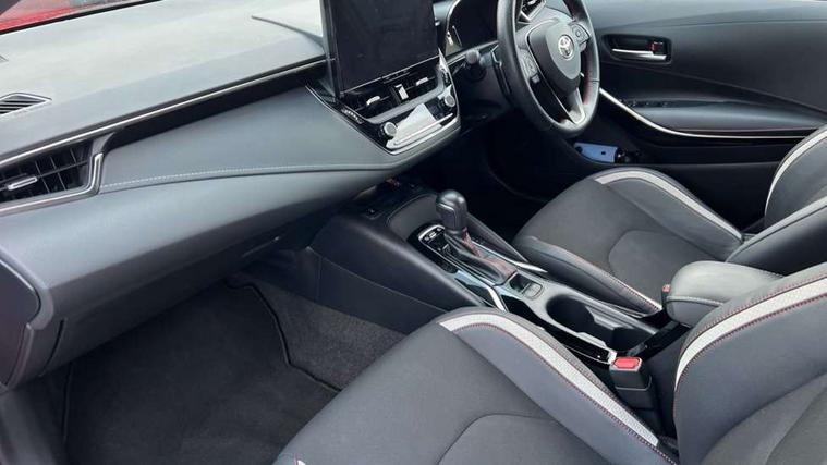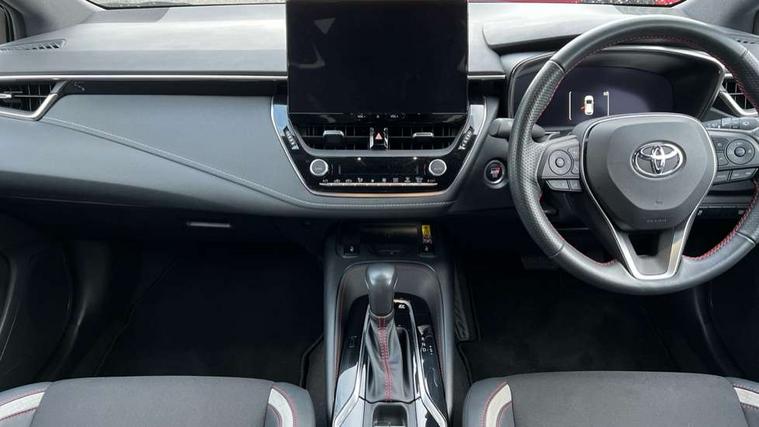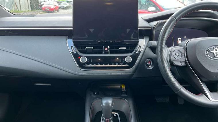 10.5" Multimedia display screen, Attention assist, Bluetooth telephone connectivity, Connected car functionality upgrade, tracker, remote status and e-care, Drive mode select (Eco, Normal), E-call, Electrically assisted power steering, EV drive indicator, Front and rear parking sensors with auto brake, Full Digital 12.3" TFT Digital Combimeter, Key reminder warning, Lane Departure Alert (LDA) switch on steering wheel, Memory on adjustable speed limiter, MyT connected services, Proactive driving assist (PDA), Reversing camera, Smart entry and push button start with GR Logo, Smartphone integration with Apple CarPlay and wired android auto, Tailgate, Toyota remote services, Toyota smart connect navigation, Wireless charger, Gasoline particulate filter, Vehicle Stability Control (VSC), 6 speakers, AM/FM radio, DAB Digital radio, Front USB-C in centre console, Front USB-C in dashboard, Smart voice assist/ Voice recognition, USB and Aux in connectors + 12V front outlet, Anti-jam protection on power windows, Auto up and down function on all power windows, Automatic folding mirrors, Automatic headlights with high beam assist, Black centre and side air vents, Black toyota logo in front, Body coloured bumpers, Body coloured door mirrors, Body coloured outside door handles, Dark chrome lower grille, Electrochromatic mirror, Follow me home headlights, GR Sport dark chrome front mesh grille and black rear grille, GR Sport exclusive under guard, GR sport scuff plates, LED daytime running lights, LED dual beam projector headlights, LED front fog lights, LED High mounted stop light, LED rear combi lights with LED lightguide, Manual headlight levelling system, New grille pattern, Noise reduction layer on windscreen, Piano black diffuser, Power adjustable heated door mirrors, Power front windows, Power rear windows, Privacy glass with UV filter, Rain sensing wipers, Rear side wing doors, Rear window defogger, Rear window wiper, Reverse tilting door mirrors, Rocker and door lower moulding, Roof spoiler, Satin chrome insert on front air vents, Satin chrome insert on front door assist grips, Satin silver front spoiler, Shark fin antenna, Tailgate release with push button, Time adjustment on intermittent wiper, Turning signal integrated indicators in door mirrors, Unique lower skirt, Unique side rocker with black insert, UV-filter on driver and passenger windows, 2 Shopping bag hooks in luggage compartment, 3 rear headrests, 3 seat bench in 2nd row, 3 spoke leather steering wheel with satin insert/red stitching + gear knob, 4 tie down hooks in luggage compartment, 60/40 split folding rear seat, Adaptive cruise control (ACC) switch on steering wheel, Adjustable speed limiter switch on steering wheel, Audio, multimedia and telephone switches on steering wheel, Black armrest on centre console box, Black gear shift console, Boot light, Boot underfloor storage, Centre room light, Driver and front passenger personal light, Driver and passenger assist grip, Driver and passenger seatback pockets, Driver and passenger sun visor with mirror and light, Dual zone automatic air conditioning with ECO mode switch, Fabric/synthetic leather upholstery, Front and rear cup and bottle holders, Front door pockets, Front head restraints, Front passenger seat, Front sliding synthetic leather armrest, GR Sports seats with partial leather bolsters, Heated seats, Illuminated entry system in room lamp, ISOFIX seat fixing (2 fixings on rear outer seats), Manual height adjustable for driver and front passenger seat, Manually tilt with sliding driver and front passenger seat, Paddle shifts, Parcel shelf, Pollen filter, Power window switches with satin chrome inserts, Rear armrest with 2 cupholders, Rear passenger coat hooks (2), Red stitching on gear shift, Remote air conditioning, Satin chrome inside door handles, Satin chrome surround on speedometer, Sliding armrest on centre console box, Slow opening glovebox with lights, Textile floor mats, Tilt/telescopic steering column, Voice recognition switch on steering wheel, Whiplash Injury Lessening (WIL) feature (active headrest) for seats, White ambient lighting on open tray and front cup holder, Toyota safety sense 3 pack - Corolla, 3x3 point rear seatbelts, Adjustable driver and front passenger seat belt extender to top anchor point, Anti lock braking system + Electronic brake force distribution, Brake assist function, Child locks on rear doors, Downhill Assist Control (DAC), Electronic parking brake, Emergency brake light signal (EBS), Front passenger airbag on/off switch, Front seatbelt reminder, HAC-Hill-start Assist Control, Rear seat belt reminder, Seatbelt pretensioners and force limiters, Supplemental restraint system (SRS) 7 airbags - dual driver, dual side curtain, side impact and driver knee airbags, Traction control, Tyre pressure warning system, Acoustic vehicle alert system (AVAS), Alarm with motion sensor and immobilizer, Power passenger window lock, Remote central locking + deadlocks, GR Sport interior and exterior styling, Satin chrome dash trim, Soft touch texture on upper dashboard, Stitching on lower dashboard, 18" black machined face 10 spoke alloy wheels, Tyre repair kit, Unique wheel finish with red wheel cap,