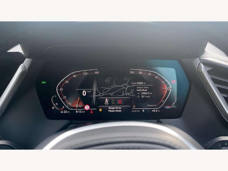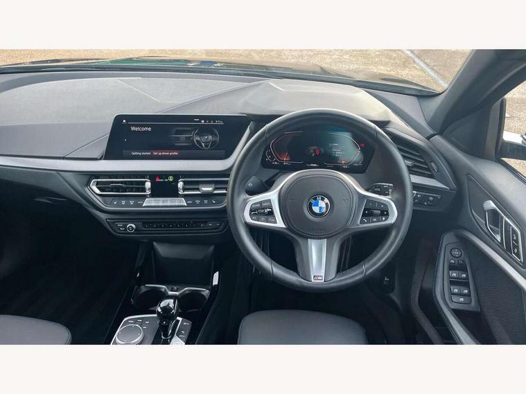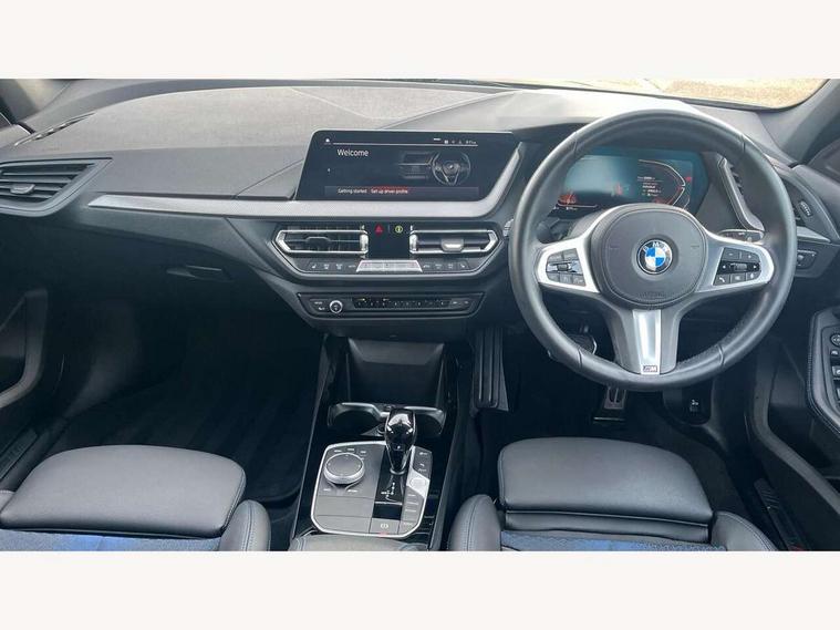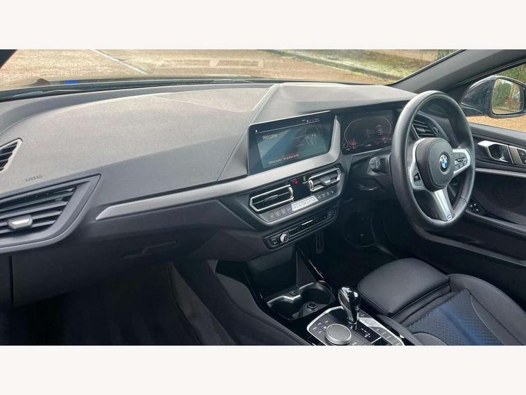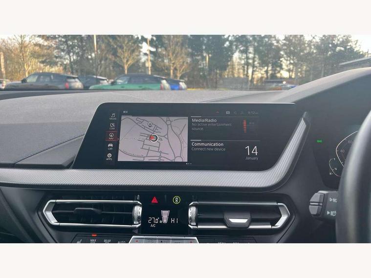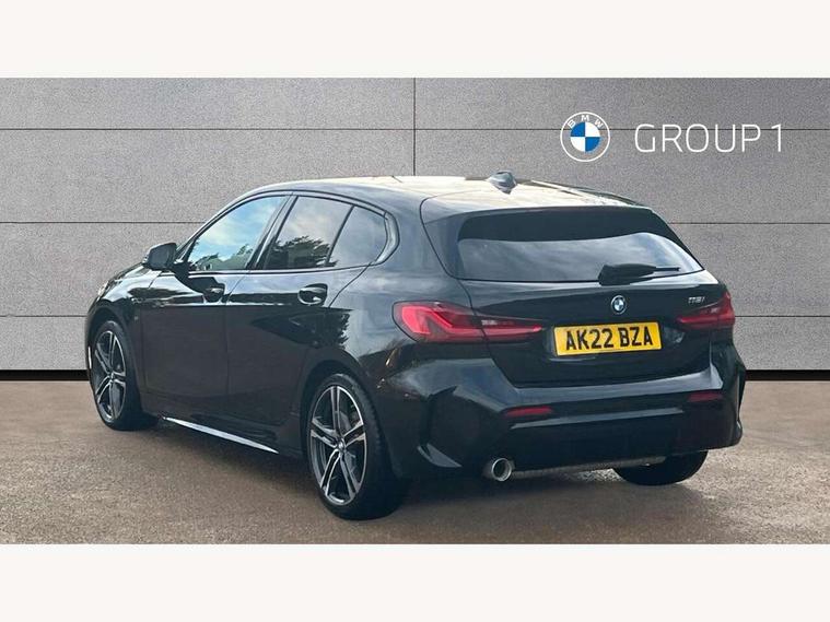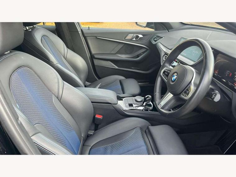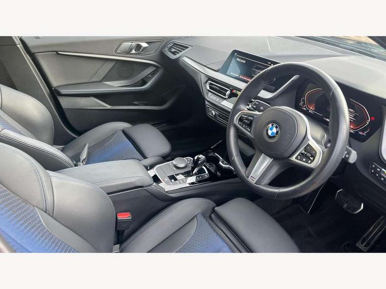 Active guard plus, Attentiveness assist, Bluetooth / WiFi interface for wireless connection of mobile terminal devices and audio streaming, BMW ConnectedDrive online services, BMW Teleservices, Check Control warning system for monitoring of lights and door/luggage compartment open warning, Cruise control with brake assist, Eco pro mode, Front axle single joint with specific axle kinematics to minimise drive influences on steering + provide increased rigidity agile driving behaviour, Integrated owners handbook, Lane departure warning system, Oil sensor for level and grade, On board computer, Optimum shift indicator, Personal Profile, Pull away assistant, Rigidly mounted rear subframe - Multi link construction with separate spring / damper configuration and excellent driving characteristics, Speed limit Info including no-overtaking indicator, Speed limiter, Aluminium lightweight construction, Anti roll bar front and rear, Balancer shaft, Double VANOS twin scroll turbocharging system, Drive Performance Control, Electronic differential lock, High precision injection, M sport suspension, Petrol Particulate Filter, Twin tube gas filled shock absorbers with degressive characteristic curve, VALVETRONIC engine management, DAB Digital radio, Auto dimming rear view mirror, Automatic headlight beam throw control, Automatic windscreen wipers and automatic headlight, Body colour door handles, Body colour mirror caps, Body colour roof trims, Chrome 'M' logo side designation, Chrome exhaust twin tailpipes round 90mm in left, Chrome kidney grille frame with Satin Aluminium struts, Direction indicator side lights in exterior mirrors, Fading support, Folding side mirrors with auto dimming/folding wing mirrors with auto dimming, Follow me home headlights, Front and rear bumper system with replaceable deformation elements, Front and rear electric windows with open and close fingertip control, anti trap facility and comfort closing, Front door sill finishers in black plastic with M designation in metallic look, Green tinted heat protection glazing, Heated, electrically adjustable exterior mirror aspheric on driver side, convex on passenger side, High gloss shadowline window frame, Recess cover mirror frames and B/C pillar embelisher trim, High level third brake light, Integrated front windscreen with washer jets, LED daytime running lights, LED eyebrow turn indicators, LED front fog lights, Lightweight engineering, Matt black air guide grilles, Matt black wheel arch trim, Model designation on electric bootlid, Nearside reverse light in rear light cluster, Preparation for high beam assistant, Rear fog lights, Rear side wing doors, Rear window wiper, Shark fin antenna, Trailer stabilisation logic, Visible VIN plate, Welcome lighting, 12V power socket in front centre console with blanking plug, 3 rear seat head restraints, 3 seat bench in 2nd row, 3 spoke sports leather steering wheel with black leather and stitching, pearl chrome decorative finish, specific M Badge, Ambient interior lighting, Anthracite headlining, Child seat ISOFIX attachment for two outer rear seats and front passenger seat with anchorage points, Conditioned based service, Driver and front passenger seat heating, Floor mats in anthracite velour with contrasting colour seam to match contrast stitching on instrument panel, Folding rear clothes hook, Four grab handles integrated in roof lining, Front and rear door pockets with bottle holders, Front and rear side armrest integrated into door trim, Front armrest, Front sports seats, Glove compartment, Height adjustable front head restraints, Luggage compartment for bag hooks on left and right, foldable luggage compartment liner and two lashing eyelets, Manual adjust steering wheel, Multi-function controls for steering wheel, Single front passenger seat, Storage compartment in centre console, Sun visors with vanity mirrors and insert tab, Two front centre console cupholders, Two zone automatic air conditioning, Additional interior lighting pack - 1 Series, Additional storage compartment pack with code 493 -1 series, BMW live cockpit professional pack- 1 Series, Connected pack professional - 1 Series, Interior lights pack - 1 Series, M Sport exterior styling aerodynamics pack - 1 Series, 2 tone horn, 3 point seatbelts on all seats, front pyrotechnic belt tensioners, stopper and belt force limiters, rear coded belt buckles, Airbags - Front driver/passenger, front and rear curtain head protection, front side, manual deactivation of front passenger airbag, Anti lock braking system (ABS) with brake assist, BMW emergency call, Brake drying, Braking readiness, Child proof locking system in rear door, City braking function, Comfort modes, Cornering brake control, Crash sensor activating central locking release, hazard warning lights, fuel cut off, interior lighting + activation of safety battery terminal clamp, Driver and front passenger seat belt security check, Dynamic stability control + (DSC+), Dynamic Traction Control - DTC, Electrically operated hand brake including automatic hold function, Front and rear disc brakes, Seatbelt warning, Side impact protection, Tyre pressure monitoring system, Warning triangle and first aid kit, Central locking switch for all doors, fuel filler cap and luggage compartment, Deadlocking function system to all doors, Drive away locking system on all doors and luggage compartment with de-activated in iDrive settings, Locking wheel bolts, Remote control with integrated key with High-gloss Black inlay and M designation and 1 button for open/ close lock, window, open luggage compartment, Start/stop button illuminated in centre console with keyless engine start and auto start stop deactivation button, Thatcham Cat.1 alarm and immobiliser, Wheel slip limitation close to the actuator (ARB), Contrast stitching on instrument panel, Electrically powered 12V compressor, Reduced rolling resistance tyres,