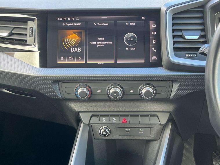 Advanced driver attention and drowsiness monitor, Audi connect emergency call and service, Bluetooth interface, Camera based traffic sign recognition, Cruise control, Driver's information system, Electromechanical power steering, Lane departure warning system, Service interval indicator, Smartphone interface, Speed limiter, Start stop system with recuperation, Voice control system, Washer fluid level indicator, Dynamic suspension, 2 x USB type C connection points, DAB Digital radio, Auto dimming rear view mirror, Body coloured bumpers, Body coloured door mirrors, Electric front and rear windows, Electrically adjustable, heated, folding door mirrors with integrated LED side indicator, Front side air inlets in grained matt black and C frame in anthracite black, Headlight cleaning system, Heat insulating glass windscreen and side windows, Heated rear windscreen, High level LED brake light, LED daytime running lights, LED headlights with range control LED rear lights + dynamic rear indicators, Light and rain sensors, Radiator grille and rear diffuser in matt anthracite black, Radiator protective grille frame in matt aluminium silver, Rear fog lights, Rear side wing doors, Rear wiper, Side front spoiler lips in grained matt black, 12V socket in centre console with two cup holders, 3 rear seats with headrests, 3 seat bench in 2nd row, 3 spoke leather multifunction plus steering wheel, 40:60 Split folding rear seat or fully collapsed, Black carpets, Black velour floor mats, Front door sill trims with aluminium inlay, Front head restraints, Front passenger seat, Grey cloth headlining, Height and reach adjustable steering wheel, Interior lighting includes roof module, front and rear reading lights and right luggage compartment lighting, ISOFIX child seat mounting for front passenger and outer rear seats including top tether attachment point of outer rear seats, Leather gear knob with aluminium trim, Leather handbrake grip, Manual height adjustable for driver and front passenger seat, Manually adjustable lumbar support in front seats, Novum cloth upholstery with front sport seats, Luggage compartment pack - A1, Technology pro pack with convenience key - A1, 3x3 point rear seatbelts, Audi pre-sense front with pedestrain and cyclist recognition, Brake assist function, Driver and front passenger airbag with front side and head airbags, Electronic Stability Control including ABS, EBD, ASR and EDL, Front passenger airbag deactivation switch, Hill hold assist, Manual rear child locks, Seatbelt height adjustment for front seats, Seatbelt monitoring, Tyre pressure loss indicator, Warning triangle and first aid kit, Anti theft alarm, Anti theft wheel bolts, Immobiliser, Aluminium trim for control switches, air vents and digital instrument cluster, Black dashboard, Silver grey accent surfaces insert of air vents, interior door handle recesses and centre console in diamond paint finish, Slate grey inlays polygon structure in fine paint finish,