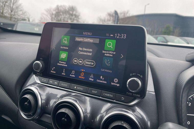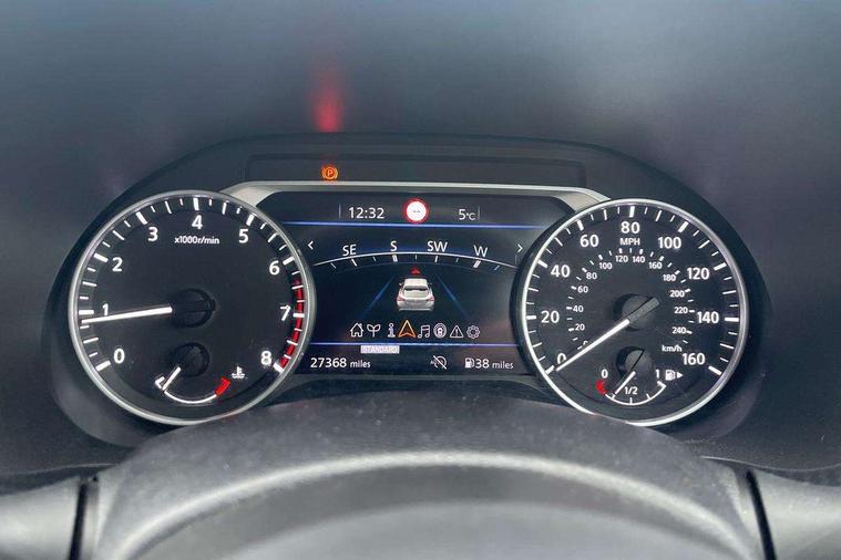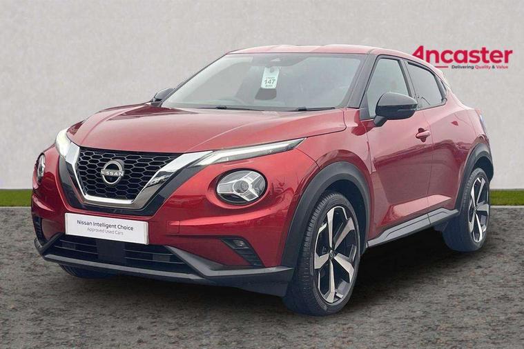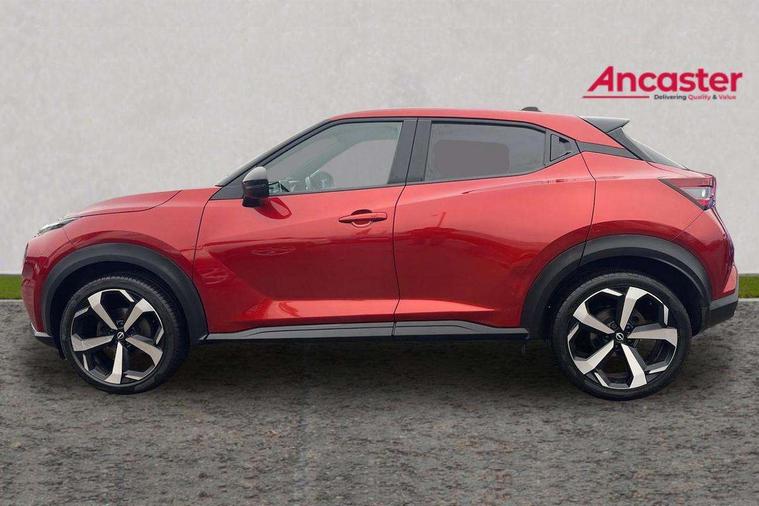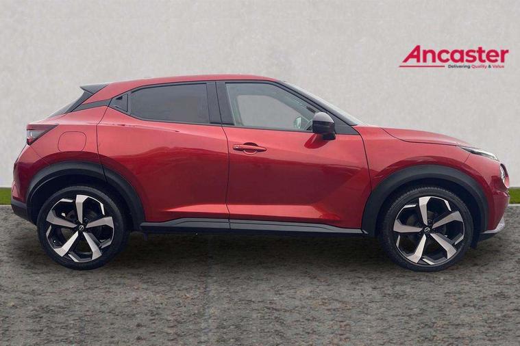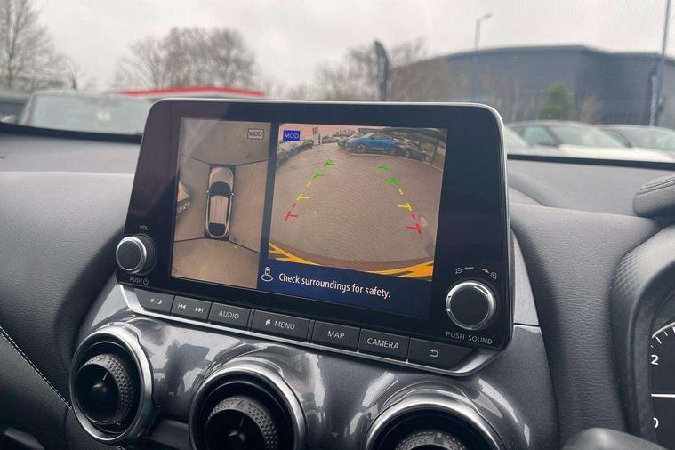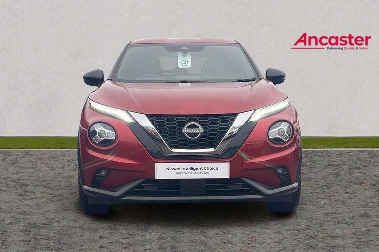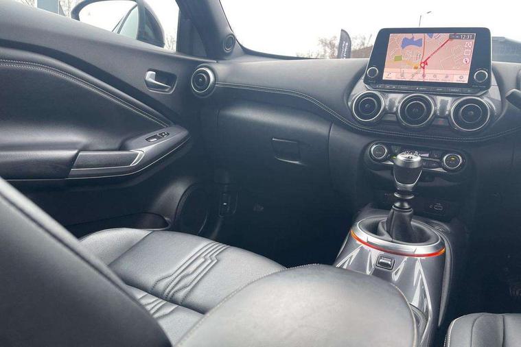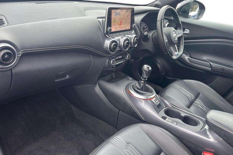 7" full colour TFT screen combimeter, Apple CarPlay and Google Android auto, Drive modes select (Eco, normal and sport), Emergency and breakdown call, Front parking sensor, Idle start/stop system, Intelligent lane intervention, Lane departure warning system, Nissan connect 8" touch screen entertainment system, Nissan connect nav with TomTom traffic, Nissan connect services and Wifi connection, Outside temperature sensor, Power Steering, Rear parking sensor, Traffic sign recognition, Trip computer, Voice recognition, Gasoline particulate filter, 10 Bose speakers 6 speakers and 2 headrest speakers for driver/passenger seats, Bluetooth system, USB, Aux-in and 12V socket, Bose personal sound stage control, DAB Digital radio, Rear console USB port, Auto dimming interior rear view mirror, Auto headlights, Automatic hazard signal with emergency stop signal, Body colour bumpers, Body colour door handles, Electrically adjustable door mirrors with integrated indicators, Follow me home headlights, Front and rear electric window with one touch driver window, Heated and auto folding door mirrors, High beam assist, LED daytime running lights, LED front fog lights, LED headlamps, LED rear fog lamp, LED rear lamps, Rain sensor windscreen wipers, Rear privacy glass, Rear side wing doors, Rear wiper, Thermaclear heated windscreen, Three blink turn signal, 3 height adjustable rear headrests, 3 seat bench in 2nd row, 60/40 split folding rear seat, Automatic climate control, Card holder on driver sunvisor, Door ambient lighting, Driver and passenger sliding and reclining seats, Driver seat back pocket, Driver side rear coat hanger, Driver/passenger sunvisors and vanity mirrors, Front and rear cabin lights, Front armrest, Front door pockets with bottle holders, Front head restraints, Front passenger isofix child seat anchorage point, Front/rear passenger grab handles, Gear console ambient circle lighting, Grey synthetic leather kneepad, Heated front seats, Height adjustable driver's seat, Height adjustable passenger seat, Internal chrome door handles, Leather gearshift knob, Leather steering wheel, Luggage board, Luggage space lighting, Monoform sporty seats, Multifunction steering wheel, Passenger seat back pocket, Rear door bottle holders, Single front passenger seat, Synthetic leather upholstery, Telescopic steering wheel adjustment, Two cupholders in front centre console, Two rear isofix child seat anchorage points with top tether, Welcome light and console tray ambient lighting, Advanced safety shield pack - Juke, ABS with EBD and brake assist, Active ride control, Active Trace Control, Driver and passenger airbags, Driver and passenger side airbags, Electric handbrake with auto hold function, Electronic Stability Programme (ESP), Front and rear curtain airbags, Height adjustable seatbelts, Hill start assist, Intelligent emergency braking with pedestrian and cyclist recognition, Rear door child safety locks, Seatbelt reminder for driver/front passenger and rear seats, Single tone horn, Three 3 point rear seatbelts, Traction control, Tyre pressure monitoring system, VDC Dynamic Vehicle Control, Ventilated rear brake discs, Alarm, Immobiliser, Intelligent key and start push button with walk away lock and approach unlock functions, Remote central locking,