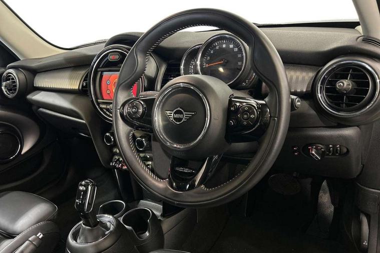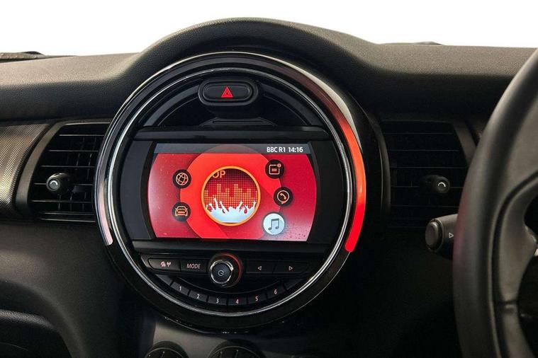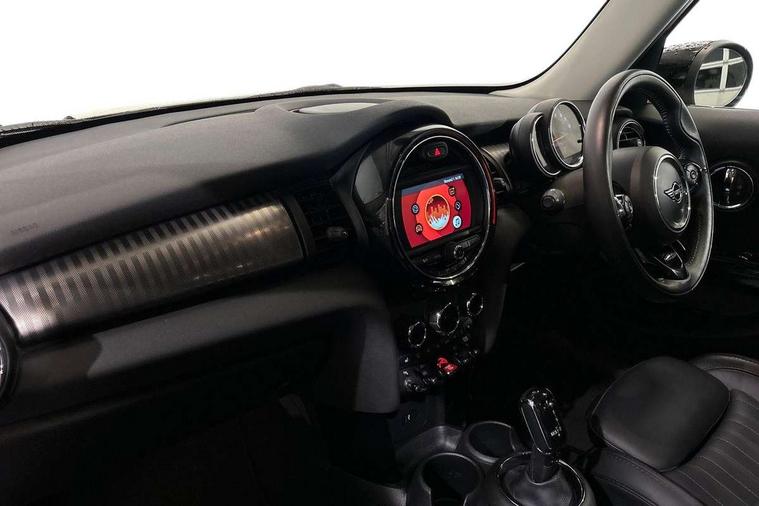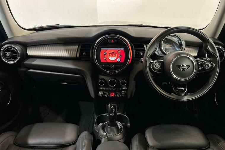 Automatic start/stop function with brake energy recuperation, Compatible mobile phone bluetooth with audio streaming, Electro-mechanical speed dependant steering assistance, Instrument cluster, Mini E-call, MINI TeleServices, On board computer, Service interval indicator, Double Vanos system, Fully variable valve control, High precision injection, Steptronic transmission with double clutch, 6.5" touchscreen with LED ring, FM tuner and DAB digital radio, Automatic headlight activation switch, Body colour fuel filler cap, Chrome border high gloss black slats radiator grille, Chrome line exterior, Dynamic brake lights, Electric front+rear windows, Heated rear window, Heated windscreen washer jets, LED headlight with closed ring and daytime driving lights, Left exhaust tailpipe with chrome finisher, Metal door sill strips with MINI imprint, Model logo Cooper on right of tailgate, Radiator grille bars, tailgate handle, lower front grille grating, rear central fog light in chrome, Rain sensor window wipers, Rear fog lights, Rear LED lights with union jack design, Rear window wiper, Side scuttle panel with integrated indicator, Sun/heat protection glass, White indicator lenses, 12V Accessory socket in centre console, 4 lashing eyes in luggage compartment, 60/40 split folding rear seat, Air vents, gear lever base, speakers in doors, door handles in chrome, Chrome interior highlights, Cupholders, Front and rear head restraints, Front and rear isofix with front passenger airbag deactivation, Glove compartment, Height and length steering column adjustment, Interior lighting with 12 basic colours selectable via toggle switch in roof, Leather gearshift lever and handbrake gaiters, LED reading lights, vanity mirror lights, front foot well light and spotlight on front seats, Manual air conditioning, Mechanical seat adjustment, driver seat height adjust, forward/back and front seats backrest, Mini logo projection on floor from drivers exterior mirror, MINI Yours leather steering wheel with silver contrasting stitching with MINI Yours badge, Multifunction steering wheel, Storage compartments in doors, Sunvisors with vanity mirrors, 3 point seatbelts on all five seats, 6 Airbags - front, side, head and seat belt tensioners, Anti-lock braking system (ABS), DSC - Dynamic Stability Control, Front and rear disc brakes, Hill start assist, Single tone fanfare horn, Tyre pressure monitoring system, Alarm system with tilt sensor, monitoring doors, bonnet interior and tailgate, Electronic vehicle immobiliser, Start/stop toggle with keyless go, Chrome line interior, Tool kit,