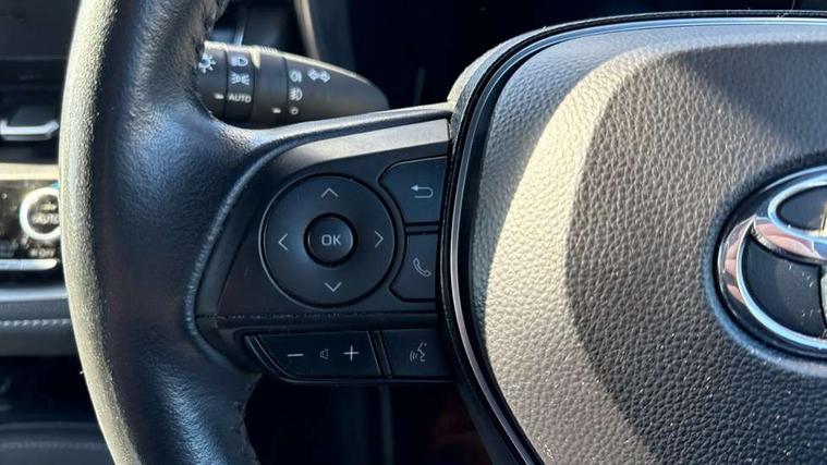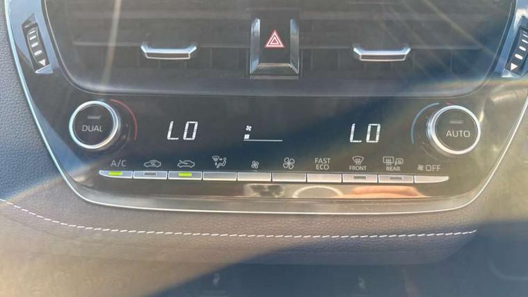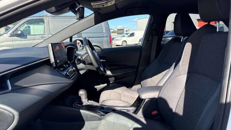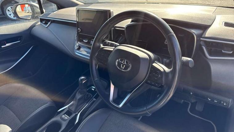 7" Multi information display screen, Bluetooth telephone connectivity, Connected car functionality upgrade, tracker, remote status and e-care, Door trim and centre console material, Dynamic radar cruise control (with RSA) including switch on steering wheel, E-call, Electrically assisted power steering, EV drive indicator, Intelligent park assist, Lane Departure Alert (LDA) switch on steering wheel, Memory on adjustable speed limiter, Push button start, Reversing camera, Smartphone integration with Apple CarPlay and Android auto, Gasoline particulate filter, Vehicle Stability Control (VSC), 6 speakers, 8" Touchscreen with MM19 Multimedia system and voice recognition, AM/FM radio, DAB Digital radio, Toyota touch 2 with go navigation system, USB and Aux in connectors + 12V front outlet, Anti-jam protection on power windows, Auto dimming inside rear view mirror, Auto up and down function on all power windows, Automatic folding mirrors, Automatic headlights with high beam assist, Black metallic surround on lower front grille, Black toyota logo in front, Black window frames, Body colour rear spoiler, Body coloured bumpers, Body coloured door mirrors, Body coloured outside door handles, Follow me home headlights, LED daytime running lights, LED front fog lights, LED Headlights, LED High mounted stop light, LED rear combi lights with LED lightguide, Power adjustable heated door mirrors, Power front windows, Power rear windows, Privacy glass, Rain sensing wipers, Rear side wing doors, Rear window defogger, Rear window wiper, Reverse tilting door mirrors, Shark fin antenna, Time adjustment on intermittent wiper, Turning signal integrated indicators in door mirrors, Unique lower skirt, Unique side rocker with black insert, UV-filter on driver and passenger windows, 3 rear headrests, 3 seat bench in 2nd row, 3 spoke leather steering wheel + gear knob, 60/40 split folding rear seat, Adjustable speed limiter switch on steering wheel, Audio, multimedia and telephone switches on steering wheel, Blue ambient interior illumination to centre tray, front cup holders and front door trim, Boot light, Centre room light, Clean air filter, Driver and front passenger personal light, Driver and passenger assist grip, Driver and passenger sun visor with mirror and light, Dual zone automatic air conditioning with ECO mode switch, Fabric/synthetic leather upholstery, Front and rear cup and bottle holders, Front door pockets, Front head restraints, Front passenger seat, Heated driver and front passenger seats, Illuminated entry system in room lamp, ISOFIX seat fixing (2 fixings on rear outer seats), Leather gear shift with satin chrome on gear shift console, Leather style armrests, Manual height adjustable for driver and front passenger seat, Parcel shelf, Passenger seat back pocket, Pollen filter, Power adjustable lumbar support on driver seat, Power window switches with satin chrome inserts, Rear armrest with 2 cupholders, Rear passenger coat hooks (2), Satin chrome inside door handles, Shopping bag hooks in luggage compartment, Sliding armrest on centre console box, Slow opening glovebox with lights, Tilt/telescopic steering column, Voice recognition switch on steering wheel, Whiplash Injury Lessening (WIL) feature (active headrest) for seats, Parking pack - Corolla, Toyota safety sense 2 pack - Corolla, 3x3 point rear seatbelts, Adjustable driver and front passenger seat belt extender to top anchor point, Anti lock braking system + Electronic brake force distribution, Brake assist function, Child locks on rear doors, Downhill Assist Control (DAC), Electronic parking brake, Emergency brake light signal (EBS), Front passenger airbag on/off switch, Front seatbelt reminder, HAC - Hill start assist control, Rear seat belt reminder, Seatbelt pretensioners and force limiters, Supplemental restraint system (SRS) 7 airbags - dual driver, dual side curtain, side impact and driver knee airbags, Traction control, Tyre pressure warning system, Acoustic vehicle alert system (AVAS), Alarm with motion sensor and immobilizer, Remote central locking + deadlocks, Smart entry, Satin chrome dash trim, Soft touch texture on upper dashboard, Unique wheel finish with red wheel cap,