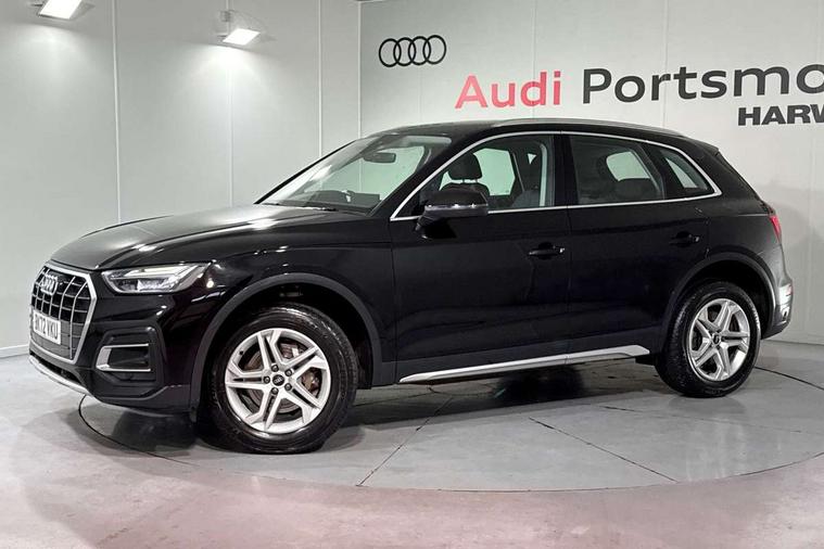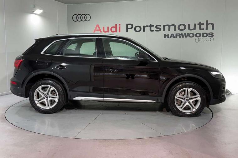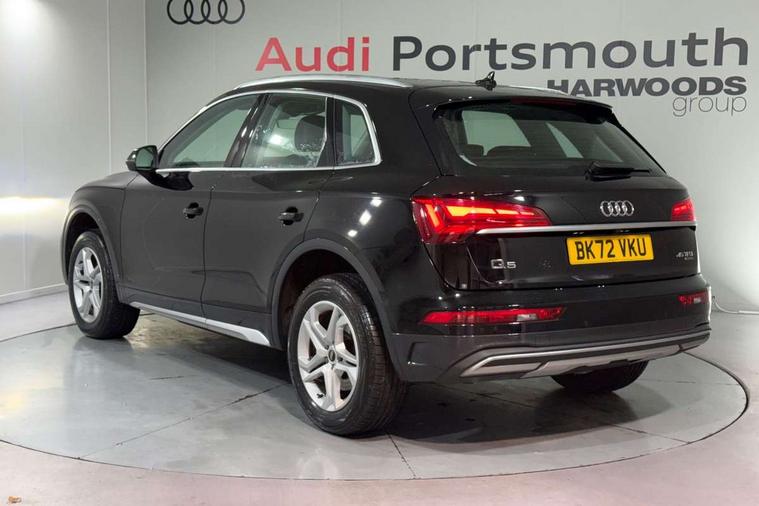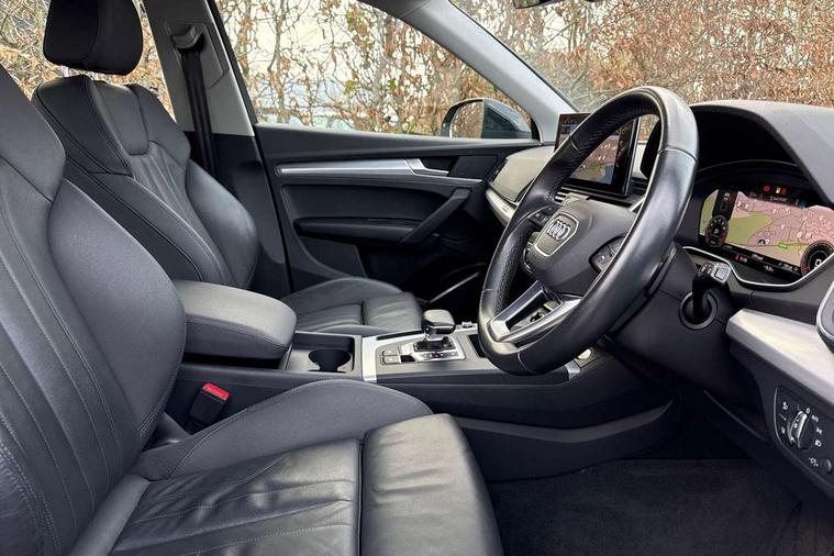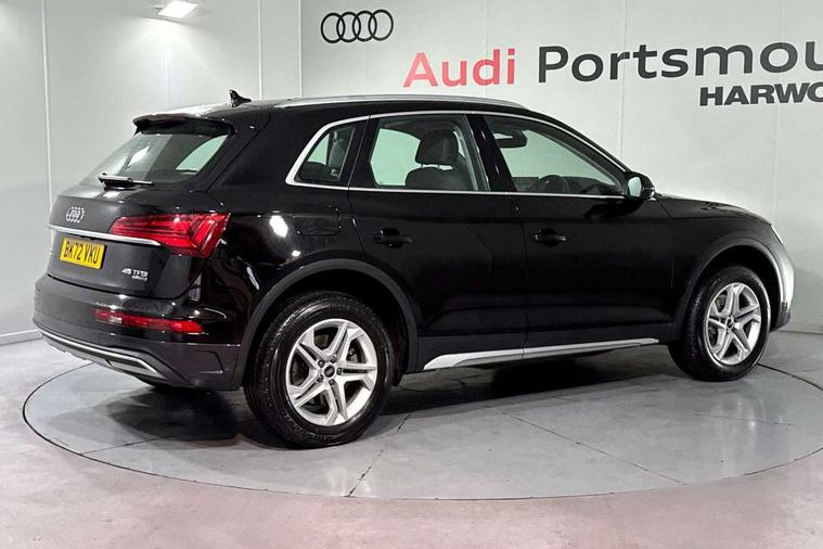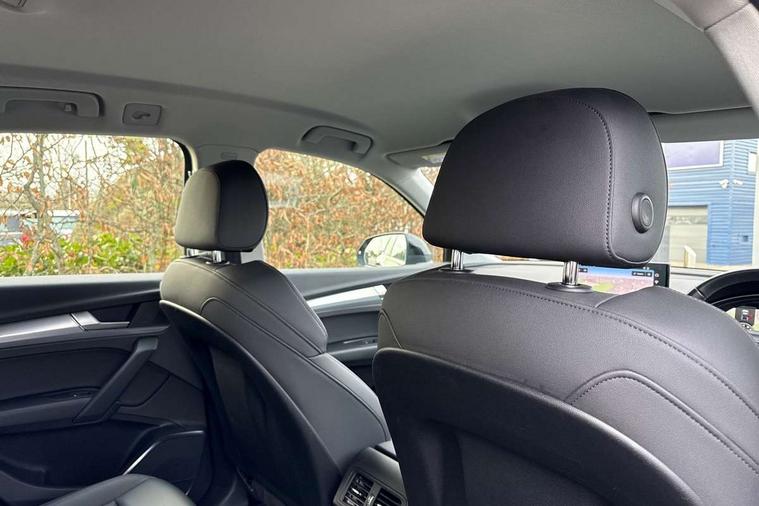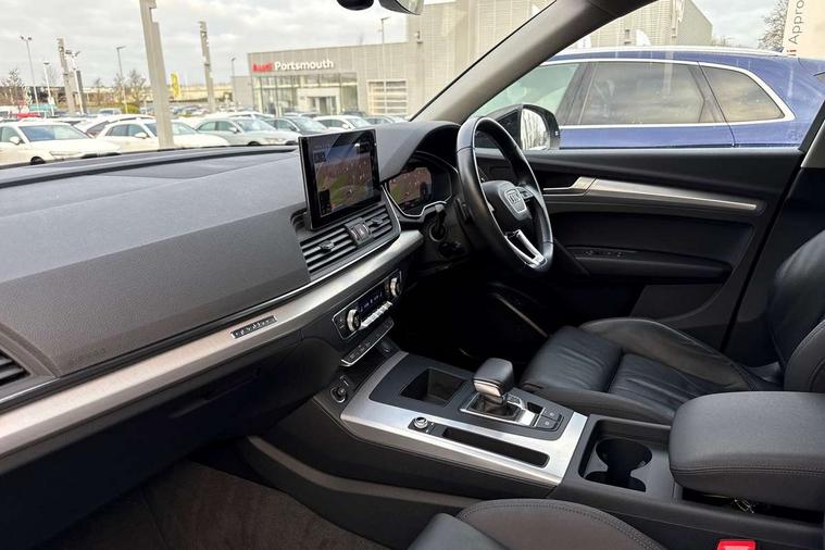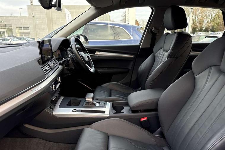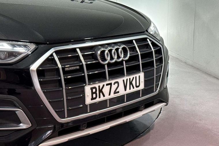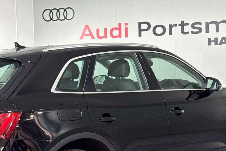 Acoustic front and rear parking sensor, Audi connect safety and service (e-call), Audi drive select, Audi virtual cockpit plus with 12.3" screen and three different layout designs, Audi wireless smartphone interface, Automatic start-stop system with coasting functionality and efficiency programme, Bluetooth interface, Camera based traffic sign recognition, Electro - mechanical power assisted steering, Lane departure warning, MMI navigation plus with 10.1" touch screen, Power tailgate, Service interval indicator, Voice control system with Audi hotword activation "Hey Audi", Dynamic suspension, Quattro on demand, 2 x USB charging port with aux input socket, DAB Digital radio, Acoustic windscreen, Air inlets in matt anthracite black with blades in matt aluminium silver, Aluminium roof rails, Auto dimming frameless rear view mirror, Automatic headlight adjustment, Automatic headlights and windscreen wipers, Body colour bumpers, Body colour door mirrors, Chrome plated exhaust trims, Daytime running lights, Door sills in Selenite silver, Front and rear electric windows, LED 3rd brake light, LED rear lights, Loading edge protection in stainless steel, Lower bumpers painted in contrast Manhattan grey, Matt selenite silver underbody protection, Matt twilight grey radiator grille with chrome vertical struts, Rear chrome trim strip below lights, Rear diffuser strip in selenite silver, Rear side wing doors, Rear spoiler, Rear wiper, Roof bars, 3 rear headrests, 3 spoke multifunction leather steering wheel with shift paddles, 4 way electric lumbar support for driver and front passenger, Comfort front centre armrest, Deluxe 3 zone electronic climate control, Door sills trims with aluminium inlays, Front head restraints, Front sport seats, Front/rear floor mats, Heated front seats, Height/reach adjustable steering column, Luggage compartment cover, Single front passenger seat, Split folding 3 seater rear seat bench in 3 parts (40/20/40), Sunvisors with vanity mirrors, Twin leather upholstery, High gloss pack - Q5, Technology pack pro - Q5 SUV/Sportback, 3 point seatbelts on all seats, 6 airbags - Driver, front passenger, curtain and side airbags, Attention and drowsiness assist, Electrically operated child locks on rear doors, Electromechanical parking brake, Electronic stabilisation control including ABS, ASR and EDL, First aid kit with warning triangle and vests, Front passenger airbag deactivation, Hill descent control, Hill hold assist, ISOFIX child seat mounting for front passenger seat and ISOFIX child seat mounting with Top Tether for outer rear seats, Multi collision brake assist, Pop-up bonnet for pedestrian protection, Pre sense city, Seatbelt monitoring, Tyre pressure warning, Anti theft alarm, Anti-theft wheel bolts, Remote central locking, Remote control key with SAFELOCK and keyless go, Air vents inserts and centre console in matte black, Aluminium rhombus inlay, Tool kit, Tyre repair kit,