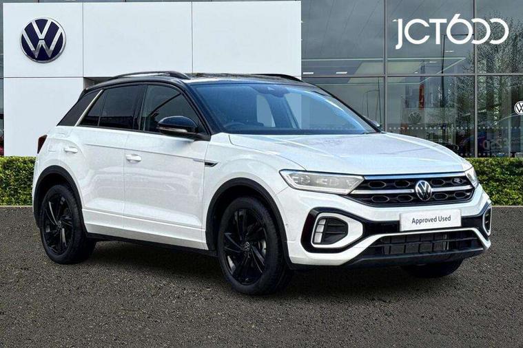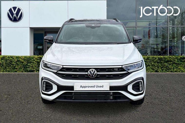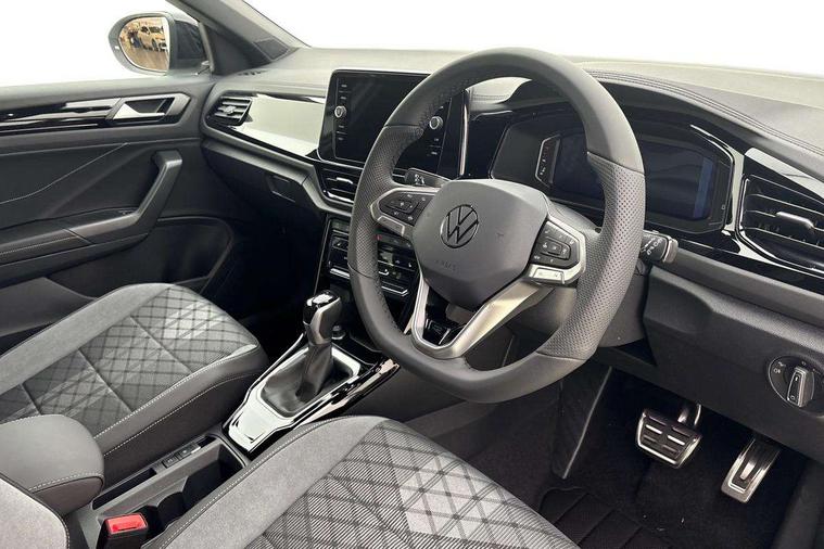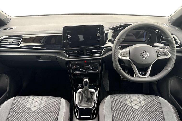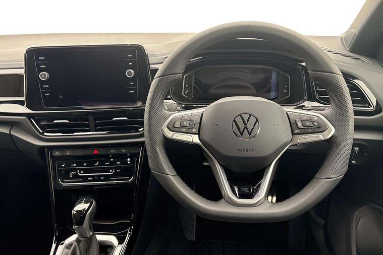 10.25" Digital cockpit pro, Advanced driver attention and drowsiness monitor, Emergency call service, Lane keeping system Lane Assist, Mobile phone interface, Modified key software - reduce switch off time for key status change to Long no motion, Online services, Park assist including front and rear parking sensors, Power assisted speed sensitive steering, Service interval indicator, Tailgate/trunk lid release from outside, Think blue trainer driver tips and journey analysis, Warning sound and light for front seatbelts unfastened, Wireless app connect, Battery regeneration during braking, Rear shock absorption chassis with increased ride height, Start/stop function with battery regeneration, DAB Digital radio, Diversity antenna for FM reception, Front and rear 6 speakers, Music playback - MP3, WMA and AAC files, Premium USB cable in choice of either Apple or Android smartphone compatibility, SD card slot, Simultaneous pairing of 2 compatible mobile devices, Title and cover art display, We Connect and We Connect Plus functionality, Auto dimming interior rear view mirror, Automatic hazard lights activation under emergency braking, Automatic headlight control with LED separate daytime running lights with coming/leaving home function, Dynamic cornering light, Electrically adjustable and heated door mirrors, Extended roof spoiler, Exterior mirrors aspherical on driver side, convex on front passenger side, External USB type C socket and charging sockets, Front windscreen wiper with intermittent wipe and 4 position delay, Heated rear window, Illuminated front grille, IQ LED matrix headlights, LED 3rd brake light, LED rear number plate lights, LED rear tail lights with dynamic turn signal, Light mode for poor weather, rain, fog or snow, Power windows with comfort operation and circuit breaker, R-Line design body coloured bumpers, Rain sensor, Rear exhaust tailpipe, Rear fog light on one side and reversing lights on both sides, Rear side wing doors, Rear wash/wipe with intermittent wipe setting, Remote electrically foldable door mirrors, puddle lights and reverse activated passenger's door mirror, 12V power socket in centre console, 3 rear head restraints, 3 seat bench in 2nd row, 4 load lashing points in luggage compartment, Air care climatronic air conditoning system with active combination filter and 2-zone temperature control, Artvelours cloth upholstery, Black roof lining, Chrome plated radiator grille inserts, air vent surrounds and light switch surrounds, Door and side trim panel with leatherette insert, Drawer under drivers seat, Driver seat height adjust, Driver's seat lumbar support, Front + rear carpet mats, Front centre armrest, Front comfort sports seats, Front cupholders x 2, Front footwell illumination, Front reading light, Front scuff plates with R Line logo, Front seat back storage pockets, Glove compartment door with light, Instrument lighting, white adjustable panel illumination, Interior ambient lighting and surround lighting, Interior light delay, Isofix child seat preparation, Leather gearshift handle, Leather wrapped multifunction steering wheel with paddle shift, Load-through provision with cup holder when folded down ('Unsplit rear seat bench, split folding backrest, with centre armrest), Luggage compartment lighting, Non-folding front passenger seat backrest, Passenger seat height adjuster, Passenger seat lumbar support, Single front passenger seat, Stainless steel pedals, Storage compartment in left and right luggage area, Storage compartment in rear doors, Storage compartments in driver and front passenger doors, Sunvisors with illuminated vanity mirrors, Variable boot floor, height adjustable and removable, Winter pack without heated windscreen washer jets - T-Roc, 3 point height adj front seatbelts + pretensioners, 3 point seatbelts in outer rear with ECE label, ABS, Child locks on rear doors, City emergency braking and pedestrian monitoring, Driver and front passenger airbag with front passenger airbag deactivation, Driver and front passenger safety-optimised head restraints, Drivers seatbelt reminder, Electronic parking brake, Electronic Stability Control (ESC) inc EDL (Electronic Differential Lock) and ASR (Traction Control), Front and rear passengers curtain airbag system including front side airbags, Front disc brakes, Hill start assist, Predictive pedestrian protection, Rear disc brakes, Two tone horn, Tyre pressure loss indicator, Volkswagen roadside assistance, Tool kit, Trims for alloy wheels, Tyre mobility kit including compressor and sealing foam,
