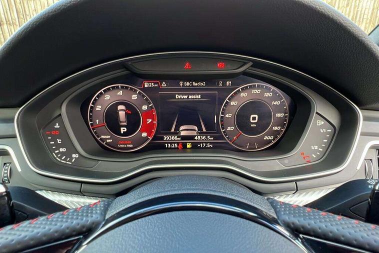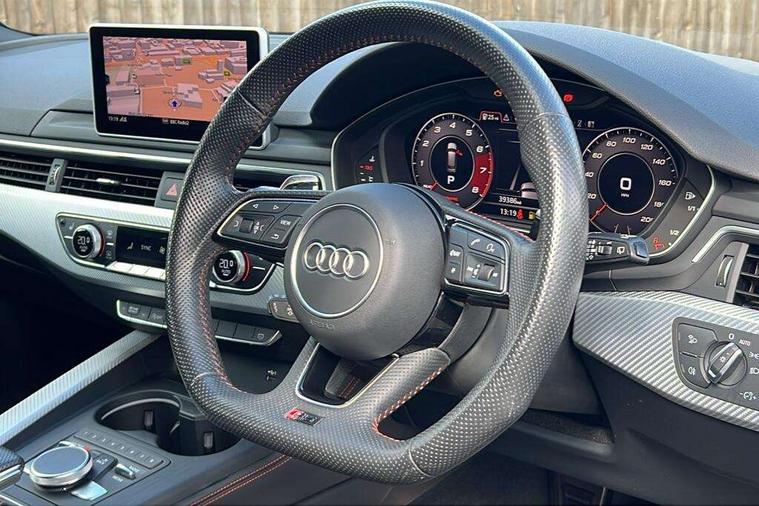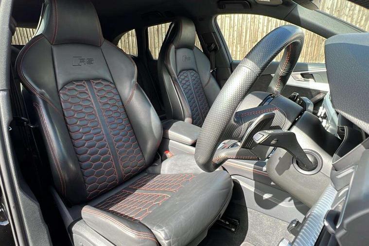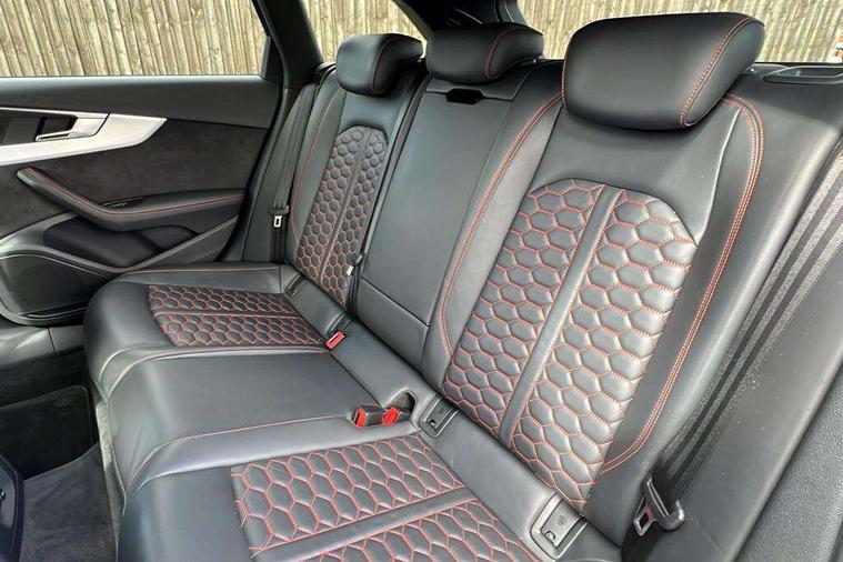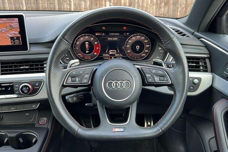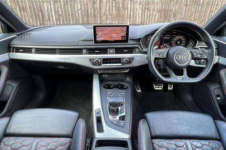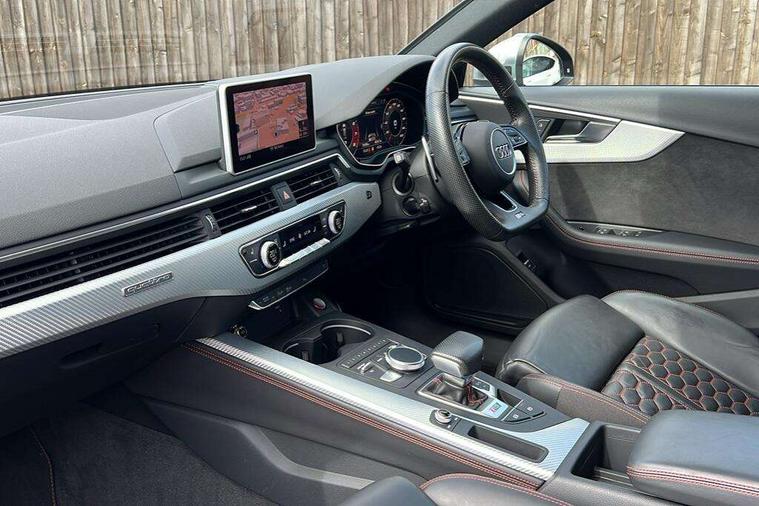 Audi drive select, Audi smartphone interface, Audi virtual cockpit - 12.3" high-resolution LCD display with fully customisable instrument cluster, Colour driver's information system display, Electro-mechanical PAS, MMI navigation plus with HDD and jukebox storage + 2 SD card readers + single CD/DVD player, Mobile telephone preparation - bluetooth interface, Power boot opening and closing, Service interval indicator, Stop/start button, Voice control system, Quattro sports differential, 2 USB ports, Aux input, DAB digital radio module, Acoustic windscreen, Air inlets in titan black with chrome inlays, Aluminium window trim, Auto dimming rear view mirror, Automatic headlights + automatic windscreen wipers, Body colour bumpers, Body colour door handles, Electric adjustable heated door mirrors, Electric front windows, Electric rear windows, Headlight range control, Headlight washer jets, High beam assistant, High gloss black triangular aperture at rear door, Honeycomb radiator grille - black, LED daytime running lights, LED indicators in door mirrors, Rain and light sensors, Rear diffuser in Twilight grey matt, Rear wiper, Twin oval exhaust tailpipes with chrome finish, 3 zone climate control, 4 way electric lumbar support for driver and front passenger, Black cloth headlining, Door armrest in leather, Fine Nappa leather upholstery, Front centre armrest with 12v socket, Front headrests, Front/rear floor mats, Gearshift paddles, Illuminated door sill finishers, Isofix child seat preparation for front passenger/outer rear seats inc passenger airbag deactivation, Jack and tool kit, Luggage compartment carpet, Lumbar support with massage function, Massage function for front and rear seats, Perforated leather gearknob, Reach + rake adjustable steering column, Rear centre armrest, Rear headrests, Retractable load area cover, RS Super sports front seats, Split folding rear seats, Sunvisors with vanity mirrors, Top tether anchor plate for isofix child seat, Non Smokers pack, 3 point seatbelts on all rear seats, ABS/EBD, Active bonnet, Adaptive driver and front passenger airbags, Electromechanical parking brake, Enhanced braking system, ESP, First aid kit, Front head airbags, Front seatbelt pretensioners + load limiters, Front side airbags, Hill hold assist, Pre-sense city emergency braking system, Seatbelt warning, Traction control, Warning triangle, Anti theft alarm, Keyless Start, Locking wheel bolts, Remote central locking, Thatcham category 1 alarm + immobiliser, Space saver spare wheel,