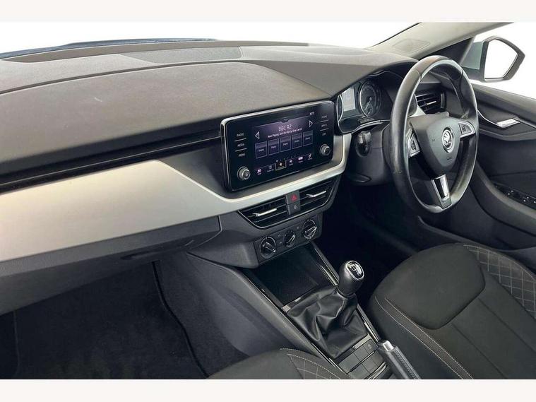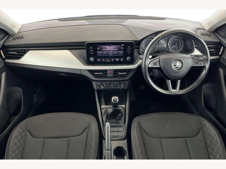 Bluetooth system, Easy light assist, Front assist system, Lane assist, Multi function trip computer, Rain and light assist with auto dimming rear view mirror, Speed limiter, 2 USB - C ports, 8 loudspeakers, Bolero radio with 8" touchscreen display, DAB Digital radio, Body colour door mirrors and handles, Chrome grille surround, Electrically adjustable and heated door mirrors, Front and rear electric windows, Tinted windows, 12V Accessory socket in centre console, 12V socket in luggage compartment, Chrome inner door handles, Cloth upholstery, Decor strip on dashboard and door panel, Glasses storage in roof liner, Glovebox with cooling system and illumination, Height adjustable drivers seat, Height adjustable passenger seat, Instrument cluster with chrome painted decor ring, ISOFIX for rear passenger seat, Leather gearknob and handbrake lever, Reading lights for driver and front passenger, Storage compartment under front seats, Sun visor with make up mirror for front passenger, Third rear headrest, Umbrella, Curtain airbags, Emergency call and proactive services, Front head and side airbags, Hill hold control, Passenger airbag switch off function, Seat belt reminder for all seats, Two tone horn, Alarm, Anti-theft wheel bolts, SAFE function for remote central locking, Temporary space saver wheel,