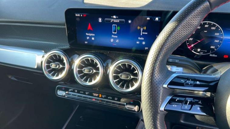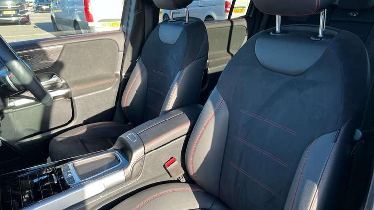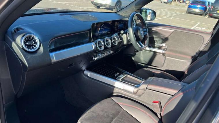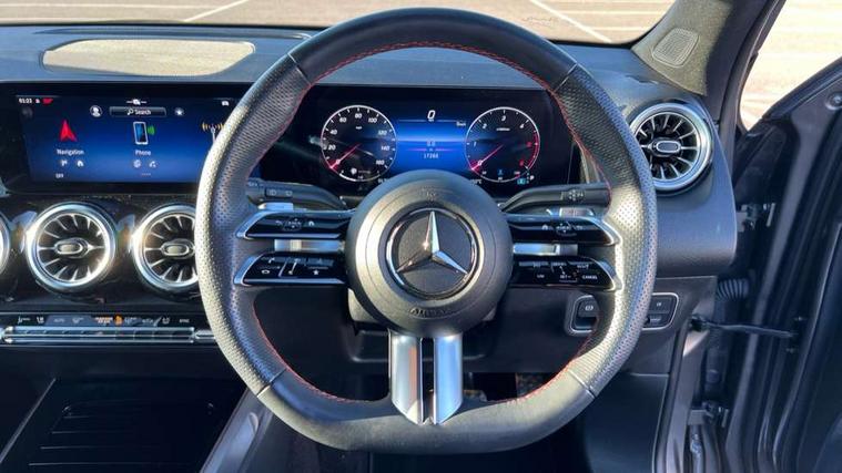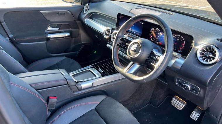 10.25 inch touchscreen central media display, 10.25" Digital instrument cluster display screen, 12 ultrasonic sensors in front and rear bumpers, 180 degree reversing camera with parking guidelines, Additional drive program "OFF-ROAD", Assisted parking: reversing backwards into perpendicular and parallel parking spaces, Attention assist - Monitors steering behaviour and long journey fatigue, Blind spot assist, Bluetooth connection, Brake pad wear indicator warning light, Car wash mode, Convenience opening and closing, Direct steering, DYNAMIC SELECT with a choice of driving modes (ECO, Comfort, Sport and Individual), ECO start/stop function, Engine start/stop button, Exit warning function, Fluid level warning indicator for fuel, oil, coolant and washer fluid, Hard disk navigation, Hey Mercedes Voice activation, Lamp failure indicator, Lane keep assist, MBUX navigation premium, Mercedes me connect including emergency call system, accident recovery, breakdown management and maintenance, Mercedes me remote services, Outside temperature gauge, Owners manual and service booklet in English, Pre-installation of private car share, Preinstallation for parking damage notification, Radio aerial integrated into front and rear windshields, Remote boot closing, Service indicator (ASSYST), Smartphone integration with Apple CarPlay and Android auto, Speed limit assist, Tailgate, Trip computer in multifunction display with current consumption indicator, Ultrasound sensors - positioned in the handle of the tailgate, Wireless charging, Comfort suspension with ride height lowering, Rear axle multi-link, 1 USB-C port in the oddments compartment (Charge + Data transfer), 2 USB-C ports for the rear on the centre armrest (Charge only), 2 USB-C ports under the front centre armrest (Charge + Data transfer), DAB digital radio tuner, MBUX multimedia system, Mercedes Benz sound system (225 W) with 10 speakers, 1 central speaker, speakers on doors, a tweeter on door, one sub woofer + boost amplifier, Pre installation for Mercedes Benz Link, Adaptive brake lights, Adaptive high beam assist, AMG front apron with front splitter in the colour of the vehicle with chrome trim element, AMG rear apron with visible tailpipe trim and chrome trim element, AMG specific/dual flow exhaust pipes in chrome (non-functional), Auto dimming rear view mirror, Beltline trim and window line trim strip in high gloss aluminium, Black grained side sill trim with chrome inlay, Body coloured door handles, Electric adjustable and heated door mirrors with integrated LED side indicators, Electric folding door mirrors, Front and rear electric windows, Headlamp assist automatic headlamp activation, Heat insulating dark-tinted glass starting from B-pillar, Heated glass rear windscreen + timer control, High level LED third brake light, Illuminated door sill panels with Mercedes-Benz lettering, Interior mirror with black reading lamps and frameless, LED high performance headlamps with integrated LED daytime running lights, LED tail lamp, Polished aluminium roof rails, Radiator grille as a diamond grille with chrome pins and central Mercedes star, Rain sensor windscreen wipers, Rear fog lamp, Rear side wing doors, Rear wiper, Single louvre in matt grey with chrome inserts and black highlights, Two visible tailpipe trim elements exhaust, Ultrasonic sensors - positioned in the front and rear bumpers, Wheel arch liners in the colour of the vehicle, 12V socket in the oddments compartment, 3 seat bench in 2nd row, 3 twin spoke flattened multifunction steering wheel in nappa leather - horizontal twin spoke in high gloss black, vertical twin spoke in silver chrome, 4 way adjustable lumbar support, 40:20:40 split folding rear seats, Air conditioning - Two zone thermotronic luxury automatic climate control with display, Air vents with silver chrome surrounds, AMG floor mats, AMG sports pedals with brushed stainless steel surfaces and black rubber studs, Automatic child seat recognition sensor, Black roof lining, Door handles with chrome inserts, Fluorescent jacket, Front and rear headrests, Front centre armrest with stowage, Galvanised steering wheel gearshift paddles in silver chrome, Handle recess lighting, Heated front seats, Height adjustable head restraints, Height/reach adjustable steering column, Interior lighting - 64 colour Ambient lighting, Luggage net on driver/front passenger seat backrest, Single front passenger seat, Sports seats, Stowage compartment with retractable cover, Sun visors with illuminated vanity mirrors, Third row of seats for two people on rear seat, Twin front cup holders, Two outer rear seat isofix and top tether child seat fixing points, Easy pack tailgate, Interior lighting with light and sight pack - GLB, Seat comfort package - GLB, 3 rear 3 point seatbelts, Active bonnet pedestrain safety measure which detects an impact and raises bonnet by 65mm, Active brake assist includes forward collision warning system with autonomous braking, Adaptive brake assist with hold function and hill start assist, Airbags - kneebag for driver, Anti-lock braking system (ABS) with brake assist, Black seatbelts, Bonnet with power domes, Childproof locks manually operated for rear doors and electrically operated for rear power windows, Crash responsive emergency lighting, Curve dynamic assist, Downhill speed regulation (DSR), Driver and front passenger head and sidebags, Driver and front passenger windowbags, Dual stage driver and front passenger airbags, Electric parking brake, Electronic stability programme with acceleration skid control, Front and rear seatbelt reminder, Front brake callipers with Mercedes Benz lettering, Front passenger seat occupancy sensor, Perforated front brake discs, Tyre pressure monitoring system, Warning triangle and first aid kit, Guard 360 degree vehicle protection - Anti theft alarm system, tow away protection with visual, acoustic warning and alarm, Interior monitoring system, KEYLESS GO access and drive authorisation sy