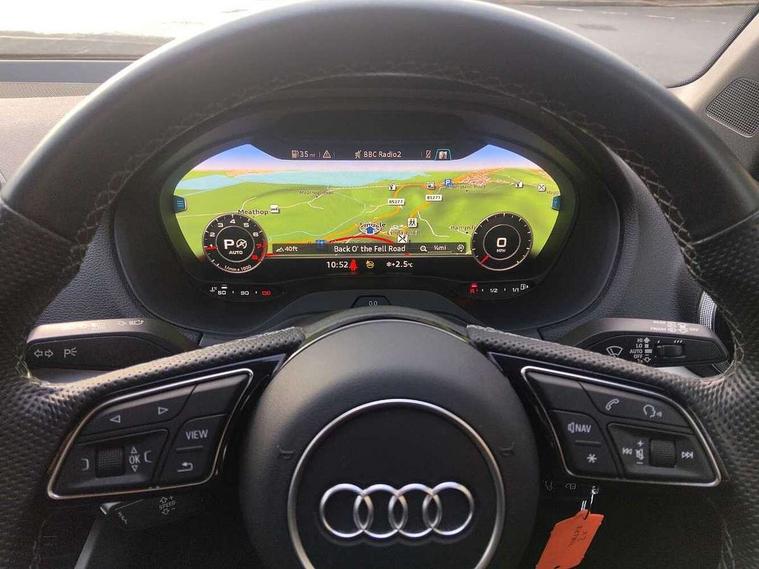 Audi connect navigation and infotainment includes innovative services, Audi connect remote and control connects your vehicle to your smartphone, Audi drive select - Power steering assistance + engine + gearshift, Audi drive select with efficiency, Audi smartphone interface, Audi virtual cockpit, Automatic start/stop system with recuperation, Bluetooth interface includes bluetooth audio streaming, Cruise control, E-call, MMI navigation plus with MMI touch, Power operated tailgate, Progressive steering, Rear parking sensors, 2 x SDXC card reader, 6 passive loudspeakers, DAB Digital radio, DVD Drive, Auto dimming rear view mirror, Black window trims, Electrically adjustable, folding, auto dimming and heated door mirrors with integrated LED side indicators, Front windscreen with grey tinted sunband, LED daytime running lights, LED headlights with LED rear lights, LED third brake light, Rear side wing doors, Rear wiper, S Line badges on the front wings, S Line body styling - front and rear bumpers, side skirts, radiator grille, rear diffuser insert and front air intakes, Variable front intermittent wipers, Wheel arch trims in manhattan grey, 12V socket in front, 3 seat bench in 2nd row, 4-way electric lumbar support for front seats including seat height adjustment for both front seat, 60/40 split folding rear seat bench, Black cloth headlining, Front and rear head restraints, Front centre armrest, Front/rear floor mats, Height/reach adjust steering wheel, Illuminated door sill trims with S logo, ISOFIX child seat mounting in front passenger and rear outer seats, Single front passenger seat, Stainless steel pedals, 3x3 point rear seatbelts, 6 airbags - Front, curtain and front side airbags, Electromechanical parking brake, Electronic stabilisation control including ABS, ASR and EDL, Front passenger airbag deactivation, Hill hold assist, Pre-sense front with pedestrian recognition, Seatbelt monitoring, Tyre pressure warning light, Warning triangle and first aid kit, Anti theft alarm, Anti theft wheel bolts, Electronically operated child locks, Remote central door locking, Aluminium interior element, Matt brushed aluminium trim inlays, Tool kit,