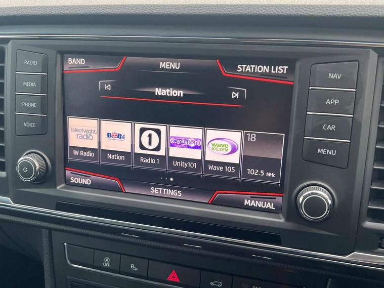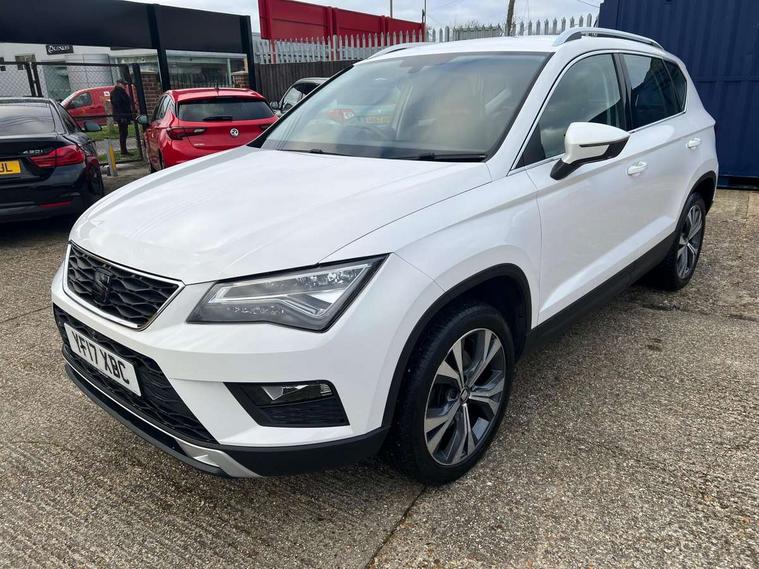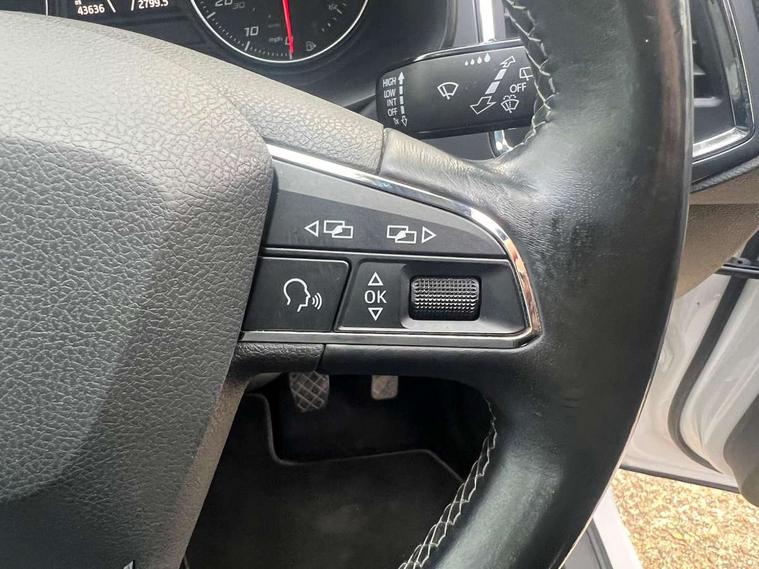 'Lights On' Reminder warning buzzer, Driver alert system, Electric speed sensitive power steering, Full Link App interface, Low fuel warning light, Multi function display, Outside temperature gauge, Rear parking sensor, Remote fuel flap release, SEAT logo boot release, Trip computer, Comfort suspension, XDS electronic differential lock, Steering wheel mounted audio/phone controls, Aluminium roof rails, Body colour bumpers, Body colour door handles, Body colour door mirrors, Chrome headlight surround, Chrome side window trim, Chromed centre radiator grille surround, Electric folding door mirrors, Electrically adjustable and heated door mirrors, Front and rear electric windows, LED daytime running lights, LED front fog lights with static cornering light function, LED Headlights, LED tail lights, Rear wash/wipe, 12V power point front, 3 height adjustable rear headrests, 4 Lashing eyes in boot, 60/40 split folding rear seat, Active head restraints, Adjustable front armrest with storage compartment, Card holder, Cloth upholstery, Comfort front seats, Driver/passenger lumbar adjustment, Driver/passenger sunvisors with illuminated vanity mirrors, Dual zone climate control, Footwell illumination, Front cupholders x 2, Front reading lights, Front seat back storage pockets, Height adjustable driver's seat, Height adjustable front headrests, Height adjustable passenger seat, Illuminated boot, Illuminated glovebox, Isofix child seat preparation, Leather steering wheel and gear knob, Rear armrest, Rear central air outlet, Rear reading lights, Storage box under drivers seat, Navigation system pack - Ateca, Seat Media System Plus pack - Ateca, 3x3 point rear seatbelts, ABS, Auto hold function, Automatic post collision braking, Curtain airbags, Driver/Front Passenger airbags, Drivers knee airbag, Electronic parking brake, Electronic stability control, ESP+EBA, Front and rear seatbelt reminder, Front assist including city emergency braking, Front passenger airbag deactivation, Front side airbags, Hill hold control, Predictive pedestrian protection, Tiredness recognition system, Traction control, Tyre pressure monitoring system, 2 folding remote keys with window open/close function, Immobiliser, Locking wheel bolts, Remote central locking, Volumetric alarm with back up horn, Chrome effect dashboard facia, 18" Bi-colour alloy wheels,