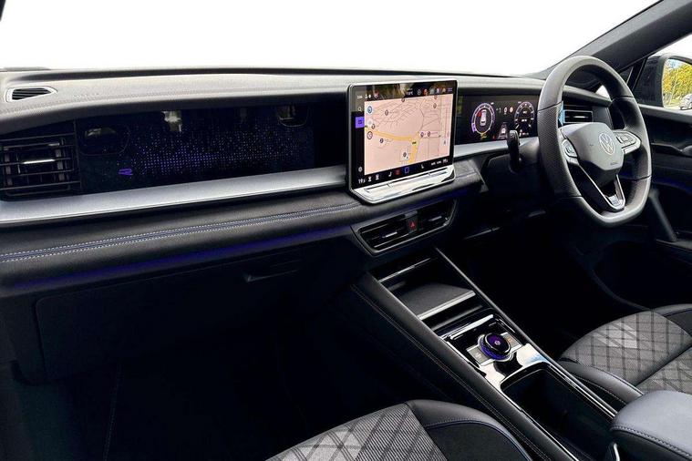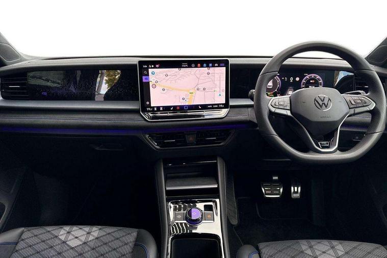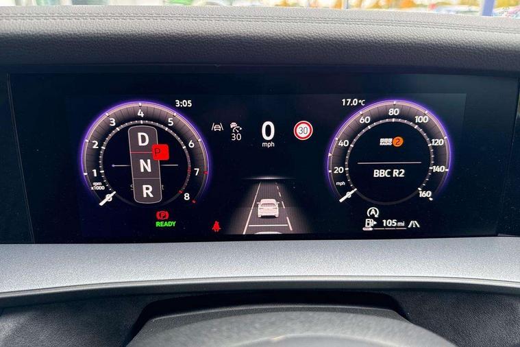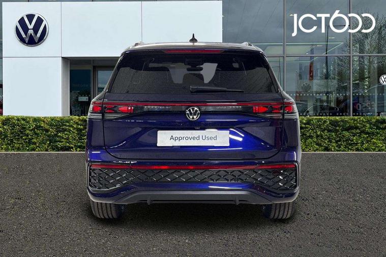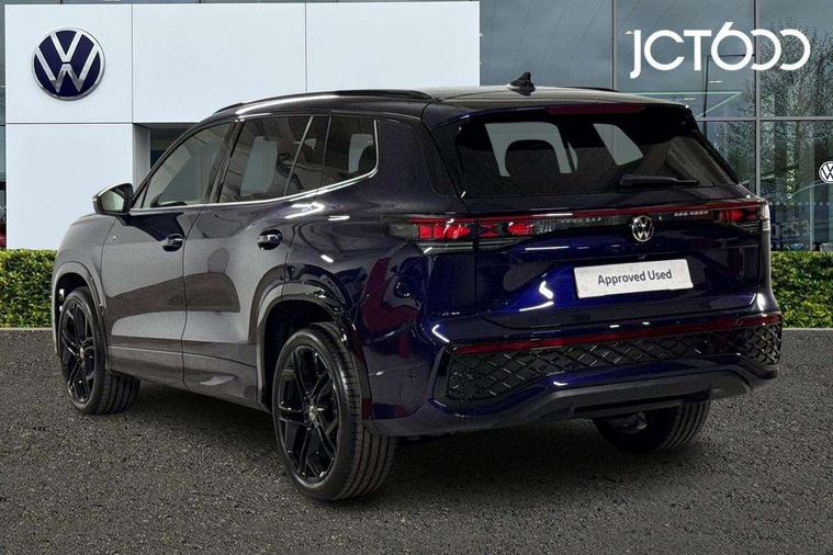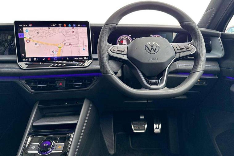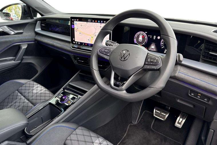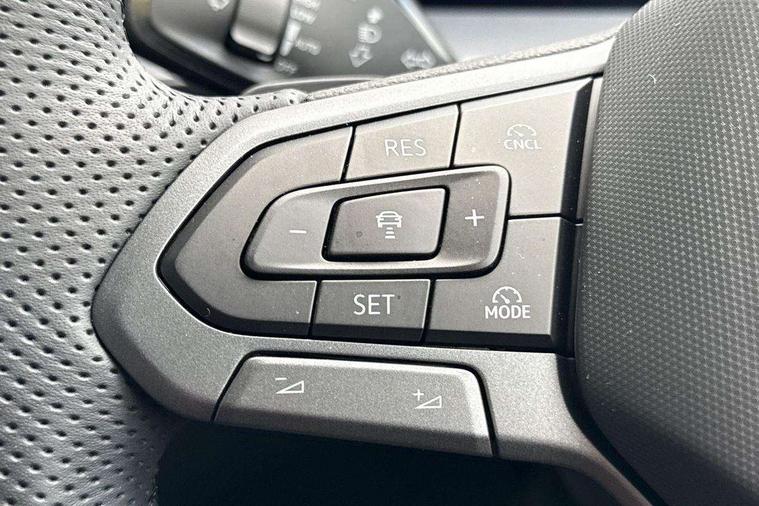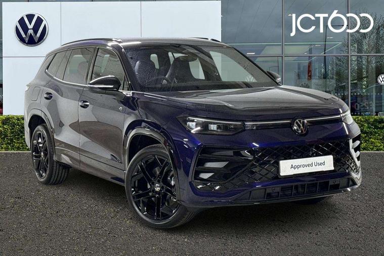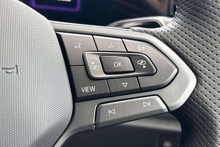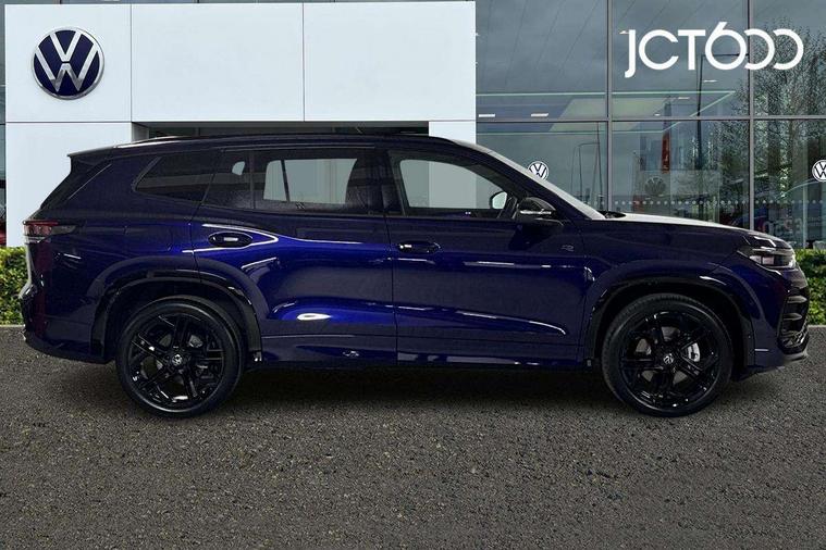 Adaptive cruise control (ACC), Digital Cockpit Pro - 10.25" high resolution dash display screen with customisable menus and information, Driver alert system, Driver attention monitoring system, Dynamic road sign display, E-Sim card for online connectivity, eCall emergency call system, Lane change system, Side assist, Rear traffic alert and Exit warning system, Multifunction front facing camera, Oncoming vehicle braking when turning including swerve support, Start/stop system with regenerative braking, Voice activation spoken voice commands for telephone and navigation system, Warning signal and warning light for front and rear seatbelts not fastened, Wireless App-Connect, Front wheel drive, Digital radio reception (DAB), Diversity antenna for FM reception, Air intake with Chrome trim, Auto dimming interior rear view mirror, Automatic headlight control system, Body colour door handles, Chrome moldings on the side windows, Coming/leaving home lighting function, Dynamic headlight range control with dynamic cornering light, Exterior mirrors convex on the left and aspherical on the right, Heat insulating glass in side and rear windows, Illuminated Volkswagen logo rear with animation, Laminated safety glass windshield, heat insulating, LED 3rd brake light, LED separate signature day time running light, Puddle lights, Rain sensor windscreen wipers, Rear fog light on one side, reversing light on both sides, Rear side wing doors, Rear wiper, Reverse activated passenger's door mirror, Surround lighting with welcome light, Volkswagen logo in front, illuminated lighting animation with wake up/goodbye scenario and illuminated door handles, 10 colour interior ambient lighting, 12V outlet in center console rear and in luggage compartment, 3 rear headrests, 3 rear seat bench in 2nd row, backrest split folding with centre armrest and 2 seats in 3rd row of seats, Black roof lining, Brushed stainless steel pedals, Carpet mats, front and rear, Centre console with illuminated storage compartment with sliding cover and two drinks holders, Chrome elements on the mirror switch and power window switches and door pulls, Door and side trim panel insert in Art velour, Flat luggage compartment floor, Front centre armrest, Front scuff plates in aluminium, ISOFIX anchors for child seats on outer rear seats and front passenger seat compatible with i-Size, Mechanical rear seat release, Power adjustable lumbar support in front, Single front passenger seat, Sports comfort seats in front, Sun visors with illuminated vanity mirrors, 3 Point seat belts in front with pretensioners, 3 point seatbelts in outer rear with ECE label, Autonomous emergency braking front assist with pedestrian and cyclist monitoring, Driver and front passenger airbag with front passenger airbag deactivation, Electronic parking brake with auto hold, First aid kit with warning triangle and safety vest, Front and rear curtain airbags, Front and rear side airbags, Front centre airbag, Front disc brakes, Hill start assist, Rear disc brakes, Two tone horn, Decorative material set R-Line, Interior door handle in matte chrome,