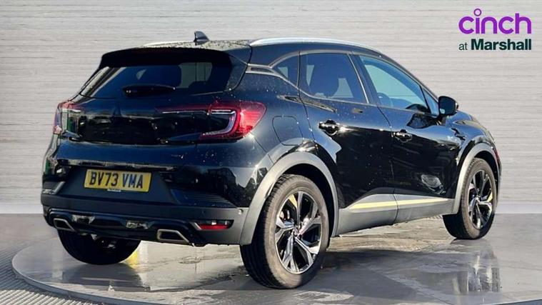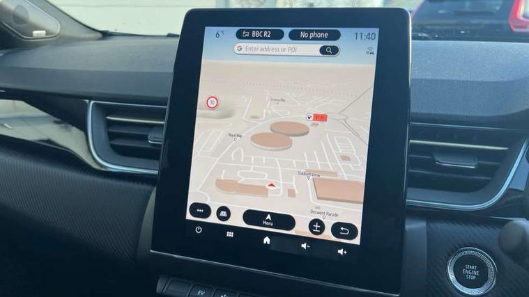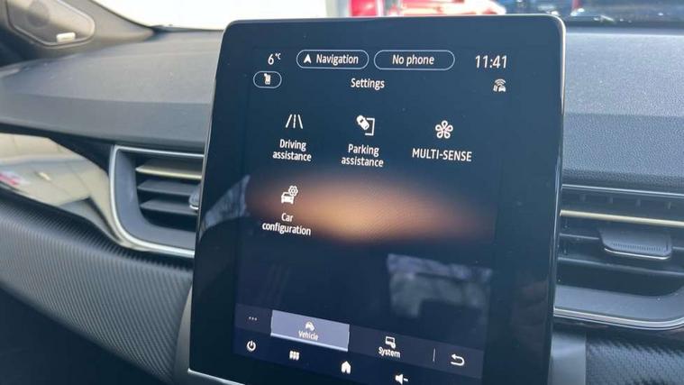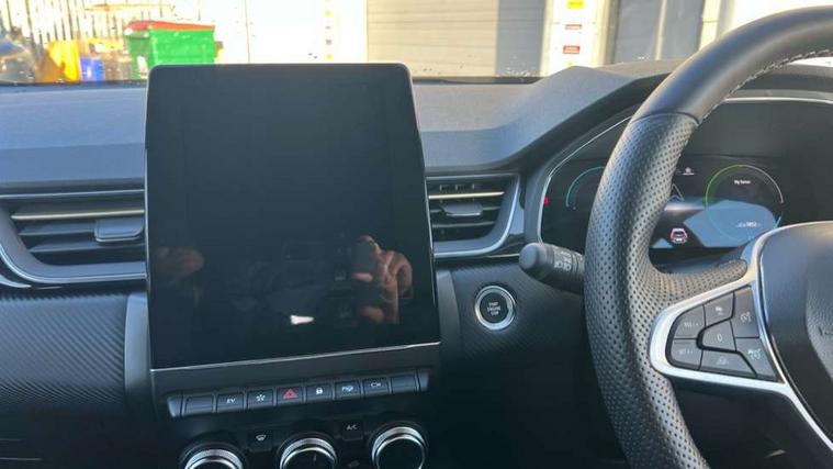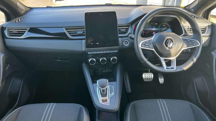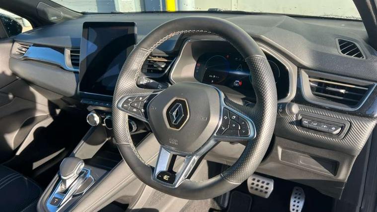 360 surround camera, Blind spot warning, EasyLink 9.3" portrait touchscreen with navigation, google search and traffic information, Eco mode, EV button to activate pure mode, Full digital virtual cockpit - 10" TFT colour display, Gear change indicator, Hands-free parking, Lane departure warning system, Lane keep assist, Multisense with 3 driving modes + 8 ambient lighting colours, Renault automatic emergency assist, Renault Easy Drive - Adaptive cruise control with Stop and Go and Lane centering, Smartphone integration compatible with Apple CarPlay and Android Auto, Traffic sign recognition with over speed prevention, Trip computer, Variable assistance power steering, BOSE sound system with 9 speakers, DAB Radio with Bluetooth and USB, 2 reverse gear LED lamps and 1 rear LED fog lamp in the bumper, Aluminium Renault sport door sills, Auto dimming rear view mirror, Automatic front wipers with rain sensors, Automatic headlights, Automatic high/low beam, Black 'Renault' logo at the front and rear, Black side door protection with warm titanium effect, Body coloured door mirrors, C Shaped LED front and rear lighting signatures with 3D effect on the rear lights, Day time running light, Double chromed exhaust tailpipes element, Drivers one touch window with anti-pinch feature, E-TECH Badging, E-Tech engineered front bumper with gold F1 blade, Extra tinted glass in rear windows and tailgate, Frameless rear view mirror, Front and rear electric windows, Front fenders decopart with shinny black insert, Front grille with shiny black upper trim, Full LED headlights with LED rear lights, Gold E-Tech badge on hatch door, LED high level brake lights, LED rear fog lights, LED turn indicators on door mirrors, Longitudinal roof bars, Rear side wing doors, Rear wiper, Shark fin antenna, Shiny black front and rear skid plate, 60/40 split and fixed base rear seat bench, Aluminium pedals, Automatic climate control with one touch demist function and air quality regulator, Central rear LED rooflight with 3 reading lights, Centre console storage tray, Dark grey interior roof lining, E-TECH Engineered leather steering wheel with gold E-Tech badge, E-Tech engineered leather/suede upholstery, Flying console with e-shifter, Front head restraints, Gold detailing on the dash and steering wheel, Gold stitching on the door panel, Heated steering wheel, Heating system with pollen filter, Height adjustable driver's seat, Height adjustable passenger seat, Height/reach adjust steering wheel, ISOFIX child seat fixing points on rear outermost seats, LED front roof lights, Modular boot floor, Rear head restraints, Single front passenger seat, Sliding rear bench, 3 rear seatbelts, ABS+EBA, AEBS - active emergency braking system, B Brake Mode - One pedal driving with increased regenerative braking, Distance warning alert, Driver and front passenger and 3 rear passengers seatbelt reminder, Driver and front passenger, side, head and curtain airbags, Driver height adjustable seat belt, Electric parking brake with auto hold function, Electronic stability control, Front dash warning indicator in case of heavy braking, Front driver and passenger side airbag deactivation, Hill start assist, Manual passenger airbag deactivation function, Rear door and window child locking function for rear door, Tyre pressure warning light, Anti drill door locks and locking fuel cap, Central door locking, Deadlocking system, Hands free keycard with push button and start/stop function, RAID (Renault Anti-Intruder Device) automatic door locking, Black soft touch dashboard, 18" E-Tech engineered le castellet diamond cut alloy wheels with gold inserts, Tyre inflation kit,
