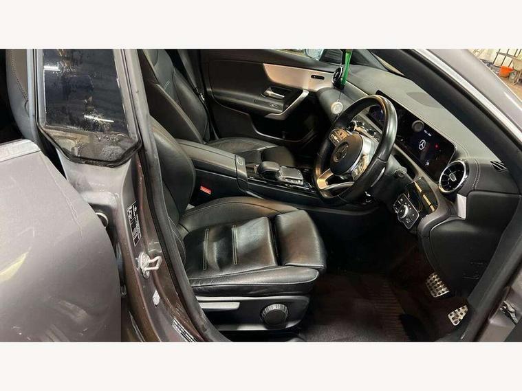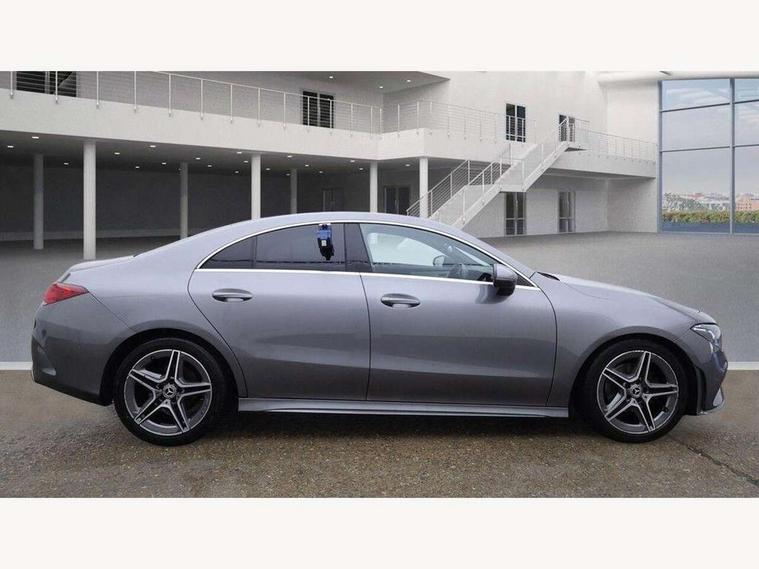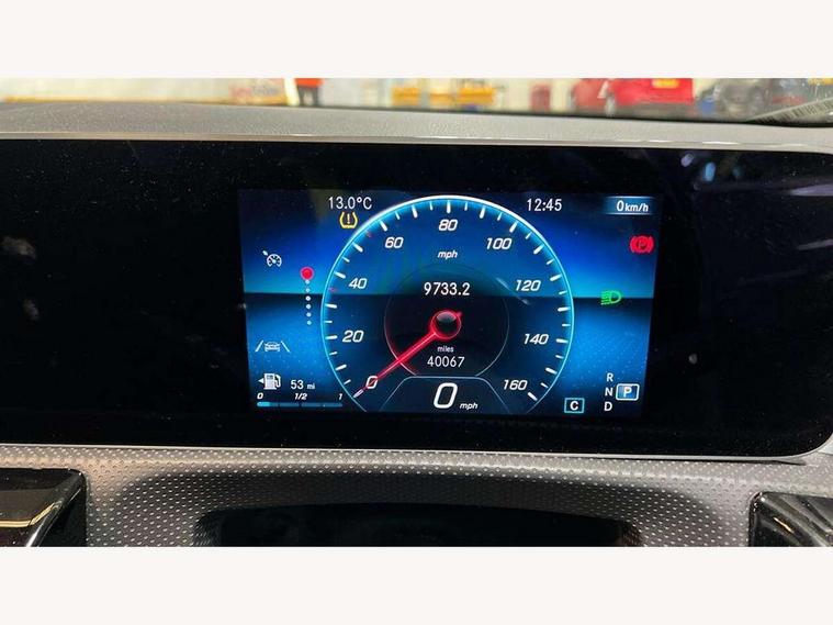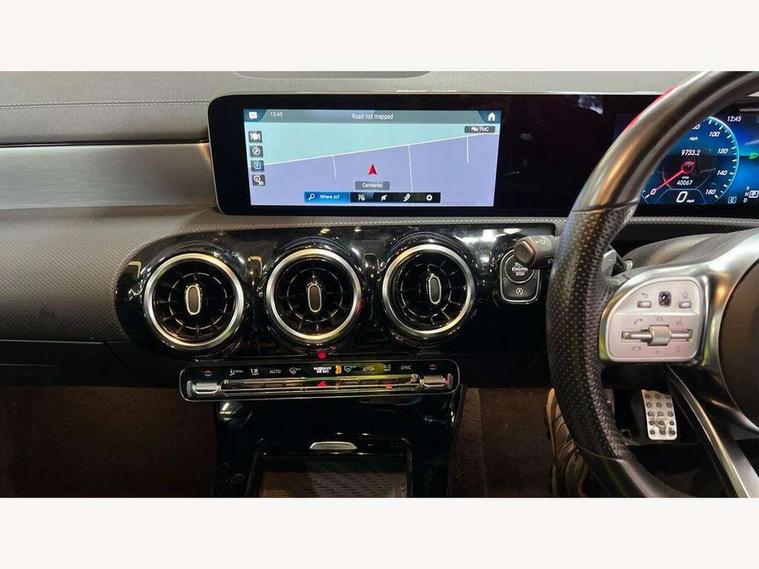 10.25 inch touchscreen central media display, 7 inch Instrument display with digital cockpit, Active lane keeping assist, Attention assist - Monitors steering behaviour and long journey fatigue, Cruise control with limiter, Direct steer system with speed sensitive power steering, Dual bluetooth interfaces, DYNAMIC SELECT with a choice of driving modes (ECO, Comfort, Sport, Sport+ and Individual), ECO start/stop function, Fluid level warning indicator for fuel, oil, coolant and washer fluid, Hard-disk navigation, Hey Mercedes Voice activation, Lamp failure indicator, Mercedes me connect including emergency call system, accident recovery, breakdown and maintenance management, Outside temperature gauge, Owners manual and service booklet in English, Pre-installation for Vehicle Monitoring, Pre-installation for Vehicle Setup, Pre-installation of private car share, Preinstallation for Mercedes Benz link, Radio aerial integrated into front and rear windshields, Service indicator (ASSYST), Smartphone integration with Apple CarPlay and Android auto, Speed limit assist, Trip computer in multifunction display with current consumption indicator, Wireless charging, 7G-DCT 7 speed automatic transmission, Lowered comfort suspension, Rear axle multi-link, DAB digital radio tuner, MBUX multimedia system with DAB digital radio and touchpad including satellite navigation, Mercedes Benz sound system (100 W) with 6 speakers, USB (type C) ports (2) in stowage compartment and 1 in front of centre console, Adaptive brake lights, AMG body styling with AMG front apron and rear apron and visible exhaust tailpipe in chrome trim elements, AMG bodystyling side skirts, Body colour bumpers, Body colour door handles, Chrome beltline strips, Diamond radiator grille pins in chrome with silver painted louvres and chrome insert, Electric windows, Electrically adjustable and heated door mirrors with integrated LED indicators, Exhaust system with 2 Visible tailpipe trim elements and rear apron with trim in chrome, Headlamp assist automatic headlamp activation, Heated glass rear windscreen + timer control, High level LED third brake light, LED high performance headlamps with integrated LED daytime running lights, LED tail lamp, Privacy glass with dark tinting on rear side windows and rear window, Rain sensing windscreen wipers with two sensitivity settings, Rear fog lamp, Vehicle Monitoring, Vehicle Setup, Window line trim strip in chrome, 3 spoke flattened bottom nappa leather multifunction steering wheel with perforated leather in grip area, 40:20:40 split folding rear seat backrests, Air conditioning - Two zone thermotronic luxury automatic climate control with display, Air vents with surround in silver chrome, Automatic child seat recognition sensor, Black roof lining, Brushed stainless steel sports pedals with rubber studs, Floor mats with stitched AMG lettering, Front centre armrest with stowage, Front door sills with Mercedes Benz lettering, Front seat cushion length adjustment, Galvanished gear shift paddles on steering wheel, Heated front seats, Illuminated glove compartment stowage, Luggage net on driver/front passenger seat backrest, Manually adjustable front seats, Manually height and reach adjustable steering column, Rear head restraints, Rear interior lamp, Spectacles compartment for driver, Sport seats with fixed head restraints, Stowage compartment in centre console with retractable cover, Sunvisors with illuminated vanity mirrors, Touchpad on center console, Twin front cupholders, Two outer rear seat isofix and top tether child seat fixing points, Light and sight pack - CLA, Mirror pack - CLA, Parking package - CLA, Seat comfort pack - CLA, Active bonnet pedestrain safety measure which detects an impact and raises bonnet by 65mm, Active brake assist includes forward collision warning system with autonomous braking, Adaptive brake assist with hold function and hill start assist, Anti-lock braking system (ABS), Black seat belts, Bonnet with power domes, Brake pad wear warning indicator, Childproof locks manually operated for rear doors and electrically operated for rear power windows, Crash responsive emergency lighting, Driver and front passenger head and sidebags, Driver and front passenger windowbags, Drivers knee airbag, Dual stage driver and front passenger airbags, Electric parking brake, Electronic stability programme with acceleration skid control, ESP curve dynamic assist, Front and rear seatbelt reminder, Front brake callipers with Mercedes Benz lettering, Front passenger seat occupancy sensor, Three point rear seat belts, Tyre pressure monitoring system, Warning triangle and first aid kit, Alarm system with immobiliser and interior protection -Thatcham category 1, Keyless Go starting function, Remote central locking and crash sensor with emergency opening function, Light aluminium with longitudinal grain interior trim, 18" 5 twin spoke design alloy wheels painted in titanium grey with high sheen finish, Summer tyres, Tirefit tyre sealant kit,