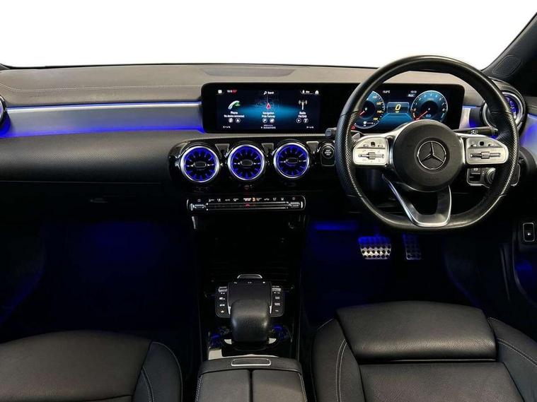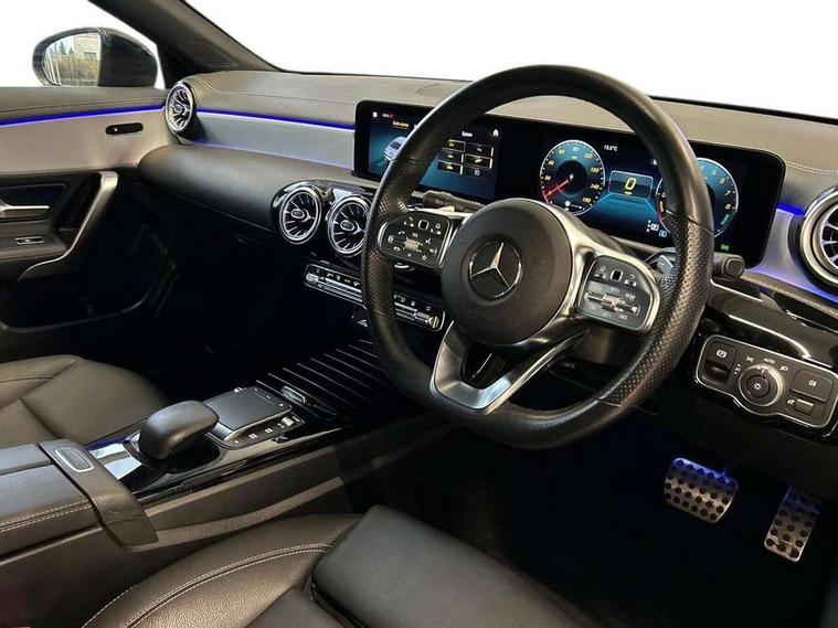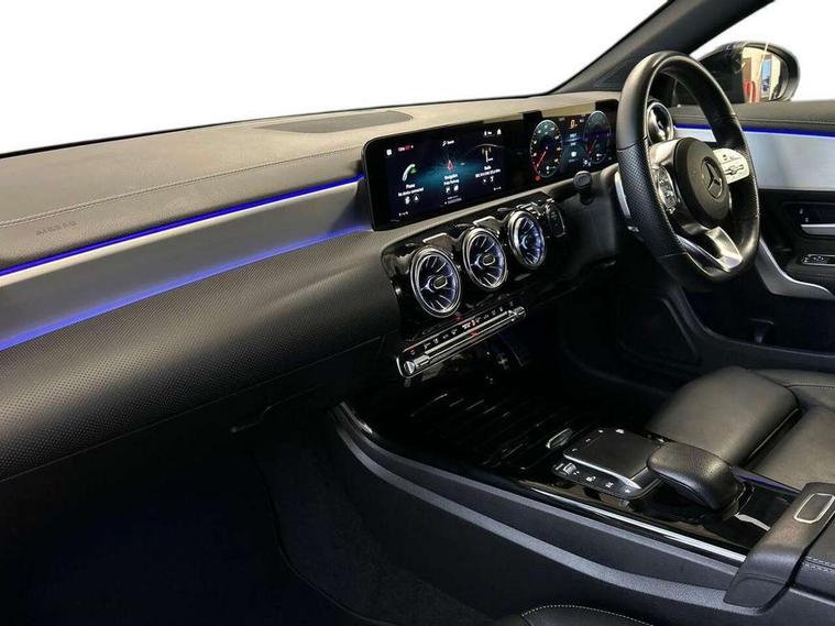 10.25 inch Instrument display with digital cockpit, 10.25 inch touchscreen central media display, Acoustic ambient protection, Active lane keeping assist, Attention assist - Monitors steering behaviour and long journey fatigue, Bluetooth connection, Car wash mode, Cruise control with limiter, Direct steer system with speed sensitive power steering, DYNAMIC SELECT with a choice of driving modes (ECO, Comfort, Sport and Individual), ECO start/stop function, Fluid level warning indicator for fuel, oil, coolant and washer fluid, Hard-disk navigation, Hey Mercedes Voice activation, Lamp failure indicator, Mercedes me connect including emergency call system, accident recovery, breakdown and maintenance management, Mercedes me remote services, Outside temperature gauge, Owners manual and service booklet in English, Pre-installation for remote and navigation services, Pre-installation of private car share, Preinstallation for Mercedes Benz link, Radio aerial integrated into front and rear windshields, Remote and charging services plus, Service indicator (ASSYST), Smartphone integration with Apple CarPlay and Android auto, Speed limit assist, Trip computer in multifunction display with current consumption indicator, 4m charging cable for wall box/charging stations, 7.4 kW onboard charger, Charging system - AC charging system rated at 7.4 kW, Comfort suspension, Rear axle multi-link, DAB digital radio tuner, MBUX multimedia system, Mid-range sound system, USB (type C) ports (2) in stowage compartment and 1 in front of centre console, Adaptive brake lights, AMG body styling with AMG front apron and rear apron and visible exhaust tailpipe in chrome trim elements, AMG bodystyling side skirts, Body colour bumpers, Body colour door handles, Chrome beltline strips, Diamond radiator grille pins in chrome, Electric windows, Electrically adjustable and heated door mirrors with integrated LED indicators, Exhaust system with 2 Visible tailpipe trim elements and rear apron with trim in chrome, Headlamp assist automatic headlamp activation, Heated glass rear windscreen + timer control, High level LED third brake light, Interior mirror with black reading lamps and frameless, LED high performance headlamps with integrated LED daytime running lights, LED tail lamp, Privacy glass with dark tinting on rear side windows and rear window, Rain sensing windscreen wipers with two sensitivity settings, Rear boot, Rear fog lamp, Rear side wing doors, Variable front intermittent wipers, Window line trim strip in chrome, 3 seat bench in 2nd row, 3 spoke flattened bottom nappa leather multifunction steering wheel with perforated leather in grip area, 40:20:40 split folding rear seat backrests, Air conditioning - Two zone thermotronic luxury automatic climate control with display, Air vents with surround in silver chrome, Artico man-made leather upholstery, Automatic child seat recognition sensor, Black roof lining, Brushed stainless steel sports pedals with rubber studs, Charging socket, Floor mats with stitched AMG lettering, Front centre armrest with stowage, Galvanished gear shift paddles on steering wheel, Heated front seats, Illuminated front door sills with changeable cover, Illuminated glove compartment stowage, Interior lighting - 64 colour Ambient lighting, Luggage net on driver/front passenger seat backrest, Manually adjustable front seats, Manually height and reach adjustable steering column, Pre-entry climate control, Rear armrest with two integral cup holders for drinks, Rear head restraints, Single front passenger seat, Sport seats with fixed head restraints, Stowage compartment in centre console with retractable cover, Sunvisors with illuminated vanity mirrors, Touchpad on center console, Twin front cupholders, Two outer rear seat isofix and top tether child seat fixing points, Keyless go comfort pack - CLA, Light and sight pack - CLA, Mirror pack - CLA, Night package - CLA, Parking package - CLA, Seat comfort pack - CLA, Active bonnet pedestrain safety measure which detects an impact and raises bonnet by 65mm, Active brake assist includes forward collision warning system with autonomous braking, Adaptive brake assist with hold function and hill start assist, Anti lock braking system (ABS) with brake assist, Black seat belts, Bonnet with power domes, Brake pad wear warning indicator, Childproof locks manually operated for rear doors and electrically operated for rear power windows, Crash responsive emergency lighting, Driver and front passenger head and sidebags, Driver and front passenger windowbags, Drivers knee airbag, Dual stage driver and front passenger airbags, Electric parking brake, Electronic stability programme with acceleration skid control, ESP curve dynamic assist, Front and rear seatbelt reminder, Front passenger seat occupancy sensor, Perforated front brake discs, Radar-based recuperation, Three point rear seat belts, Tyre pressure monitoring system, Warning triangle and first aid kit, Guard 360 degree guard vehicle protection system with immobiliser and interior protection, Remote central locking and crash sensor with emergency opening function, Light aluminium with longitudinal grain interior trim, 18" AMG 5 twin spoke light alloy wheels painted in black with high sheen finish, Summer tyres, Tirefit tyre sealant kit,