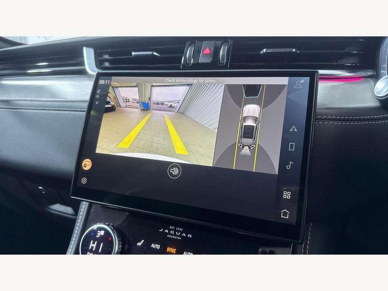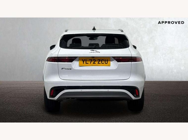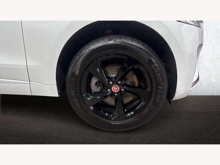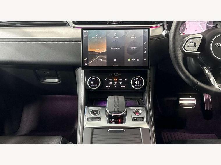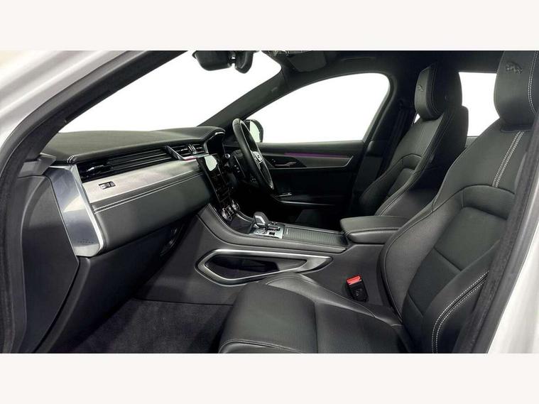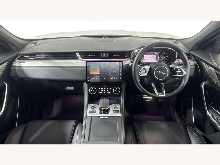 11.4" touchscreen, Android Auto, Apple car play, Blind spot assist, Bluetooth connectivity, Clear exit monitor, Driver alert system, Driver condition monitor, eCall emergency call system, Eco driving style assistant, Electric power assisted steering, InControl remote, Jaguar Toggle shift selector, Lane departure warning system, Lane keep assist, Outside temperature gauge, Personalisation profile management, Pivi pro connected navigation system with app interface and media storage, Pro services and wifi hotspot, Push button starter, Rear traffic monitor, Service interval indicator, Speed proportional steering, Start up sequence with movement in dials and lighting, Traffic sign recognition with adaptive speed limiter, Trip computer, Voice control system, 8 speed automatic transmission, All terrain progress control, All Wheel Drive (AWD), Open differential with torque vectoring by braking, AM/FM radio, Bluetooth streaming, DAB Radio (Digital Audio Broadcasting), Dynamic volume control, InControl apps, InControl protect, iPod integration, 3 flash lane change indicators, Animated directional indicators, Approach Illumination, Auto dimming rear view mirror, Automatic headlights, Body colour door mirrors, Electric heated/power fold memory door mirrors with approach lights and auto dimming driver side, Electric windows with one touch open/close and anti trap, F-Pace and R Dynamic badge, Green tinted glass, Heated front windscreen + heated washer jets, Heated rear window with timer, Jaguar script and leaper, LED High level third brake light, LED tail lights, Non acoustic front windscreen, R Dynamic badge on side door, Rain sensor windscreen wipers, Rear fog lights, Rear metal tread plates, Rear side wing doors, Rear wiper, Trailer stability assist, Variable front intermittent wipers, 12V power point front, 3 rear headrests, 3 seat bench in 2nd row, Air distribution speed, Bright metal foot pedals, Centre armrest console, Centre console with side storage, Deletion loadspace storage rails, Door sill tread plates, Fold flat front seats, Front centre armrest with storage compartment, Front door storage space, Glovebox finisher with jaguar script, Heated steering wheel, Hooks in loadspace, Illuminated glovebox, Interior front door handles with separate locking switches, ISOFIX on outer rear seats, Jaguar sense, Luggage tie downs in loadspace, Mist sensing, Multifunction steering wheel, Overhead lighting console, Overhead stowage for sunglasses, Passive front head restraints, Premium cabin lighting, Premium carpet mats, R-Dynamic branded leather steering wheel, Rear air vents, Rear armrest with twin cupholders, Rear centre headrest, Rear door storage space, Reversible boot floor, Satin chrome gearshift paddles, Shopping bag hook, Single front passenger seat, Sunvisors with illuminated vanity mirrors, Twin front cupholders with cover, Online Pack with data plan - F-Pace, 355mm front brakes and 325mm rear brakes, 3x3 point rear seatbelts, ABS, All surface progress control (ASPC), Brake pad warning light, DSC - Dynamic Stability Control, Electric parking brake (EPB), Emergency brake assist, Front airbags with passenger seat occupant detector, Front and rear seatbelt reminder, Front side airbags, Full length side window curtain airbag, Hill launch assist, Power operated child locks, Torque vectoring brake, Traction control, Tyre pressure monitoring system, Immobiliser, Keyless entry, Keyless Start, Locking wheel nuts, Perimeter alarm, Remote central locking, Valet mode,