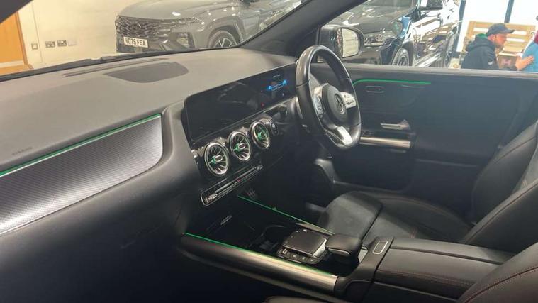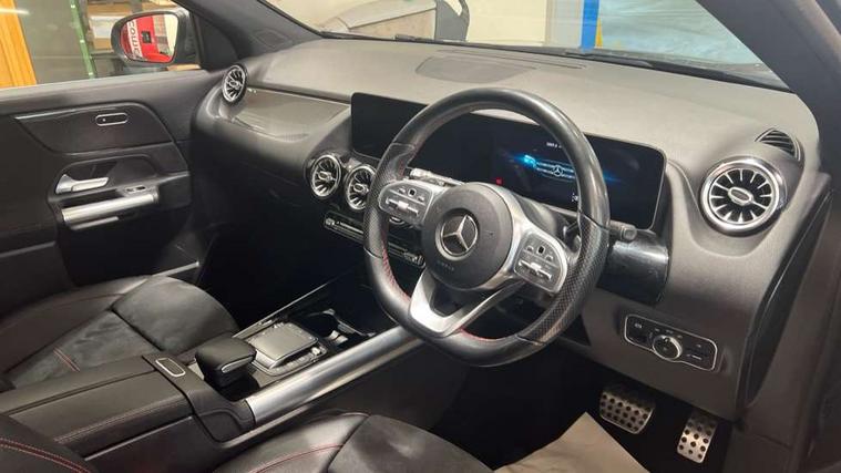 10.25 inch touchscreen central media display, 10.25" Digital instrument cluster display screen, Active lane keeping assist, Attention assist, Augmented reality navigation, Cruise control + speed limiter, Direct steering, DYNAMIC SELECT with a choice of driving modes (ECO, Comfort, Sport, Sport+ and Individual), Easy-pack tailgate, ECO start/stop function, Fluid level warning indicator for fuel, oil, coolant and washer fluid, Hard-disk navigation, Hey Mercedes Voice activation, Lamp failure indicator, Mercedes me connect including emergency call system, accident recovery, breakdown and maintenance management, Multi function trip computer, Outside temperature gauge, Owners manual and service booklet in English, Pre-installation for Vehicle Monitoring, Pre-installation for Vehicle set up, Pre-installation of private car share, Radio aerial integrated into front and rear windshields, Service indicator (ASSYST), Smartphone integration with Apple CarPlay and Android auto, Speed limit assist, Status display for rear seat belts in instrument cluster, Wireless charging, Lowered comfort suspension, Rear axle multi-link, 2 USB ports (type C) in rear stowage compartment and one in front of center console, Bluetooth connectivity including audio streaming, DAB Digital radio, MBUX multimedia system with DAB digital radio and touchpad including satellite navigation, Media interface, Mercedes-Benz advanced sound system - 225W, Adaptive brake lights, Aerial for GPS, Aluminium roof rails, AMG front and rear apron, AMG specific/dual flow exhaust pipes in chrome (non-functional), Automatic headlamp activation, Beltline strips and weather strip in chrome, Black grained claddings with chrome parts, Body colour bumpers, Body colour door mirrors, Body coloured door handles with chrome insert for keyless entry, Car wash function, Dark privacy glass from B-pillar backwards, Electric front windows, Electric rear windows, Electrically adjustable and heated door mirrors with integrated LED indicators, Heated glass rear windscreen + timer control, Heated windscreen wash system, Interior mirror with black reading lamps and frameless, LED high performance headlamps with integrated LED daytime running lights, LED tail lights in two piece design, LED third brake light, Matt titanium grey front and rear apron trim, Pre-installation for trailer coupling, Rain sensor windscreen wipers, Rear fog lights, Roof spoiler, Single lamella raditor grille with chrome dotted diamond grille and inlay, 12V power socket in centre console, 3 spoke multifunction sports steering wheel in nappa leather with flattened bottom and perforated grip area, 40:20:40 split folding rear seat backrests, Adjustable head restraints, Air conditioning - Two zone thermotronic luxury automatic climate control with display, Ambient lighting in front headrests, AMG floor mats with AMG lettering and stiched edging, Artico man-made leather/Microfibre Dinamica upholstery with red contrast stitching, Auto Mercedes-Benz child seat recognition sensor, Black roof lining, Brushed door pulls in silver chrome, Courtesy light in boot, Front centre armrest with stowage, Galvanished gear shift paddles on steering wheel, Heated front seats, Illuminated door sills, Illuminated glovebox, Interior lighting - 64 colour Ambient lighting, Leather trimmed gearknob, Luggage net on driver/front passenger seat backrest, Manually height and reach adjustable steering column, Multi-gesture touchpad control on center console, Net in front passenger footwell, Sports pedals in brushed stainless steel with black rubber studs, Sports seats, Stowage compartment in centre console, Stowage compartment with retractable cover, Sunvisors with illuminated vanity mirrors, Twin front cup holders, Two outer rear seat isofix and top tether child seat fixing points, AMG body styling pack - GLA, Comfort seat pack - GLA Class, Interior lighting with light and sight pack - GLA, Load compartment pack - GLA, Mirror pack - GLA Class, Parking pack - GLA, 3 rear 3 point seatbelts, ABS with Brake Assist, Active bonnet pedestrain safety measure which detects an impact and raises bonnet by 65mm, Active brake assist includes forward collision warning system with autonomous braking, Adaptive brake assist with hold function and hill start assist, Bonnet with power domes, Brake pad wear warning indicator, Childproof locks manually operated for rear doors and electrically operated for rear power windows, Crash responsive emergency lighting, Driver and passenger head and side airbags, Drivers knee airbag, Dual stage driver/passenger airbags, Electronic parking brake, ESP curve dynamic assist, ESP with ASR, Front and rear seatbelt reminder, Front brake callipers with Mercedes Benz logo lettering on front, Front brake discs internally ventilated and perforated, Front passenger seat occupancy sensor, Tyre pressure monitoring system, Warning triangle and first aid kit, Window airbags, Alarm system with immobiliser and interior protection -Thatcham category 1, Keyless Go Lock/Unlock function, Keyless Go starting function, Remote central locking and crash sensor with emergency opening function, Vehicle key with decorative surround in chrome, Carbon structure trim, Chrome air vent surrounds, 19" AMG 5 twin spoke light alloy wheels aerodynamically optimised painted in tantalite grey with a high sheen finish, Summer tyres, Tirefit tyre sealant kit,
