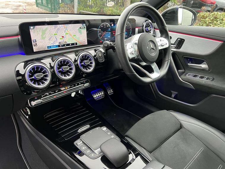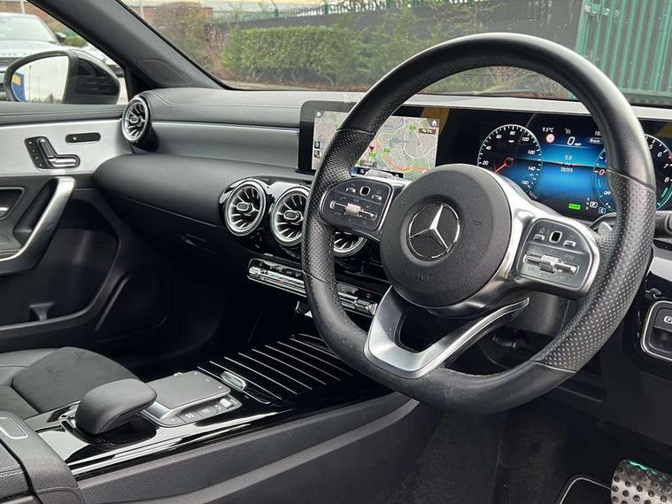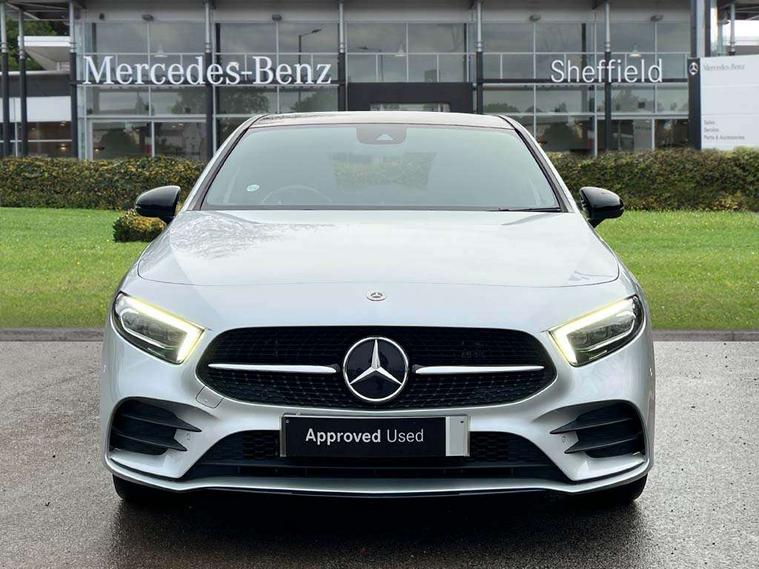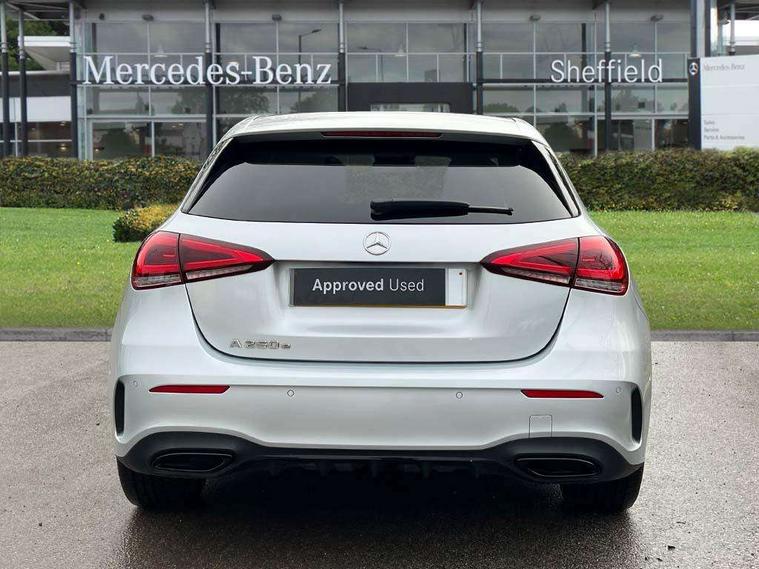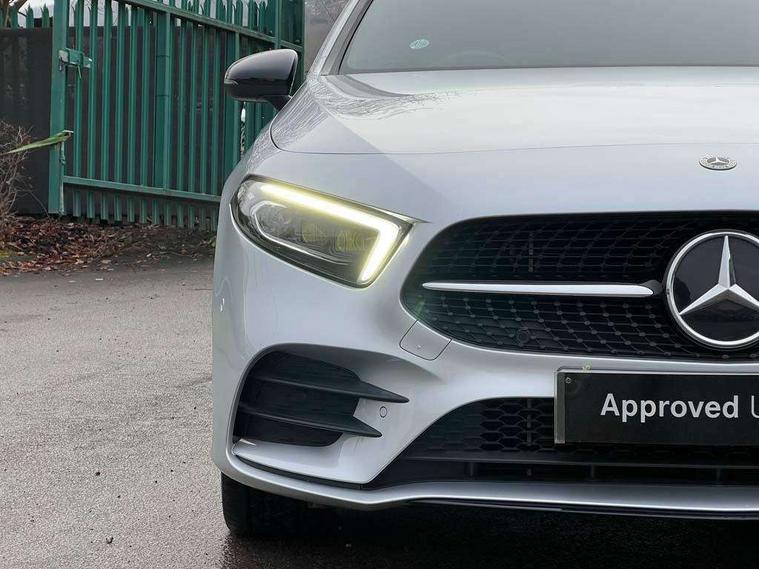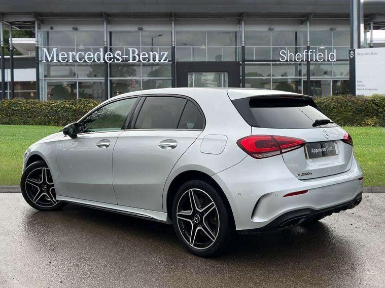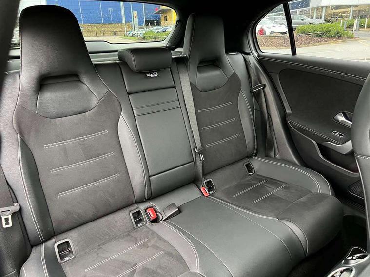10.25" Digital instrument cluster display screen, 10.25" media display, 180 degree rear view camera with parking guidelines, Acoustic ambient protection, Active parking assist with visual and audible warning of detected obstacles, Attention assist, Brake pad wear indicator warning light, Car wash mode, Direct steering, Dual bluetooth interfaces, DYNAMIC SELECT with a choice of driving modes (ECO, Comfort, Sport and Individual), ECO start/stop function, Fluid level warning indicator for fuel, oil, coolant and washer fluid, Hard-disk navigation, Hey Mercedes Voice activation, Lamp failure indicator, Lane keeping system, Mercedes me connect including emergency call system, accident recovery, breakdown and maintenance management, Mercedes me remote services, Outside temperature gauge, Owners manual in English, Pre-installation for private car sharing, Preinstallation for Mercedes Benz link, Remote and charging services plus, Service indicator (ASSYST), Smartphone integration with Apple CarPlay and Android auto, Traffic sign assist, Trip computer, Ultrasonic sensors positioned in the front and rear bumpers, 7.4 kW monophase on board charger, Comfort suspension, Mode 2 charging cable with 3pin and 5m upto 2.3kW, Mode 3 charging cable 11 kW, Rear axle multi-link, 10 speakers, 2 USB ports (type C) in rear stowage compartment and one in front of center console, DAB Digital radio, MBUX multimedia system with DAB digital radio and touchpad including satellite navigation, Mercedes-Benz sound system - 100W, 4 Electric Front and Rear windows, Adaptive brake lights, AMG bodystyling - Front apron with splitter in chrome, rear apron with chrome trim and chrome visible trim elements in tailpipe, Black weather strip, Body colour bumpers, Body colour door handles, Body colour side skirt, Body coloured door mirrors, Edition badging on the front wings, Electric adjustable and heated door mirrors with integrated LED side indicators, Exclusive diamond radiator grille, Exhaust system - Twin visible tailpipes in polished stainless steel, Headlamp assist automatic headlamp activation, Heated glass rear windscreen + timer control, High gloss black beltline, LED High level third brake light, LED tail lamp, Multibeam LED with adaptive highbeam assist plus, Panoramic sliding sunroof, Privacy glass, Radio aerial, Rain sensing windscreen wipers with two sensitivity settings, Rear fog lights, Rear wiper, Window line trim strip in high gloss black, 3 Spoke flat bottom leather multi function steering wheel with perforated leather in grip area, 40:20:40 split folding rear seats, Artico man-made leather/Microfibre Dinamica upholstery with contrast stitching in light grey, Auto Mercedes-Benz child seat recognition sensor, Black air vents with surround in silver chrome, Black roof lining, Brushed stainless steel sports pedals with rubber studs, Charging socket, Controller on centre console with chrome surround, Floor mats with black top stitching and embroidered edition logo and piping in light grey, Front centre armrest with storage compartment, Front seat backs luggage nets, Front seat cushion length adjustment, Galvanished gear shift paddles on steering wheel, Heated front seats, Height/reach adjustable steering column, Illuminated front door sills with changeable cover, Interior lighting - 64 colour Ambient lighting, Interior mirror with reading lamps in black and frameless, Pre-entry climate control, Rear armrest with 2 cupholders, Rear head restraints, Seat occupancy sensor for front passenger seat, Sports seats with integrated headrests, Stowage compartment in centre console with retractable cover, Sunvisors with illuminated vanity mirrors, Touchpad on center console, Twin front cupholders, Two zone thermotronic luxury automatic climate control, Light and sight pack - A Class, Mirror package - A Class, Night pack - A Class Saloon/Hatchback, Seat comfort pack - A Class, 3 rear 3 point seatbelts, ABS with Brake Assist, Active bonnet, Adaptive brake assist with hold function and hill start assist, Black seatbelts, Childproof locks manually operated for rear doors and electrically operated for rear power windows, Crash responsive emergency lighting, Driver and passenger head and side airbags, Drivers knee airbag, Dual stage driver/passenger airbags, Electronic parking brake, ESP curve dynamic assist, ESP with ASR, Front and rear seatbelt reminder, Front brake callipers with Mercedes Benz lettering, ISOFIX and top tether child seat fixing points in two outer rear seats, Perforated front brake discs, Radar based regeneration, Tyre pressure monitoring system, Warning triangle and first aid kit, Window airbags, Alarm system/interior protection/immobiliser, Keyless entry lock/unlock, Keyless Go, Remote central locking and crash sensor with emergency opening function, Urban guard vehicle protection system with immobiliser and interior protection, Matrix look light longitudinal grain aluminium trim element, 18" AMG 5 twin spoke light alloy wheels aerodynamically optimised painted in black with highsheen finish, Summer tyres, Tirefit sealant kit,