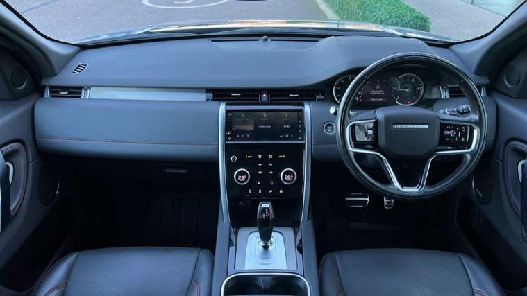 10" touch screen, Adaptive cruise control, Android Auto, Apple CarPlay, Blind spot assist, Clear exit monitor, Driver condition monitor, eCall emergency call system, Front and rear parking aid, InControl remote premium, Lane keep assist, Locking fuel flap, PAS, Pivi Pro connected navigation system with upgraded Infotainment, Powered tailgate/boot lid, Push button start, Rear collision monitor, Rear traffic monitor, Service interval indicator, Traffic sign recognition with adaptive speed limiter, Trip computer, Wade Sensing, All terrain progress control, Coil suspension system, Configurable dynamics, Diesel particulate filter, Dynamic stability control, Efficient Driveline, Terrain Response 2, Bluetooth connectivity including audio streaming, Digital Audio Broadcast radio-DAB, Steering wheel mounted audio controls, 3rd brake light, Automatic headlight levelling, Automatic headlights, Electric front/rear windows, Electric heated/power fold door mirrors with approach lights and auto dimming driver side, Front and rear recovery eyes, Front fog lights, Heated rear window, Heated windscreen including heated washer jets, Illuminated metal front treadplates with R dynamic branding, Privacy glass, R Dynamic badge, Rain sensing windscreen wipers, Rear fog lights, Rear side wing doors, Rear wing door, Rear wiper, 2 seat bench in 3rd row, 3 seat bench in 2nd row, Bright metal pedals, Centre console with armrest, Configurable cabin lighting, Electrically adjustable steering column with memory, Footwell lights, Front and rear grab handles, Front passenger isofix child seat attachment, Front passenger seat, Heated steering wheel, Loadspace cover, Loadspace light, Manual third row seats, Overhead lighting console, Overhead stowage for sunglasses, Rear headrests, Satin chrome gearshift paddles, Sunvisors with illuminated vanity mirrors, Tilt/reach adjustable steering wheel, Black exterior pack - Discovery sport R-Dynamic SE/HSE, Online pack with data plan - Discovery, 3 point seatbelts on all seats, ABS, Brake hold function, Child locks on rear doors, Collision mitigation braking system, Cornering brake control (CBC), Driver/Front Passenger airbags, Drivers knee airbag, Electronic brake force distribution, Electronic parking brake, Emergency brake assist, ESP + traction control, Hill descent control, Hill launch assist, Pedestrian airbag system, Rear seat ISOFIX, Roll stability control, Side and curtain airbags for front and 2nd row seats, Trailer stability control, Tyre pressure monitoring system, Battery Back Up System (BBUS) with tilt sensor, Global lock and unlock switch on driver door, Intrusion sensor, Keyless entry, Locking wheel nuts, Centre stack rails in noble chrome,