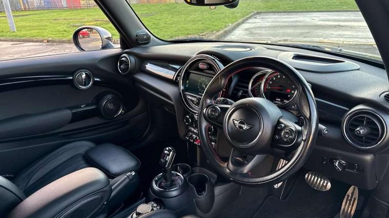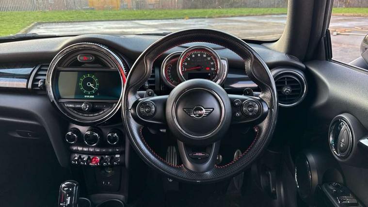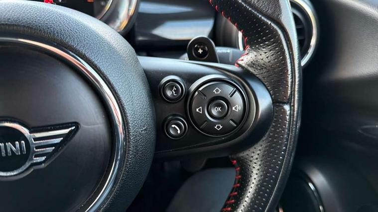 Acoustic seat-belt warning, Basic bluetooth function with USB audio, Brake fluid level warning light, Brake pad wear indicator warning light, DTC - Dynamic traction control, Exterior temperature gauge, Intelligent emergency call, MINI Driving Modes - centre toggle switch to control driving setting (sport, mid and green), MINI TeleServices, Oil level indicator, On board computer, Service interval indicator, Servotronic PAS, Stop/start button, Electronic differential lock, Performance Control, 6.5" touchscreen, Auxiliary input socket, DAB digital radio module, Aerodynamic body kit, Anti dazzle mirror, Anti trapping/one touch open close front windows, Body colour scoop integrated into engine- compartment lid, Body coloured bumpers, Chrome bezels around rear lights and headlights, Chrome door handles, Chrome plated fuel cap, Chrome plated radiator grille, Electric front windows, Electrically adjustable door mirrors, Follow me home headlights, Heated door mirrors, Heated rear window with auto timer, Heated windscreen washer jets, High gloss black tailgate handle, Honeycomb radiator grille, Metal look door sill finishers, Twin chromed exhaust pipes, White indicator lights, 2 rear head restraints, 4 boot load lashing points, 50/50 split folding rear seats, 6-way manually adjustable driver's seat, Active carbon filter, Auxiliary socket in centre console storage compartment, Centre console storage, Driver/passenger sunvisors and vanity mirrors, Easy entry seats, Front and rear cupholders, Front head restraints, Gear/selector and handbrake in artificial leather, Glovebox, Internal chrome door handles, Isofix child seat preparation, Luggage compartment lighting, Multifunction steering wheel, Passenger seat height adjuster, Reach + rake adjustable steering column, Stainless steel pedals with rubber inserts, Storage compartments in doors, Toolkit in luggage compartment, 3 point seatbelts, ABS/EBD, ASC+T, Cornering brake control (CBC), Crash Sensor - activates hazard/interior lighting + unlocks doors, Driver and passenger airbags, Driver/front passenger side airbags, DSC - Dynamic Stability Control, Fuel cut off safety device, Head airbags, Hill start assist, Manual passenger airbag deactivation function, Seatbelt pretensioners, Two tone horn, Tyre pressure warning, Drive away door locking, Keyless Start, Locking wheel bolts, Remote central locking/doors+fuel cap+tailgate, Second remote key, Thatcham category 1 alarm + immobiliser,