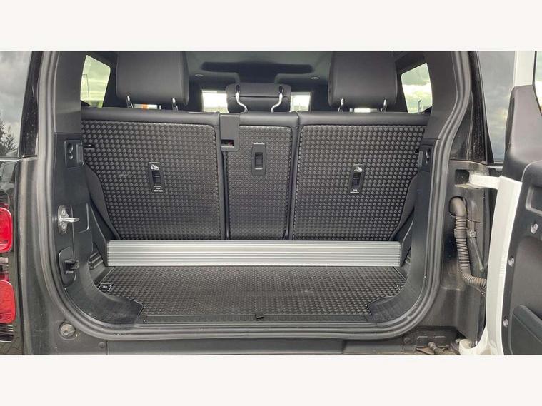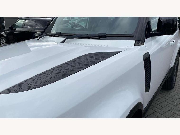 360 degree parking aid, 3D Surround Camera with 360 View, 180 Rear View, Front Traffic Detection, Forward Vehicle Guidance, Tow Hitch Assist and clear sight Ground View, Android Auto, Apple CarPlay, Assisted tailgate with soft close, Blind spot assist, Bluetooth system, Brake pad wear indicator, Clear exit monitor, Connected navigation pro, Driver condition monitor, Electric power assisted steering (EPAS), Lane keep assist, Push button start, Rear traffic monitor, Traffic sign recognition with adaptive speed limiter, Trip computer, Wade Sensing, 8 speed automatic transmission, All wheel drive system, Twin speed transfer box, DAB Radio (Digital Audio Broadcasting), Meridian 400w sound audio system with 11 speakers and subwoofer, Pivi pro connected, Automatic headlight levelling, Automatic headlights, Centre high mounted stop light, Electric heated/power fold door mirrors with approach lights and auto dimming driver side, Electric windows with one touch open/close and anti-trap, Follow me home lighting, Front fog lights, Heated rear window with timer, Heated windscreen, LED tail lights, Panoramic rear side glass, Privacy glass, Puddle lights, Rain sensing windscreen wipers, Rear fog lights, Rear wiper, Side hinged tailgate, Trailer stability assist, X-Dynamic badge, 12V power socket in loadspace, 3 seat bench in 2nd row, Alpine lights, Durable rubber cabin flooring, Durable rubber loadspace flooring, Footwell lights, Loadspace cover, Loadspace Hook, Multifunction steering wheel, Overhead stowage for sunglasses, Premium cabin lighting, Rear headrests, Rear ISOFIX, Rear reading lights, Single front passenger seat, Standard seat configuration, Storage glovebox, Sunvisors with illuminated vanity mirrors, Online pack with data plan - Defender, 5 x 3 point seatbelts, ABS, Brake hold function, CBC - (Cornering brake control), Customer configurable autolock, DSC - Dynamic Stability Control, EBD - Electronic brakeforce distribution, Electric parking brake (EPB), Emergency brake assist, Emergency braking, ESP + traction control, Front airbags with passenger seat occupant detector, HDC - Hill descent control, Hill launch assist, Low traction launch, Remote for (e-Call, Optimised assistance call, InControl app, Climate, beep and flash and door), RSC - Roll stability control, Seat belt reminder, TPMS (Tyre pressure monitoring system), Alarm, Immobiliser, Intrusion sensor, Keyless entry, Locking wheel nuts,