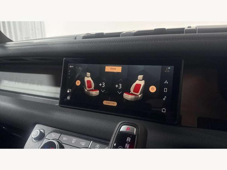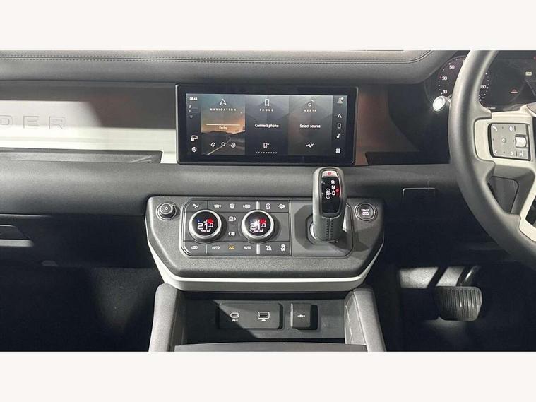 360 degree parking aid, 3D Surround Camera with 360 View, 180 Rear View, Front Traffic Detection, Forward Vehicle Guidance, Tow Hitch Assist and clear sight Ground View, Android Auto, Apple CarPlay, Assisted tailgate with soft close, Blind spot assist, Bluetooth system, Brake pad wear indicator, Clear exit monitor, Connected navigation pro, Driver condition monitor, Electric power assisted steering (EPAS), Lane keep assist, Push button start, Rear traffic monitor, Traffic sign recognition with adaptive speed limiter, Trip computer, Wade Sensing, 8 speed automatic transmission, All wheel drive system, Twin speed transfer box, DAB Radio (Digital Audio Broadcasting), Meridian 400w sound audio system with 11 speakers and subwoofer, Pivi pro connected, Automatic headlight levelling, Automatic headlights, Centre high mounted stop light, Electric heated/power fold door mirrors with approach lights and auto dimming driver side, Electric windows with one touch open/close and anti-trap, Follow me home lighting, Front fog lights, Heated rear window with timer, Heated windscreen, LED tail lights, Panoramic rear side glass, Privacy glass, Puddle lights, Rain sensing windscreen wipers, Rear fog lights, Rear wiper, Side hinged tailgate, Trailer stability assist, X-Dynamic badge, 12V power socket in loadspace, 3 seat bench in 2nd row, Alpine lights, Durable rubber cabin flooring, Durable rubber loadspace flooring, Footwell lights, Loadspace cover, Loadspace Hook, Multifunction steering wheel, Overhead stowage for sunglasses, Premium cabin lighting, Rear headrests, Rear ISOFIX, Rear reading lights, Single front passenger seat, Standard seat configuration, Storage glovebox, Sunvisors with illuminated vanity mirrors, Online pack with data plan - Defender, 5 x 3 point seatbelts, ABS, Brake hold function, Cornering brake control (CBC), Customer configurable autolock, DSC - Dynamic Stability Control, EBD - Electronic brakeforce distribution, Electric parking brake (EPB), Emergency brake assist, Emergency braking, ESP + traction control, Front airbags with passenger seat occupant detector, HDC - Hill descent control, Hill launch assist, Low traction launch, Remote for (e-Call, Optimised assistance call, InControl app, Climate, beep and flash and door), RSC - Roll stability control, Seat belt reminder, TPMS (Tyre pressure monitoring system), Alarm, Immobiliser, Intrusion sensor, Keyless entry, Locking wheel nuts,