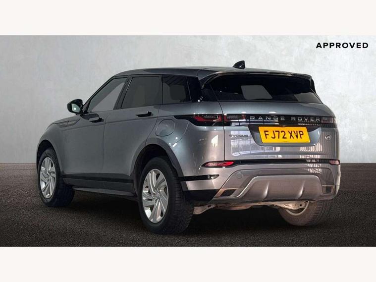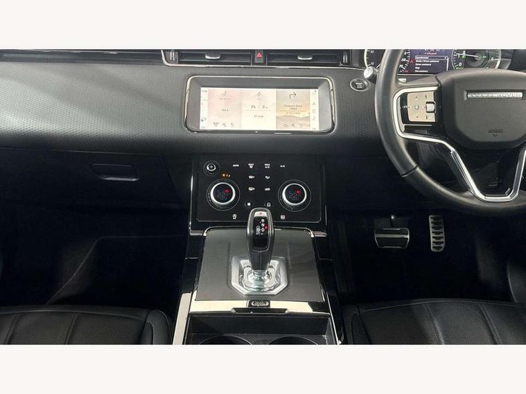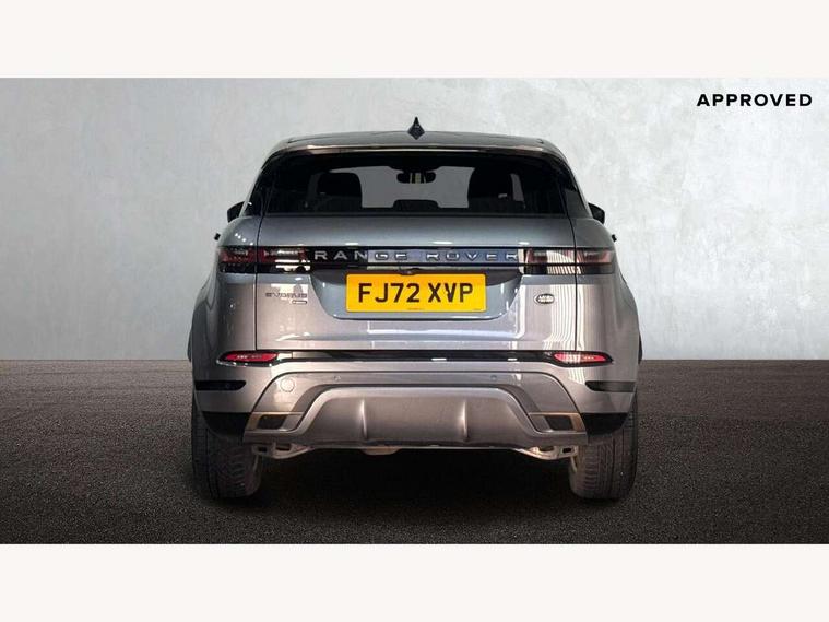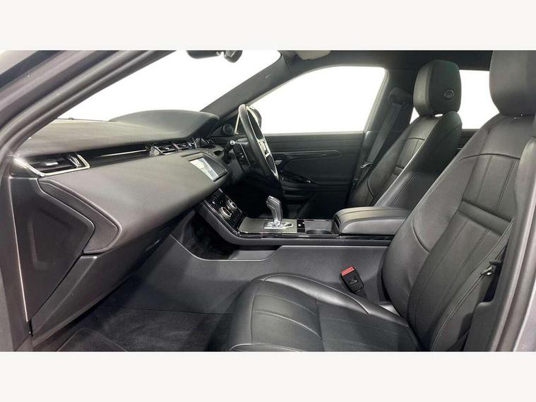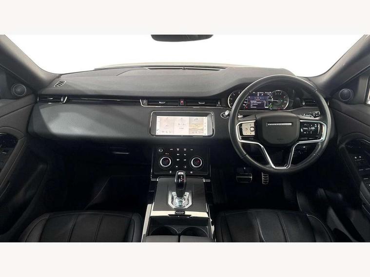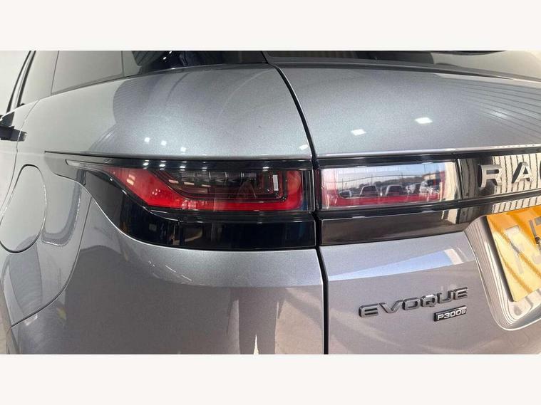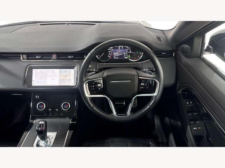 Adaptive cruise control, Android Auto, Apple car play, Bluetooth connectivity, Brake pad wear indicator warning light, Driver condition monitor, eCall emergency system, Electronic power assisted steering (EPAS), Front and rear parking aid, InControl remote, Land Rover InControl apps, Lane keep assist, Pivi pro connected includes upgraded infotainment, connected navigation pro, Nuance speech licence, Push button starter, Traffic sign recognition with adaptive speed limiter, Voice control system, 7 kW onboard charger, All terrain progress control, Electric rear axle drive, Home charging cable, Large fuel tank, Passive suspension, Public charging cable, Terrain Response 2 Auto, Digital Audio Broadcast radio-DAB, Steering wheel mounted controls, Auto headlights, Daytime running lights, Electric windows with one touch open/close and anti trap, Evoque and R-Dynamic badge, Flush deployable exterior door handles, Heated rear window with timer, Heated washer jets, Heated windscreen, P300e badge, Power fold, auto-dimming, heated door mirrors with approach lights and auto dimming driver side, Rain sensing windscreen wipers, Rear fog lights, Rear side wing doors, Rear wiper, Tailgate spoiler, Third brake light, 40:20:40 split folding rear seats with centre headrest and armrest, Ambient interior lighting, Bright metal pedals, Isofix system on outer rear seats, Overhead lighting console, Overhead stowage for sunglasses, Passive front head restraints, Rear air vents, Rear centre headrest, Rear head restraints, Satin chrome gearshift paddles, Single passenger seat, Sunvisors with illuminated vanity mirrors, Twin sliding front centre armrest, 3 rear 3 point seatbelts, Anti-lock braking system (ABS), Customer configurable autolock, DSC - Dynamic Stability Control, Electronic brake force distribution, Electronic parking brake, Electronic traction control, Emergency braking, Front and rear seatbelt reminder, Hill descent control, Hill launch assist, Low traction launch, Power operated child locks, Roll stability control, Six airbags - Driver and passenger airbags/driver knee airbag/front side airbag and curtain airbags, Torque vectoring brake, Tyre pressure monitoring system, Alarm, Immobiliser, Intrusion sensor, Locking wheel nuts,