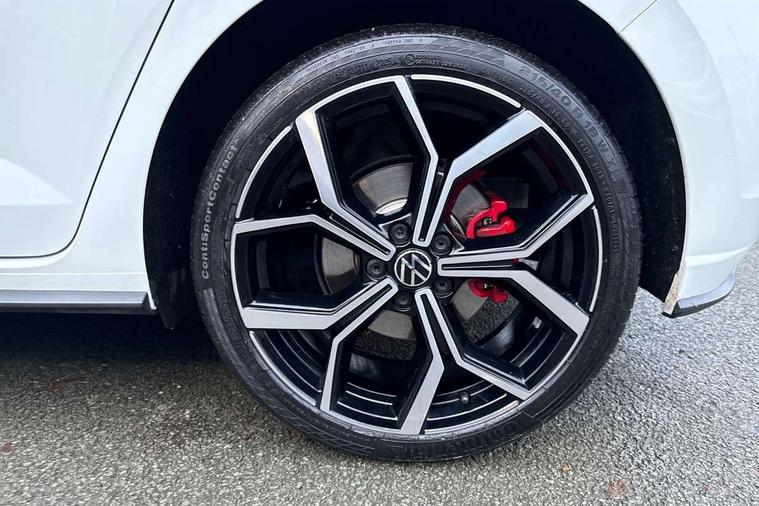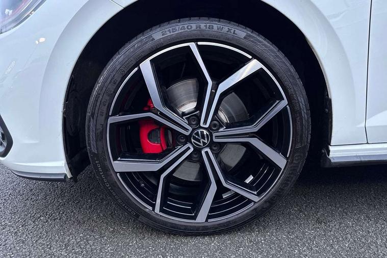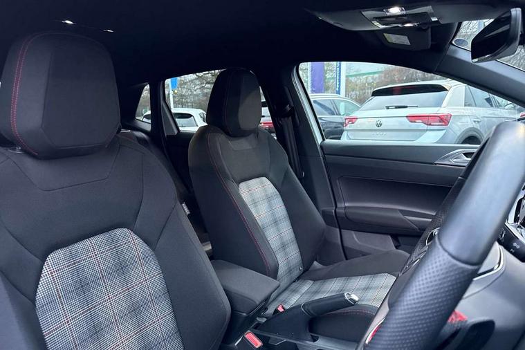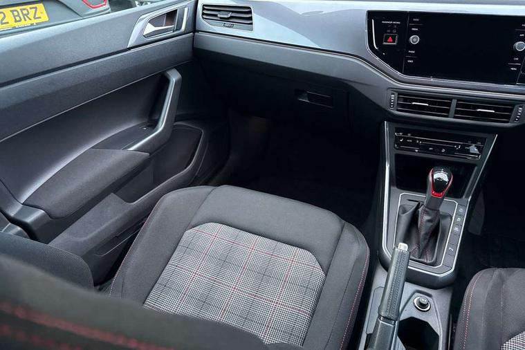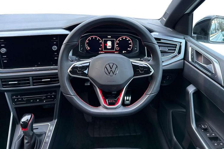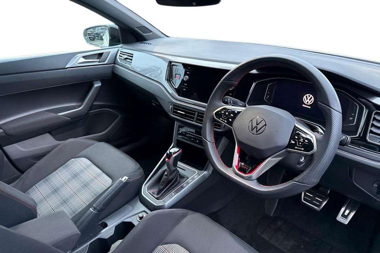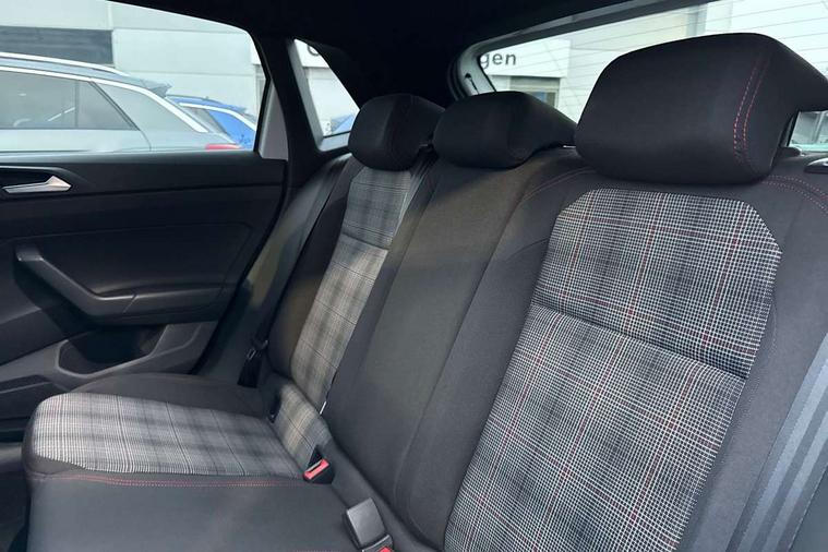 Adaptive cruise control with follow-to-stop and speed limiter, Bluetooth mobile phone interface, Digital Cockpit Pro with 10.25" Display, Driver alert system, Dynamic road sign display, Eco mode, Emergency call service, Power assisted speed sensitive steering, Preparation for We connect and We connect plus, Speedo and rev counter, electronic odometer, trip, service interval display and fuel gauge, Travel Assist - Lane keeping system and traffic jam assist, Travel assist including emergency assist, Trip computer, Warning signal and warning light for front and rear seatbelts not fastened, Washer fluid level indicator, Wireless app connect, Adaptive chassis control, Front wheel drive, Heavy duty rear axle, Rear shock absorpion sports version, Sports select suspension lowered by 15mm, Start-stop system with battery regeneration (recuperation - energy recovery during braking), DAB Digital radio, Diversity antenna for FM reception, Front and rear 6 speakers, Body colour bumpers, Body colour door handles, Electric front windows, Front scuff plates in aluminium with GTI logo, Heat insulating darkened glass in side and rear windows, Heat insulating glass windscreen, Power folding adjustable/heated exterior mirrors and front passenger exterior mirror lowering function, Rain sensor, Rear electric windows, Rear fog light, Rear side wing doors, Rear windscreen washer and wiper with interval delay, Sport bumpers with air intakes with honeycomb structure, Third brake light, Twin chrome exhaust tailpipes, 12V power socket in centre console, 2 USB-C ports in the front, 2 USB-C charging sockets on the center console in the rear, 3 rear head restraints, 60/40 split folding rear seat and rear seat bench not split, Air care climatronic air conditoning system with active combination filter and 2-zone temperature control, Black roof lining, Chrome plated radiator grille inserts, air vent surrounds and light switch surrounds, Door and side trim panel, Driver and front passenger seat height adjustment, Driver/passenger sunvisors with illuminated vanity mirrors, Front + rear carpet mats in recycled material, Front centre armrest, Front footwell illumination, Front seat backrest storage pockets, GTI sports gearshift knob in aluminium leather, Handbrake lever handle in leather, Headliner in recycled material, Isofix child seat preparation easy-fit (for two outer rear seats, and front passenger seat) compatible with I-size, LED interior light with switch off delay and dimmer, 2 reading lights front and rear, Luggage compartment cover, Luggage compartment floor, Luggage compartment lighting, Single front passenger seat, Stainless steel pedals, Standard pedal cluster, Three spoke leather wrapped multifunction sports steering wheel with shifting paddles, IQ LED matrix headlights pack - Polo, Light and sight pack - Polo GTI, 3 point height adj front seatbelts + pretensioners, 3x3 point rear seatbelts, ABS, Driver and front passenger airbag with front passenger airbag deactivation, Drivers and front passengers safety optimised head restraints, ESC (Electronic stability control) + EDL (Electronic Differntial lock) and ASR (Traction control), Extended and predictive pedestrian/ cyclist protection, Front and rear disc brakes with red brake calipers, Front curtain and side airbags with center airbag, Hill hold control, Manual child lock in rear doors, Two tone horn, Tyre pressure loss indicator, Alarm with interior protection, Anti-theft alarm system with interior monitoring, backup horn, and towing protection, Anti-theft wheel bolts, Electronic engine immobiliser, Chrome applications on rotary light, mirror adjustment, window regulator switches, outlet with frame in black, Low rolling resistance tyres,