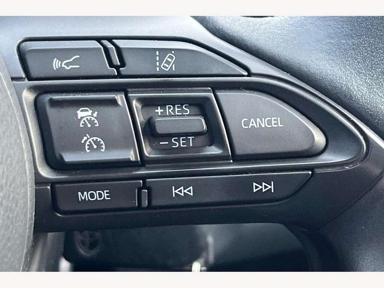 4.2" coloured TFT multi information display with analogue speedometer, Adaptive cruise control, Adjustable speed limit with speed warning, Bluetooth connectivity, E-call, Electric power steering, Hybrid energy display, Multi information display switches on steering wheel, Reversing camera, Smartphone integration with Apple CarPlay and Android auto, Tailgate, Voice recognition, Vehicle Stability Control (VSC), 4 speakers, 7" Multimedia display touch screen, Toyota Touch 2 with DAB, USB connection, Acoustic windscreen glass, Auto windscreen wipers, Automatic headlights, Body coloured door mirrors, Bulb indicators, Chequered front grille, Daytime running lights, Electric adjustable heated door mirrors, Follow me home headlights, Front auto power windows with anti jam protection, Halogen projector headlights, LED High mounted stop lamp, Manual headlight levelling, Rain sensor, Rear side wing doors, Rear spoiler, Rear wiper, Shark fin antenna, Turning signal integrated indicators in door mirrors, Variable front intermittent wipers, 3 adjustable rear headrests, 3 seat bench in 2nd row, 3 spoke leather steering wheel, 60/40 split folding rear seat, Active headrests, Adjustable boot height, Auto air conditioning, Coat hooks in rear grab handles, Cup holders (2 front & door), Data Communication Module (DCM) connected services, Fabric upholstery, Front armrest, Glovebox, Grey roof lining, Height adjustable driver's seat, Isofix seat fixing, Leather gearshift, Pollen filter, Shopping bag hooks, Single front passenger seat, Tilt/telescopic steering column, 3 point seatbelts on all rear seats, ABS+EBD+Brake assist, Electronic parking brake, Emergency brake light system (EBS), Front passenger airbag on/off switch, Front seatbelt reminder, Hill start assist control (HAC), Rear child proof door locks, Rear seat belt reminder, Supplemental Restraint System (SRS) 8 airbags: Driver & passenger's airbags, dual side curtain airbags, side impact airbags, front centre airbag, Toyota Safety Sense 2, Precollison + Night time Pedestrian & Cyclist Detection, Lane Trace Assist, Auto High Beam, Intelligent ACC & Road Sign Assist, Tyre pressure warning system, 2x Master key, Alarm/immobiliser, Remote powered central double locking doors, Soft touch instrument panel, Space saver spare wheel,