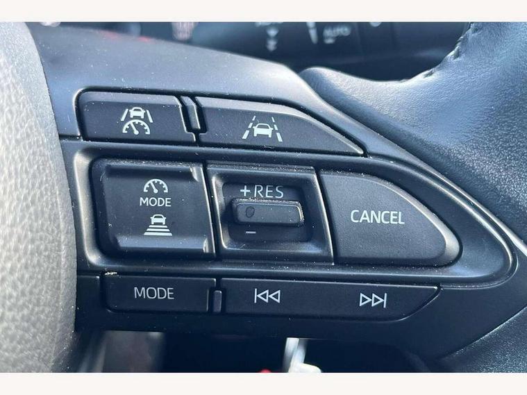 4.2" coloured TFT multi information display with analogue speedometer, Adaptive cruise control, Adjustable speed limit with speed warning, Bluetooth connectivity, E-call, Electric power steering, Hybrid energy display, Multi information display switches on steering wheel, Reversing camera, Smartphone integration with Apple CarPlay and Android auto, Smartphone integration with Apple CarPlay/Android Auto, Tailgate, Voice recognition, Vehicle Stability Control (VSC), 4 speakers, 9" Multimedia touch display, Toyota Touch 3 system with DAB radio, USB connection, Acoustic windscreen glass, Auto windscreen wipers, Automatic headlights, Body coloured door mirrors, Bulb indicators, Chequered front grille, Daytime running lights, Electric adjustable heated door mirrors, Follow me home headlights, Front auto power windows with anti jam protection, Front halogen fog lights, Halogen projector headlights, LED High mounted stop lamp, Manual headlight levelling, Rain sensor, Rear auto power windows with anti jam protection, Rear side wing doors, Rear spoiler, Rear wiper, Shark fin antenna, Turning signal integrated indicators in door mirrors, Variable front intermittent wipers, 3 adjustable rear headrests, 3 seat bench in 2nd row, 3 spoke leather steering wheel, 60/40 split folding rear seat, Active headrests, Adjustable boot height, Auto air conditioning, Coat hooks in rear grab handles, Cup holders (2 front & door), Data Communication Module (DCM) connected services, Fabric upholstery, Front armrest, Glovebox, Grey roof lining, Height adjustable driver's seat, Isofix seat fixing, Leather gearshift, Pollen filter, Shopping bag hooks, Single front passenger seat, Tilt/telescopic steering column, 3 point seatbelts on all rear seats, ABS+EBD+Brake assist, Electronic parking brake, Emergency brake light system (EBS), Front passenger airbag on/off switch, Front seatbelt reminder, Hill start assist control (HAC), Rear child proof door locks, Rear seat belt reminder, Supplemental Restraint System (SRS) 8 airbags: Driver & passenger's airbags, dual side curtain airbags, side impact airbags, front centre airbag, Toyota Safety Sense 3 with over the air updates, Tyre pressure warning system, 2x Master key, Alarm/immobiliser, Remote powered central double locking doors, Soft touch instrument panel, Space saver spare wheel,