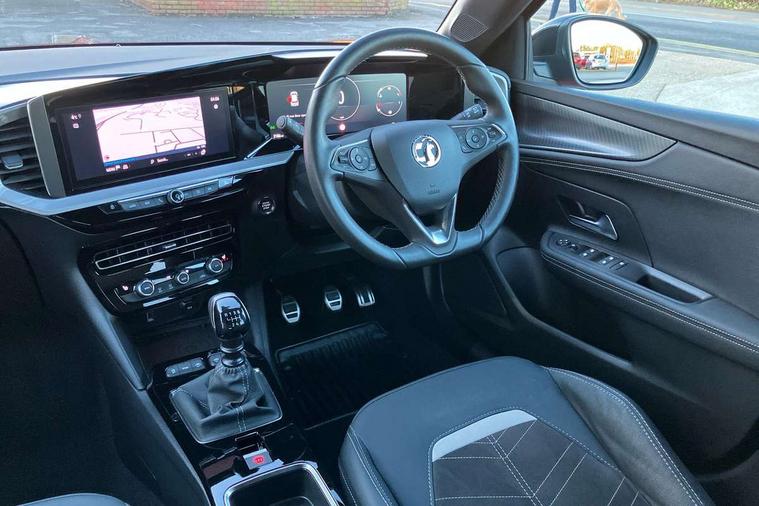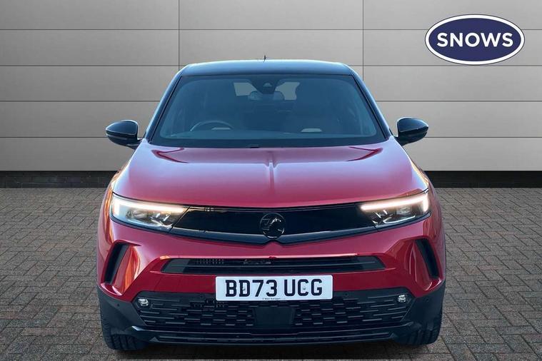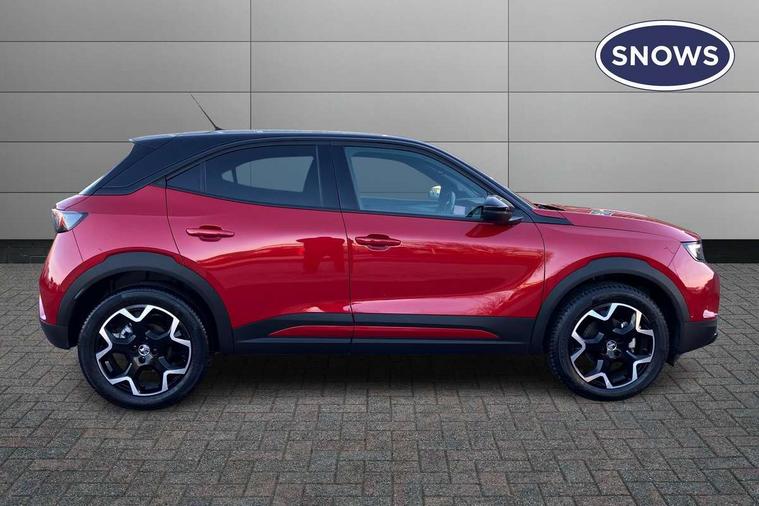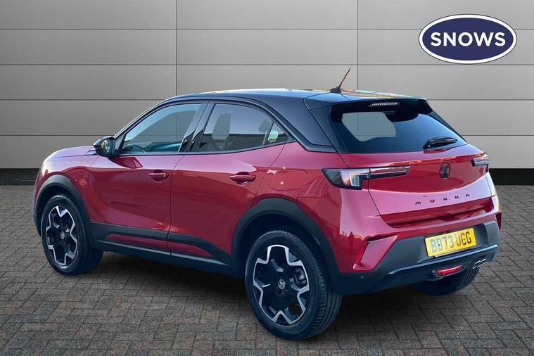 12" digital instrument cluster, Adaptive cruise control with speed limiter, Digital instrumentation with digital speedometer, rev counter, fuel and water temperature gauge, Driver drowsiness alert system, Driver information display with multi function trip computer, audio info, digital clock and outside air temperature with ice warning function, Engine start/stop button, EV information display, Extended traffic sign recognition, Front and rear parking distance sensors, Front camera and radar system, Gearshift up/down indication light, Lane keep assist system (LAS) with Lane departure warning system (LDWS), Lights on audible warning, Panoramic rear view camera, Power assisted speed sensitive steering, RDS with traffic programme, Side blind spot alert and flank guard, Smartphone integration compatible with Apple CarPlay and Android Auto, Sports switch with engine sound enhancement, Start/stop system, Vauxhall connect with e-Call, Wireless charging for smartphone, 6 speed manual transmission, 6 speakers, AM/FM stereo radio with 36 station presets, DAB Digital radio, Flexible Roof Mounted Radio Aerial, Front USB connection, Mobile phone portal - bluetooth connect, vehicle microphone, handsfree calls, SMS read out and reply, phone book access, Multimedia Navi Pro with 10" colour touchscreen, Steering wheel mounted controls, Two rear USB sockets, Adaptive brake lights, Auto high beam assist, Automatic headlamp levelling, Automatic lighting control with tunnel detection, Automatically dimming anti dazzle rear view mirror, Black door mirror housings, Black front and rear bumper inserts, Black Griffin logo and vizor frame, Black upper window moulding, Body colour door handles, Body colour front and rear bumpers, Dark tinted rear side windows + tailgate window, Electric adjustable/heated/folding door mirrors + puddle lights, Electrically operated front and rear windows with safety auto reverse and one touch up/down facility, Hazard warning lights, Heated rear window+rear wash/wipe, Integrated black tailgate spoiler, IntelliLux Matrix LED headlights with adaptive forward lighting, LED 3rd brake light, LED daytime running lights, LED front fog lamps, LED side repeat indicators, LED tail lights, Rear foglight, Rear side wing doors, Reversing light, Solar heat absorbing windscreen and windows, Two speed rain-sensitive windscreen wipers with variable intermittent wipe, Windscreen and side window demist vents, 12V Accessory socket, 3 seat bench in 2nd row, 3 spoke flat bottomed leather effect steering wheel with satin chrome effect bezel, 4 speed fan with illuminated controls, 4 Way driver seat with lumbar and massage function, 6 way manual adjustable driver fore/aft, up/down with reclining seatback, 6 way manual adjustable front passenger fore/aft, up/down with reclining seatback, 60/40 split folding rear seat, Air recirculation system, Alcantara/leather upholstery, Black headliner, Cabin particulate filter - removes dust, airborne particles and pollen, Centre console with two cup holders at front and one in rear, Chrome effect interior door handles, Door pockets with two litre capacity, Driver and passenger sun visors with vanity mirror, Electronic climate control (ECC), Four adjustable facia vents, Four load restraint lashing eyes, Front centre armrest with storage, Front head restraints, Front map reading lights, Front seat back storage pockets, Fully carpeted load area, Heated front seats, Heated steering wheel, Interior courtesy light, Interior tailgate handle, Luggage compartment cover, Luggage compartment lighting, Movable boot floor, Reach + rake adjustable steering column, Single front passenger seat, Three height adjustable rear seat head restraints, Twin gas assisted tailgate struts, Black Pack with badge - Mokka, 2x Isofix child seat fitting on outer rear seats, 3x3 point rear seat belts, Anti-lock braking system (ABS), Child proof locks on rear doors, Cornering brake control, Deactivation switch for front passenger front and side impact airbags, Drag torque control, Driver and front passenger airbags, front seat side impact airbags, full size curtain airbags, Electronic brake force distribution, Electronic Stability Programme (ESP), Emergency brake assist, Enhanced automatic emergency braking with pedestrian detection, Forward collision alert at all speed, Hill start assist, Inertia reel lap and diagonal seatbelts for all seats, Seatbelt unfastened audible warning and warning light, Straight line stability control, Traction control, Tyre pressure monitoring system, Electronically protected audio equipment, Engine deadlock immobiliser, Freewheeling door locks, Key left in ignition audible warning, Keyless entry and start, Locking wheel nuts, Remote control central locking, Remote control ultrasonic security alarm system, Visible vehicle identification number, Atlantis black trim inserts of front doors, Black facia with silver trim insert, Instrument panel bar in polar silver, Light grey trim inserts on front doors, 18" bi colour alloy wheels,