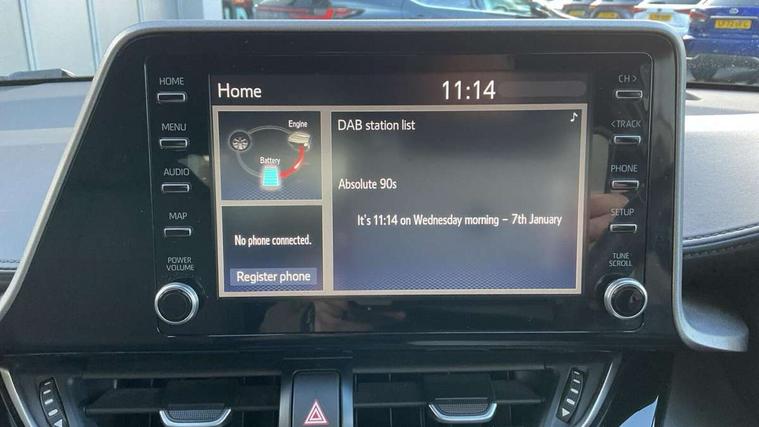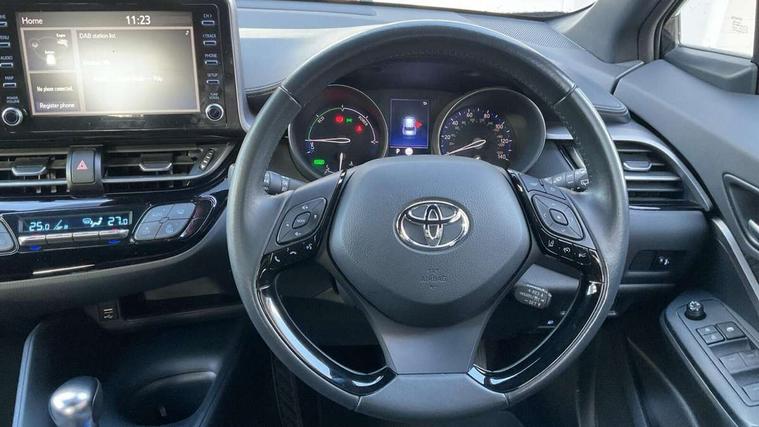 4.2" coloured TFT screen for multi-information display, Adaptive cruise control, Bluetooth connectivity, E-call, Electric power steering, Hybrid system indicator, Lane departure alert with steering control, Lane trace assist, Push button start, Push button tailgate release, Remote boot door release in cabin, Remote boot door release in key, Reversing camera, Road sign assist - RSA, Smart voice assist, Trip computer, Voice recognition, Vehicle Stability Control (VSC), 6 speakers, AM/FM radio, DAB Radio (Digital Audio Broadcasting), Toyota touch 2 multimedia system with 8" display, USB connector, Wi-fi connectivity, Anti-jam protection on power windows, Auto high beam, Auto up and down function on all power windows, Automatic headlights, Automatic headlights cut-off, Black and body coloured rear bumper, Black lower front grille, Black upper front grille, Body colour door handles, Body colour door mirrors, Body colour front spoiler lip, Body coloured front bumper, Boot door release with push button, Electric heated door mirrors, Follow me home headlights, Front and rear power windows, Front fog lights, Headlight cut off reminder, Honeycomb lower front grille, LED daytime running lights, LED High mounted stop light, LED rear brake lights, LED rear combination lights, Manual headlight levelling, Manually retractable door mirrors, Noise reduction layer on front windows and windscreen, Power adjustable door mirrors, Rear side wing doors, Rear spoiler, Rear tailgate, Rear window defogger, Rear window wiper, Reflective LED headlights, Shark fin antenna, UV-filter on driver and passenger windows, UV-filter on rear windows, 12v power outlet - front, 3 rear headrests, 3 seat bench in 2nd row, 3 spoke leather steering wheel, 60/40 split folding rear seat, Adjustable rear headrests, Adjustable speed limiter switch on steering wheel, Assist grips front and centre pillar, Audio and telephone switches on steering wheel, Black front door assist grips, Boot light, Chrome interior door handles, Cloth upholstery, Driver and front passenger personal light, Driver and front passenger Whiplash Injury Lessening seats, Dual zone automatic air conditioning, Floor mats, Front cupholders, Front head restraints, Front sports seats, Glovebox with internal light, Hard tonneau cover, Hooks for luggage holding net, Humidifying Nanoe air purifier, Illuminated entry system, Isofix attachments on outer rear seats, Leather gearshift, Light on driver sun visor, Light on passenger sun visor, Manual telescopic steering wheel, Manual tilt steering wheel, Manually adjustable lumbar support on driver seat, Manually height adjustable driver seat, Manually height adjustable front passenger seat, Manually reclining driver seat, Manually reclining front passenger seat, Manually sliding driver seat, Manually sliding front passenger seat, Microphone on front personal light, Mirror on driver sun visor, Mirror on passenger sun visor, Multimedia switches on steering wheel, Pollen filter, Shopping bag hooks, Single front passenger seat, Slow opening on lower glovebox, Voice recognition switch on steering wheel, 16 Disk front wheel brake, 3x3 point rear seatbelts, ABS+EBD+Brake assist, Electronic parking brake, Front and rear seatbelt reminder, Front passenger airbag on/off switch, Hill start assist control (HAC), Pre collision system with pedestrian detection, Pre-tensioners and force limiters, Rear door child safety locks, SRS Airbags - Driver + Front passenger, front side, front and rear curtain and driver's knee airbags, Toyota safety sense, Tyre pressure monitoring system, Tyre pressure warning system, Acoustic vehicle alert system (AVAS), Glass-breaking alarm sensors, Immobiliser, Intrusion alarm, Intrusion sensor, Motion sensor alarm, Power door locks, Power passenger window lock, Remote central locking, Black lower dashboard, Black upper dashboard, Grey deco line on upper dashboard, Matte black centre console, Tyre repair kit,