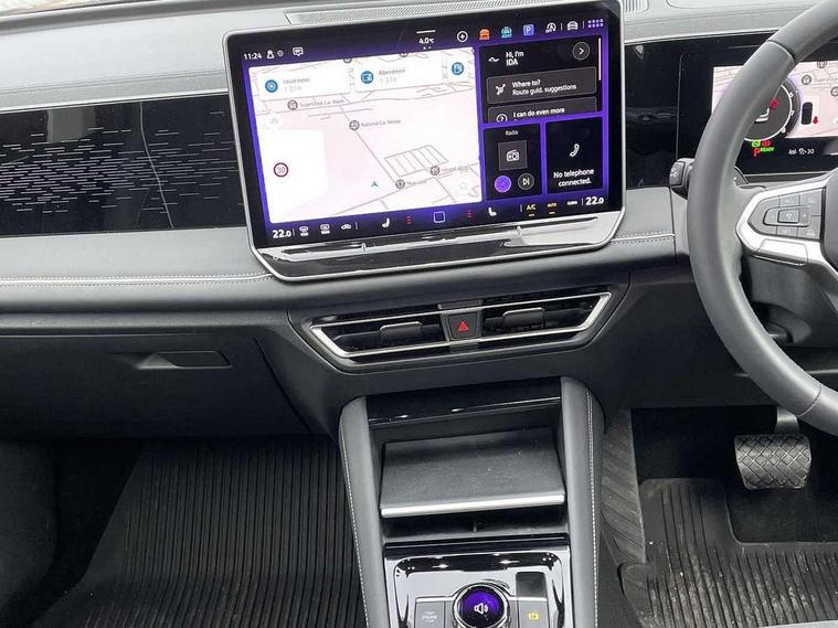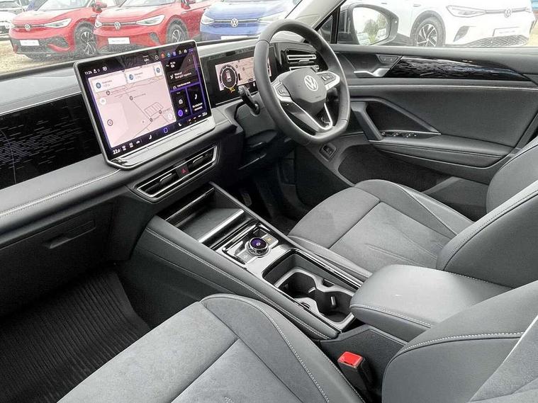 Adaptive cruise control ACC including speed limiter, Advanced driver attention and drowsiness monitor, App-Connect incl. App-Connect Wireless for Apple CarPlay and Android Auto, Area view camera [PAV], Bluetooth phone integration system, Comfort drive travel assist, Digital Cockpit Pro - 10.25" high resolution dash display screen with customisable menus and information, Dynamic road sign display, E-Sim card for online connectivity, eCall emergency call service, eCall emergency call system, Extended safety system (proactive passenger protection system), Full electric tailgate operation, Head up Display, Inductive smartphone charging without external antenna connection, Lane change system, Side assist, Rear traffic alert and Exit warning system, Lane keeping system Lane Assist, Multifunction front facing camera, Navigation system, Oncoming vehicle braking when turning including swerve support, Park assistance plus with front and rear parking sensors, Power assisted steering with speed sensitive, Rear view camera, Rev counter, Service interval indicator, Speed limit display, Start/stop system with regenerative braking, Trip computer, Voice control and enhancer, Warning signal and warning light for front and rear seatbelts not fastened, Wireless App-Connect, Front wheel drive, 15" Infotainment display, 8 Speakers, DAB radio, Diversity antenna for FM reception, Ambient lighting with logo projection, Auto dimming interior rear view mirror, Automatic headlight control system, Body colored bumpers in R-Line style, Body colour door handles, Body coloured door mirrors with integrated indicators, Chrome moldings on the side windows, Coming/leaving home lighting function, Dynamic headlight range control with dynamic cornering light, Exterior mirrors power folding, auto-dimming on drivers side with surround lighting and memory feature, Front and rear electric windows, Heat insulating darkened glass in side and rear windows, Heated windscreen washer jets, High Beam Assist, automatic sensing for switching between dipped and main beam, High level 3rd brake light, High-resolution matrix beam plus digital projection, Highway light, Illuminated door handle recesses, Illuminated lightline between headlamps and illuminated door handle recesses, IQ.Light - HD matrix headlamps with poor weather light, entry and exit lighting, Laminated safety glass from B-pillar backwards 90% tinted, Laminated safety glass windshield, heat and sound insulating, LED rear lights with welcome farewell lights with illuminated Volkswagen Logo, LED separate daytime running light, Rear fog light on one side, reversing light on both sides, Rear side wing doors, Rear wiper, Remote electrically foldable door mirrors, puddle lights and reverse activated passenger's door mirror, Silver roof rails, 12V outlet in center console rear and in luggage compartment, 12V socket in centre console, 2 USB-C ports in the front, 2 USB-C charging sockets on the centre console in rear, charging capacity up to 45 W, 3 bench rear seats in 2nd row, 3 rear headrests, 30 colours options interior ambient lighting, Air Care Climatronic 3 zone automatic climate control with enhanced air filter and controls in the rear, Carpet mats, front and rear, Centre console with illuminated storage compartment with sliding cover and two drinks holders, Door and side trim panel with leatherette insert, Door sill protectors, Drivers seat with manual adjustment of seat travel and height and backrest angle with thigh support longitudinally sliding, Front centre armrest, Front massage seats, Front sports comfort seats, Heated front seats, Heated steering wheel, Height adjustable front seats, ISOFIX anchors for child seats on outer rear seats and front passenger seat compatible with i-Size, Leather wrapped multifunction steering wheel with paddle shift, Mechanical rear seat release, Power adjustable lumbar support in front, Rear bench seat asymetrically split folding, longitudinally movable and folding with load-through hatch and center armrest, Safety optimised front head restraints, Single front passenger seat, Sun visors with illuminated vanity mirrors, Variable luggage compartment floor, 3 point seat belt for centre rear seats, 3 Point seat belts in front with pretensioners, 3 point seatbelts in outer rear with ECE label, Autonomous emergency braking front assist with pedestrian and cyclist monitoring, Driver/Front Passenger airbags, Electronic parking brake with auto hold, Front disc brakes, Front passenger airbag deactivation, Manual rear child locks, Rear disc brakes, Two tone horn, Tyre pressure loss indicator, Warning triangle, Anti theft alarm system with interior monitoring, backup horn and towing protection, Anti theft wheel bolts, Central locking system keyless entry, Chrome elements on the mirror switch and power window switches, door pulls interior door handle in matte chrome, Decorative inserts Cross in dash and front door panels, Tool kit for tyre mobility set,