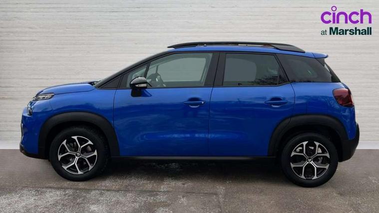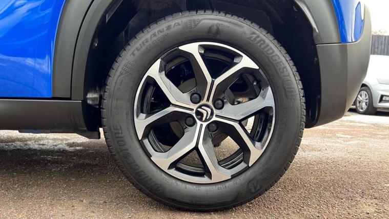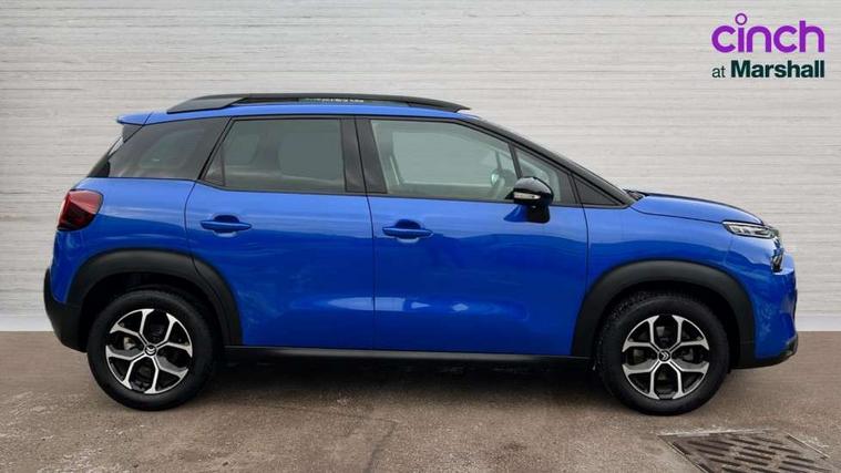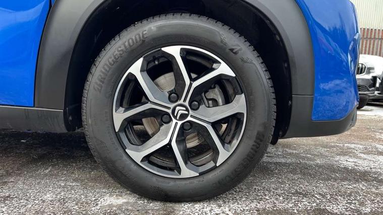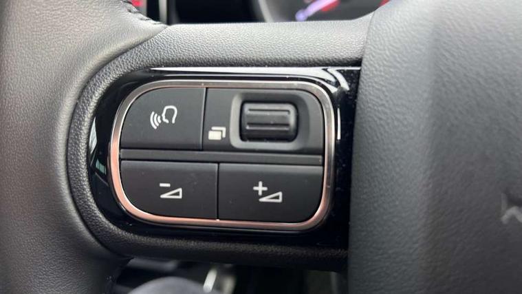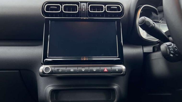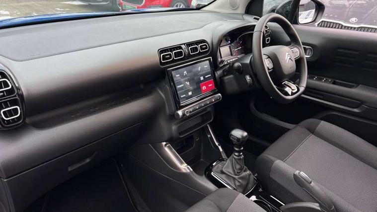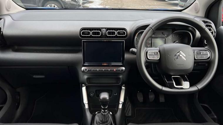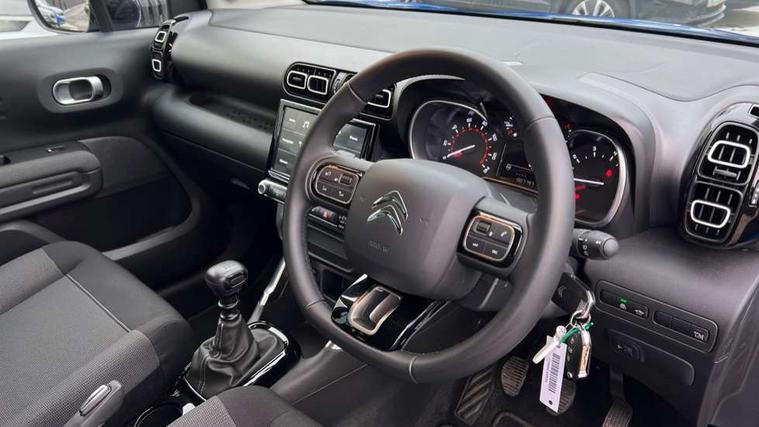 9" Touchscreen display, Citroen connect box emergency and assistance system, Citroen Connect Nav with 3D navigation, Coffee Break Alert, Cruise control with speed limiter, Driver instrument cluster including trip computer and rev counter with white text LCD display and white needles and chrome decor, eCall emergency call system, Engine start button, Lane departure warning system, Mirror screen with Apple CarPlay and Android auto, Outside temperature sensor, Rear parking sensors, Tailgate, Traffic signs and speed limit recognition and recommendation, Variable assistance power steering, Voice recognition for radio, navigation and telephone features, Bluetooth hands free and media streaming with USB socket, Citroen connected DAB radio with 6 speakers, Steering wheel mounted controls for stereo and telephone, 3D effect LED rear lights, Automatic Eco LED headlights, Automatic lights and windscreen wipers, Black roof bars, Body colour painted door handles, Chrome chevrons front grille, Electric front windows + one touch + anti-pinch, Electric rear windows with one touch/anti-pinch, Electrically adjustable door mirrors, Electrically folding door mirrors, Front and rear body coloured bumpers, Heated door mirrors, Integrated roof spoiler, LED daytime running lights, LED third brake light, Rear side wing doors, Rear wiper, Roof aerial, Tinted rear windows and rear quarterpanel glass, Variable front intermittent wipers, 12V socket in front, 60/40 split folding rear seat, Automatic air conditioning, Boot light, Centre console with open storage, Driver and front passenger cup holders, Driver and passenger sunvisor with courtesy mirror, Flex load/Pull out boot floor, Front and rear courtesy reading lights, Front and rear door storage, Front head restraints, Glovebox with closable lid, Height adjustable driver's seat, Height and reach adjustable steering wheel, Leather steering wheel with satin chrome inserts and radio controls, Manual handbrake with chrome insert, Passenger compartment headlight adjustment, Rear isofix mounting points (outside seats) with top tether, Row 2 - Three seats with individually adjustable head rests, Satin chrome interior door handles, Single front passenger seat, Gloss black colour pack - C3 Aircross, 3 point, height adjustable, pre tensioned front seatbelts, ABS with Electronic brakeforce distribution and Emergency braking assistance, Automatic illumination of hazard warning lights, Curtain airbags, Driver airbag, Drivers/passengers and rear seats unfastened seat belt warning, ESC (Electronic Stability Control), Front lateral airbags, Front passenger airbag, Front passenger airbag deactivation switch, Hill start assist function, Mono-tone horn, Rear door child safety locks, Three 3 point rear seatbelts, Tyre pressure monitor, Automatic door and boot locking when moving off with automatic unlocking in case of impact, Automatic locking of the vehicle (after 30 seconds if door or boot unopened), Immobiliser, Perimetric and volumetric anti theft alarm, Remote central locking + deadlocks, Vehicle locater function (headlights illuminate when button on key pressed), 16" X Cross diamond cut alloy wheels,