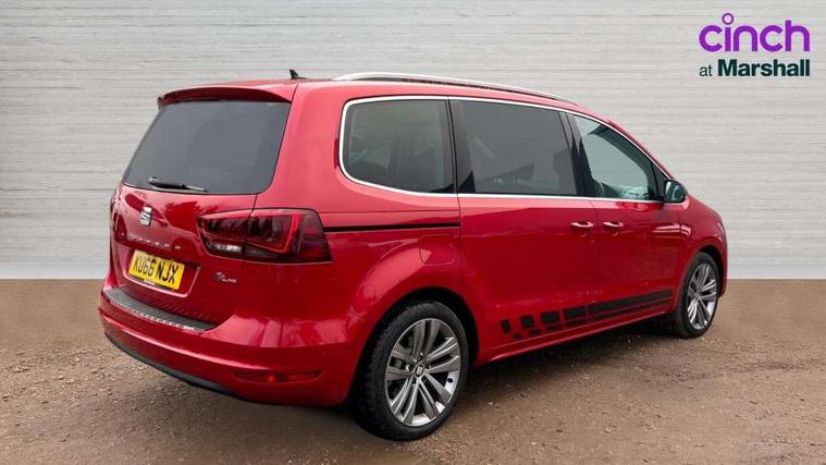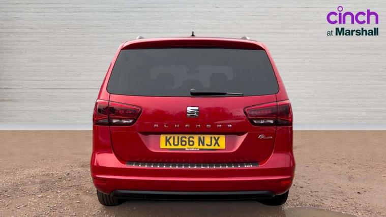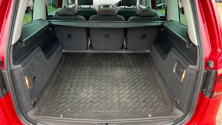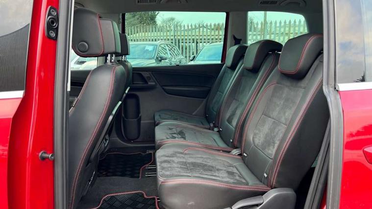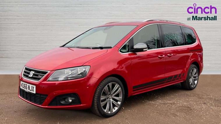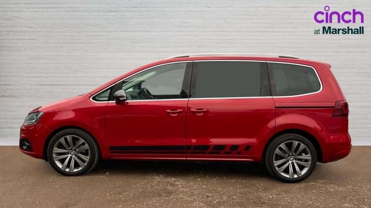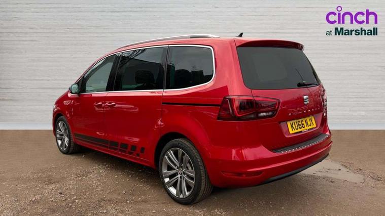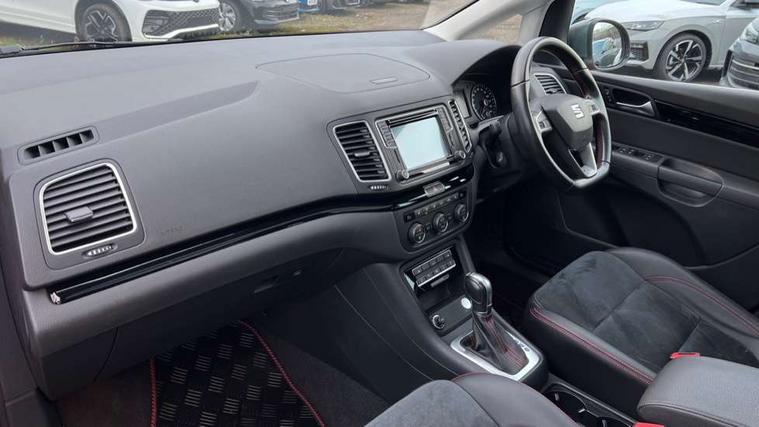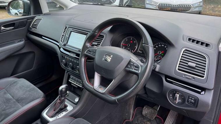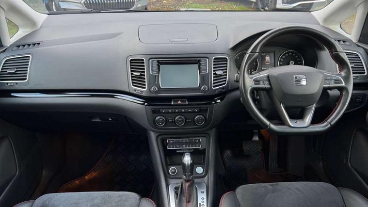 Cruise control, Driver alert system, Electric speed sensitive power steering, Front and rear parking sensors, Low fuel warning light, Multi function display, Outside temperature gauge, Stop/start system, Trip computer, Voice control system, Diesel particulate filter, Electronic limited slip differential, Sports suspension, 6.5" touchscreen, 8 Speakers, Auxiliary input socket, Bluetooth audio streaming, MDI with USB/iPod connection cables, MP3 compatible radio/single CD player, 'Guide me home' headlamps, Atom grey door mirrors, Auto dimming rear view mirror, Automatic lights on sensor, Automatic rain sensing wipers, Body colour bumpers, Body colour door handles, Chrome roof rails, Chrome side window trim, Chromed centre radiator grille surround, Cornering front fog lights, Dark tinted rear glass, Electric folding door mirrors with puddle lamps, Electric headlight adjustment, Electric heated + adjustable door mirrors, Electric tailgate and sliding rear side doors, Electric tilt/slide panoramic sunroof, Front and rear electric windows, Heated washer nozzles, High beam assistant, LED tail lights, Rear wiper, Reverse activated kerb-view adjustment on passenger's door mirror, 230V AC inverter, 3 spoke flat bottomed leather steering wheel, 3 x 12V power sockets, 3 zone climate control, 4 cupholders, 4 Lashing eyes in boot, Adjustable front armrest with storage compartment, Adjustable head restraints, Alcantara/leather upholstery with red stitching, Comfort front sports seats, Dashboard storage with cover, Driver's electric adjustable lumbar support, Driver's seat memory, Easy entry seats, Electric sunshade for sunroof, Floor mats with red piping, Folding rear seats, Front seat and rear pockets, Front seat back fold out tables with cupholders, Front/rear door stowage bins, Front/rear reading lights, Heated front seats, Height/reach adjust steering wheel, Integrated sunblind for rear side windows, Isofix child seat preparation, Leather gear knob, Lockable/illuminated air conditioned glovebox, Multi function steering wheel, Overhead console with sunglasses holder, Passenger seat lumbar adjust, Rear air conditioning with separate controls, Reclining 2nd row seats, Removable load compartment cover, Steering column mounted gear shift paddles, Storage bins under drivers seat, Storage under front passenger seat, Sunvisors with illuminated vanity mirrors, Under floor storage in 2nd row, Seat navigation pack with rear view camera - Alhambra, 3 point seatbelts on all seats, ABS, Auto hold function, Automatic post collision braking, Driver and passenger airbags, Drivers knee airbag, Electrically operated child locks on rear doors, Electronic parking brake, Electronic stability control, ESP+EBA, Front and rear curtain airbags, Front and rear seatbelt reminder, Front side airbags, Height adjustable front seatbelts with pre-tensioners and load limiters, Passenger airbag deactivate switch, Tiredness recognition system, Tyre pressure monitoring system, Electronic engine immobiliser, Locking wheel bolts, Remote central locking + deadlocks, Volumetric alarm with back up horn, Black door & dashboard decorative inserts, Chrome effect dashboard facia, 18" Akira alloy wheels in atom grey, Self sealing tyres,