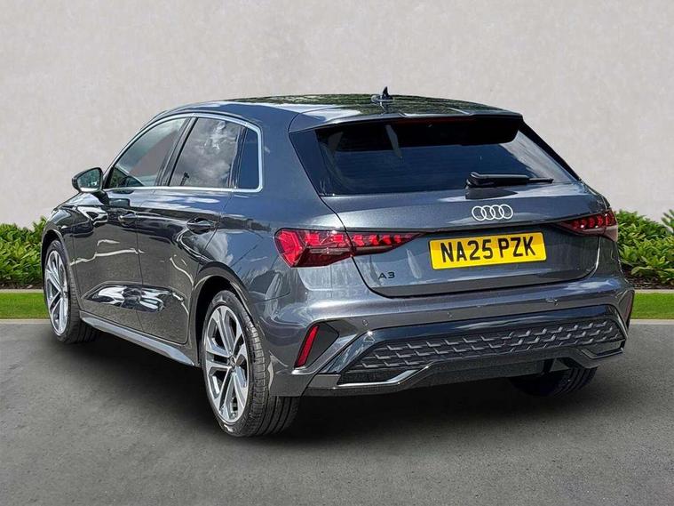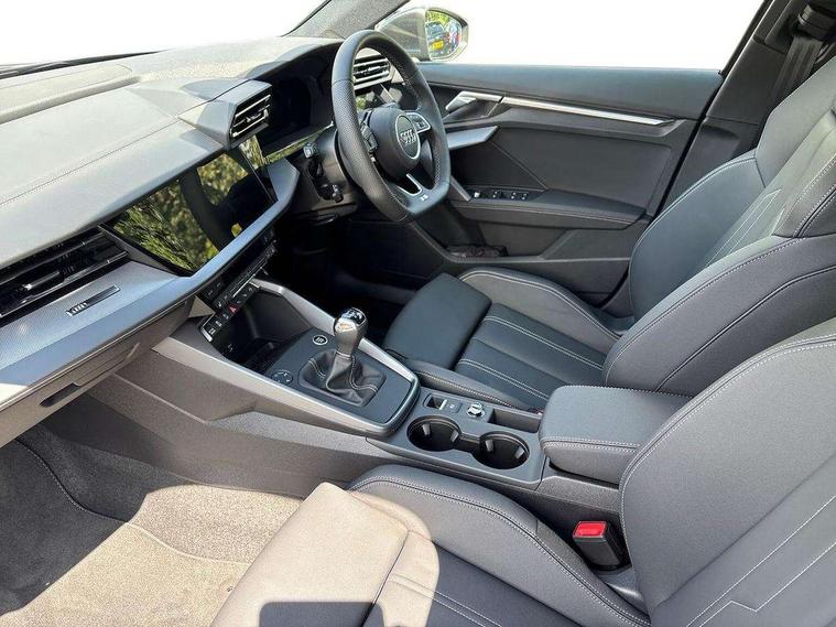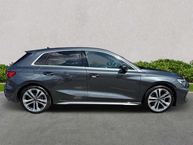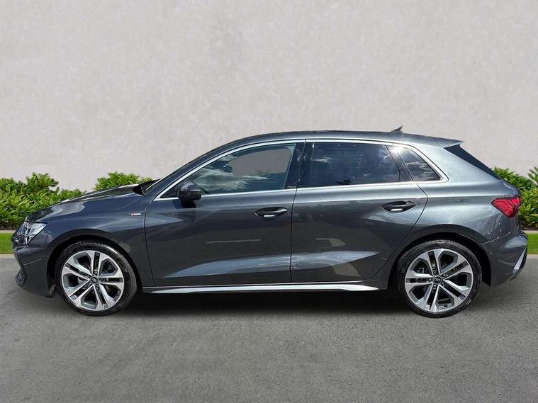 Adjustable speed limiter, Audi drive select, Audi smartphone interface with app store includes wireless Apple carplay, Android auto and Amazon alexa integration, Audi virtual cockpit plus - 12.3" full HD resolution dynamic digital instrument cluster, Automatic start/stop system with recuperation, Bluetooth interface, Camera based traffic sign recognition, Collision avoidance assistant, Cruise control, Distraction and Fatigue warning, e-Call (emergency call), Electromechanical power speed sensitive steering, Lane departure warning system, MMI Navigation Plus with high resolution 10.1" colour touch screen display, Park Assist with parking system Plus, Service indicator, Tailgate, Trip computer, Voice control system with natural language interaction, Sports suspension, Audi Phonebox light with wireless charging, Audi sound system - 10 loudspeakers including centre loudspeaker and subwoofer, DAB Digital radio, USB ports with charging function in the rear, Acoustic glass windscreen, All weather light, Aluminium window trim, Auto dimming frameless rear view mirror, Automatic dynamic range control, Body colour exterior mirrors, Chrome exhaust tailpipes, Dipped beam, main beam, position light and turning light, Electrically adjustable/heated/folding/auto dimming door mirrors with integrated LED indications + kerb view function for passenger side, Exterior model badging, Front and rear side air inlets in grained matt black with dark liquid chrome frame, Front electric windows, Front radiator grill in high gloss dark chrome, Heat insulating glass windscreen, Illuminated door sills with aluminium inserts at the front with S logo, Intersection light, LED 3rd brake light, LED brake lights, LED daytime running x3, LED headlights with LED rear lights and dynamic rear indicators, LED rear number plate lights, LED reverse light, LED tail lights, Light and rain sensors, Manoeuvring light, Motorway light, Privacy glass - dark tinted rear window, rear door and side windows, Rear diffuser and grill in grained matt black with inlay in dark liquid chrome, Rear electric windows, Rear side wing doors, Rear wiper, S line bumpers, S roof spoiler, Side S line emblems on front wings, Side sill trim in dark liquid chrome, Static cornering light, 12V socket and storage compartment in front centre console, 3 seat bench in 2nd row, 3 spoke flat bottomed multi-function leather sport steering wheel, 3-zone deluxe automatic air conditioning, 4 way electrically adjustable lumbar support for driver and front passenger, 40/20/40 split folding rear seat bench, Black cloth headlining, Black front and rear floor mats, Front and rear centre armrest in artificial leather with contrasting stitching on armrests and instrument panel, Front and rear headrests, Heated front seats, Height and reach adjustable steering wheel, Manual boot compartment lid, Manually adjustable front seats, Rear centre armrest with cupholder, S badging on the steering wheel, Seat side bolsters, Single front passenger seat, Stainless steel pedals and front footrest in black, Twin leather upholstery with front sports seats S embossed logo, Aluminium interior elements pack - A3, Multi-coloured LED interior lighting package with Multi-coloured contour lighting of instrument panel - A3, 3x3 point rear seat belts, Driver and front passenger airbag with passenger airbag deactivation, Electronic Stabilisation Control (ESC) including ABS, ASR and EDL, First aid kit with warning triangle and 2 safety vests, Front side airbags with head airbags and interaction airbag, Hill hold assist, Pre-sense front with pedestrian and cyclist detection, Seatbelt monitoring, Tyre pressure loss indicator, Anti theft alarm, Anti-theft wheel bolts, Electronically operated child locks, Immobiliser, Remote central locking with safelock, Black dashboard, Inlay in dark aluminium spectrum,