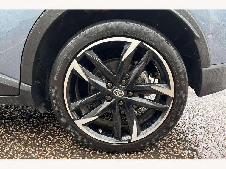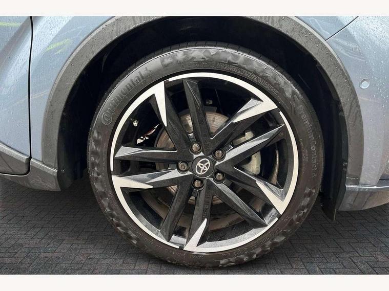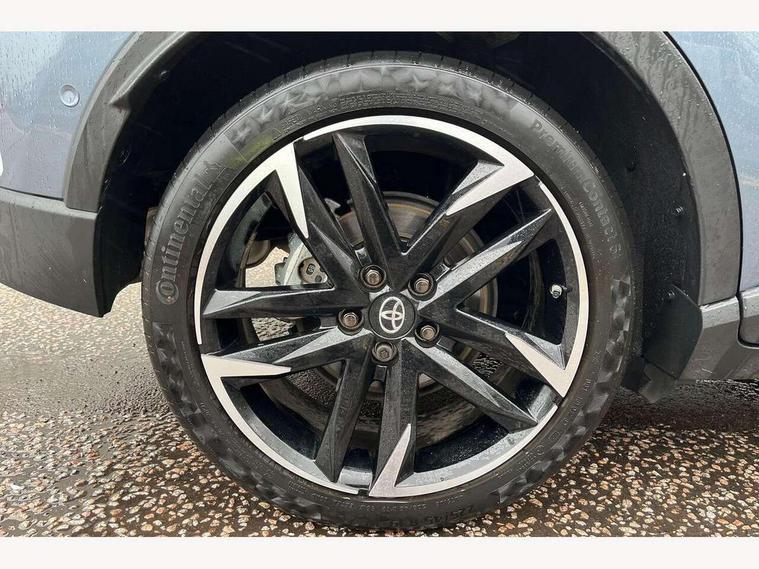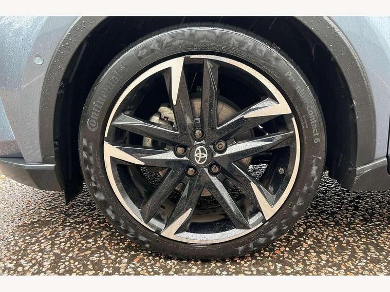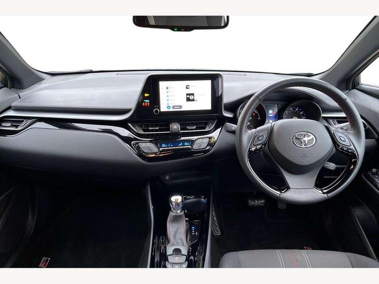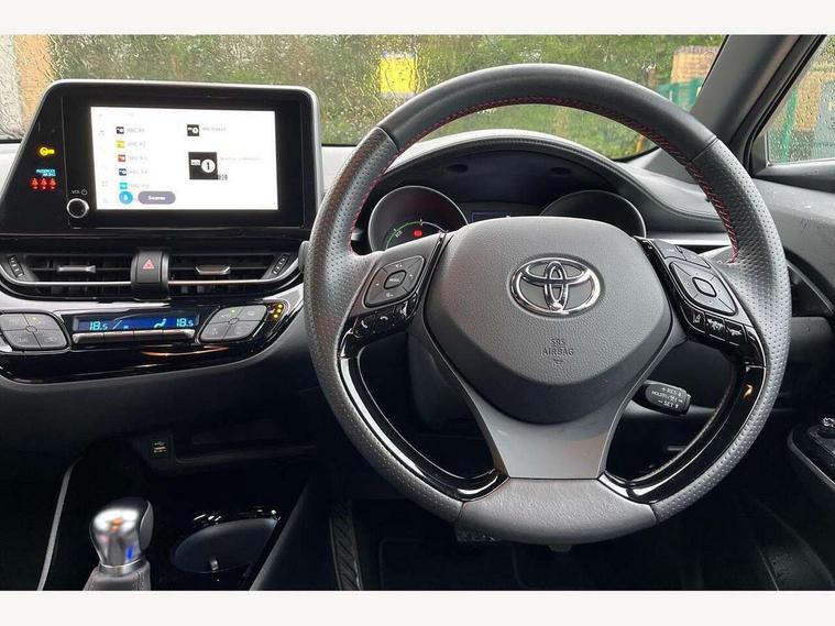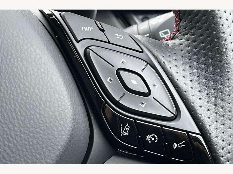 4.2" coloured TFT screen for multi-information display, Adaptive cruise control, Apple car play and Android auto, Bluetooth connectivity, E-call, Electric power steering, Hybrid system indicator, Lane departure alert with steering control, Lane trace assist, Push button tailgate release, Remote boot door release in cabin, Remote boot door release in key, Reversing camera, Road sign assist - RSA, Simple Intelligent parking assist, Smart voice assist, Touch 2 Go navigation system, Trip computer, Voice recognition, Wireless smartphone integration, Vehicle Stability Control (VSC), 6 speakers, AM/FM radio, DAB Radio (Digital Audio Broadcasting), Toyota touch 2 multimedia system with 8" display, USB connector, Wi-fi connectivity, Adaptive front light system, Adaptive LED Headlights, Anti-jam protection on power windows, Auto high beam, Auto up and down function on all power windows, Automatic headlight levelling, Automatic headlights, Automatic headlights cut-off, Black and body coloured rear bumper, Black upper front grille, Body colour door handles, Body colour door mirrors, Body coloured front bumper, Boot door release with push button, Chrome front lower bumper, Electric heated door mirrors, Follow me home headlights, Front and rear power windows, Front spoiler lip in black, Headlight cut off reminder, Honeycomb lower front grille, LED daytime running lights, LED fog lights, LED front light guide, LED High mounted stop light, LED rear brake lights, LED rear combination lights, Noise reduction layer on front windows and windscreen, Power adjustable door mirrors, Privacy glass, Rain sensor, Rear sequential indicators, Rear side wing doors, Rear spoiler, Rear tailgate, Rear window defogger, Rear window wiper, Shark fin antenna, UV-filter on driver and passenger windows, UV-filter on rear windows, Variable front intermittent wipers, 12v power outlet - front, 3 rear headrests, 3 seat bench in 2nd row, 3 spoke perforated leather steering wheel, 60/40 split folding 2nd row rear seats, Adjustable rear headrests, Adjustable speed limiter switch on steering wheel, Assist grips front and centre pillar, Audio and telephone switches on steering wheel, Black front door assist grips, Blue ambient lighting on front cup holders, Blue ambient lighting on front doors, Boot light, Chrome interior door handles, Cloth upholstery, Driver and front passenger personal light, Driver and front passenger Whiplash Injury Lessening seats, Driver and passenger seatback pockets, Dual zone automatic air conditioning, Floor mats, Front cupholders, Front head restraints, Front sports seats, Glovebox with internal light, Hard tonneau cover, Heated driver and front passenger seats, Hooks for luggage holding net, Humidifying Nanoe air purifier, Illuminated entry system, Isofix attachments on outer rear seats, Leather gearshift, Light on driver sun visor, Light on passenger sun visor, Manual telescopic steering wheel, Manual tilt steering wheel, Manually height adjustable driver seat, Manually height adjustable front passenger seat, Manually reclining driver seat, Manually reclining front passenger seat, Manually sliding driver seat, Manually sliding front passenger seat, Microphone on front personal light, Mirror on driver sun visor, Mirror on passenger sun visor, Multimedia switches on steering wheel, Pollen filter, Power adjustable lumbar support on driver seat, Shopping bag hooks, Single front passenger seat, Slow opening on lower glovebox, Voice recognition switch on steering wheel, Tech with parking sensor pack - C-HR, 16 Disk front wheel brake, 3x3 point rear seatbelts, ABS+EBD+Brake assist, Electronic parking brake, Front and rear seatbelt reminder, Front passenger airbag on/off switch, Hill start assist control (HAC), Pre collision system with pedestrian detection, Pre-tensioners and force limiters, Rear door child safety locks, SRS Airbags - Driver + Front passenger, front side, front and rear curtain and driver's knee airbags, Toyota safety sense, Tyre pressure monitoring system, Tyre pressure warning system, Acoustic vehicle alert system (AVAS), Glass-breaking alarm sensors, Immobiliser, Intrusion alarm, Intrusion sensor, Motion sensor alarm, Power passenger window lock, Remote central locking, Black lower dashboard, Black upper dashboard, Piano black console, Silver deco line on upper dashboard, 19" Black machined alloy wheels, Tyre repair kit,
