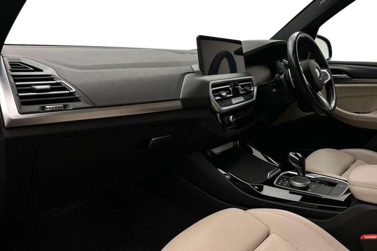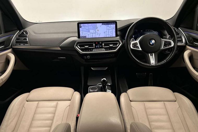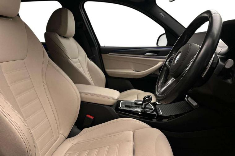 Active Guard, Attentiveness assist, BMW Live Cockpit Professional nav system including 12.3" instrument display + 12.3 high resolution control display, BMW Online services, BMW Teleservices, Brake pad wear indicator in front and rear, Check Control warning system for monitoring of lights and door/luggage compartment open warning, Condition based service - BMW service history, electronic service booklet, integrated owner's handbook, Connected drive services, Cruise control with brake function + speed limiter, Electric boot lid, Front/rear Parking distance control, iDrive Controller with 8 favourite buttons, Instrument cluster with speedometer with mph readout, tachometer, fuel gauge and oil temperature gauge, Lights on warning by audio warning signal when ignition is switched off, Oil sensor for level and grade, warning by check control system, On board computer - average speed+fuel consumption, service interval, clock/date, odometer/trip meter, outside temperature display and ice warning, Optimum shift indicator, Personal Profile - automatic lock when driving away selectable, Stop/start system, Variable sports power steering, Automatic transmission with gearshift paddles, Drive performance control with ECO PRO comfort + sport mode, Incorrect fuelling protection, M sport suspension, Multi-link rear suspension, Performance Control, BMW professional radio/CD/MP3, DAB tuner, Acoustic glazing, Automatic windscreen wipers and automatic headlight, Black finish on B pillars, Body colour door handles, Body colour electric adjust heated aspherical door mirrors, Body colour roof mouldings, Body coloured bumpers, Direction indicator, side repeaters, integrated in exterior mirrors, Dynamic brake lights, Exhaust tailpipes - dual, round, split left and right with chrome finisher, Fingertip control / anti-trap function on electric window, Folding wing mirrors with auto dimming, Follow me home headlights, Front and rear bumper system with replaceable deformation elements, Front and rear electric windows, Gloss chrome tailpipes finishers, Green tinted heat insulating glass, Heated windscreen washer jets, High beam assistant, High gloss black shadow line roof rails, High gloss shadowline exterior trim in decorative moulding side frame/recess cover/guide rail/B, C pillars/mirror frame and triangle with mirror base, High level 3rd brake light incorporating LED Technology, Interior rear view electrochromatic mirror with automatic anti dazzle function, LED tail lights, Lightweight engineering, M aerodynamic bodystyling, Model designation, Rear side wing doors, Rear wing door, Rear wiper, Shark fin antenna, Side exterior M designation badges, Visible VIN plate, Welcome lighting, Windscreen wipers with adjustable interval, 12V power socket in front centre console, 3 rear headrests, 3 zone automatic air conditioning, 4 lashing points to secure luggage, 40:20:40 split folding rear seat with loading system, 5 seats, Ambient lighting, Anthracite headlining, Automatic interior light when door is opened/ignition switched off or via remote key, Foldable storage floor with compartment, Four grab handles integrated in roof lining, Front and rear bottle holders integrated into door trim storage compartments, Front and rear side armrests integrated into door trim, Front centre armrest with storage compartment, Front footwell lights, Front head restraints, Front sports seats, Front/rear courtesy lights with soft on/off dimming, Front/rear reading lights, Heated front seats, Isofix rear child seat preparation, Leather gear knob, Luggage area underfloor compartment, Luggage compartment lighting, M sport leather steering wheel, Multifunction steering wheel, Parcel shelf removeable and storable under boot floor, Reach and rake adjustable steering column, Rear centre armrest with 2 cupholders, Removable / retractable luggage cover, Seat backrest width adjustment, Slope adjustable rear seats, Storage compartment in rear centre console and front/rear door trims, Sun visors with vanity mirrors and ticket pocket, Toolkit located in luggage compartment, Two front cupholders with removable oddments tray/lid, Vernasca leather upholstery, Connected pro pack - X3, Driving assistant pack - X3, ADB - Automatic Differential Brake, Anti-lock braking system (ABS) with brake assist, Automatic Stability Control (ASC), Battery safety cut-off, BMW emergency call, Brake drying, Brake energy regeneration, Braking pre-tensioning, Child locks on rear doors, Cornering brake control (CBC), Crash Sensor - activation of central locking release, hazard warning light and interior lighting, Deactivation of fuel pump in the event of a crash, Driver and front passenger front and side airbags with passenger deactivation and ITS front and rear head airbags, DSC+, Dynamic brake control, Dynamic Traction Control - DTC, Electromechanical parking brake, Hill descent control, Hill start assist, Seatbelt security check for front seats, Side impact protection, Three point seatbelts to all seats with front and outer rear pyrotechnic belt tensioners and seat belt force limiters, Two tone horn, Tyre pressure sensor, Ventilated front and rear disc brakes, Warning triangle and first aid kit, Central locking switch for all doors, fuel filler cap and luggage compartment, Electronic engine immobiliser, Locking wheel nuts, Remote control including two integrated key - one button for open/close all lockable content, windows and separate button for open luggage compartment, Remote control Thatcham category 1 alarm, Start/stop button with Comfort Go keyless engine start and auto Start/stop deactivation button, Low rolling resistance tyres,