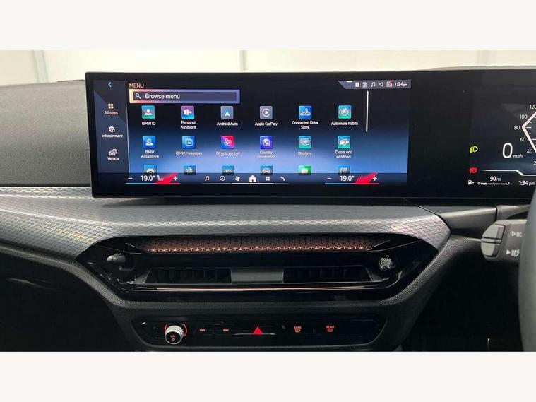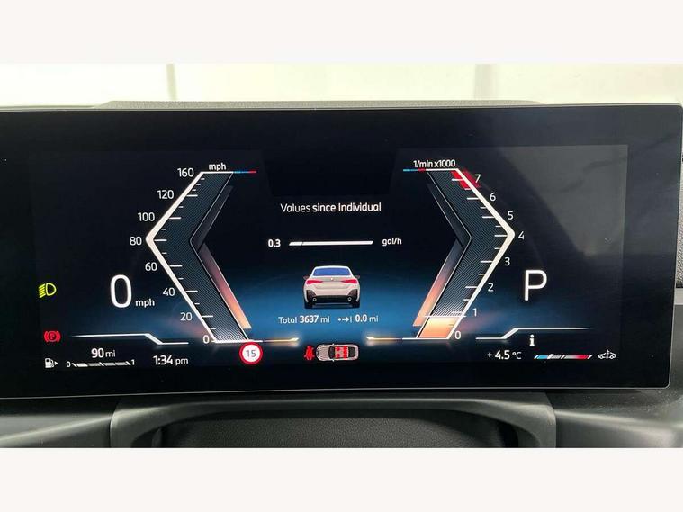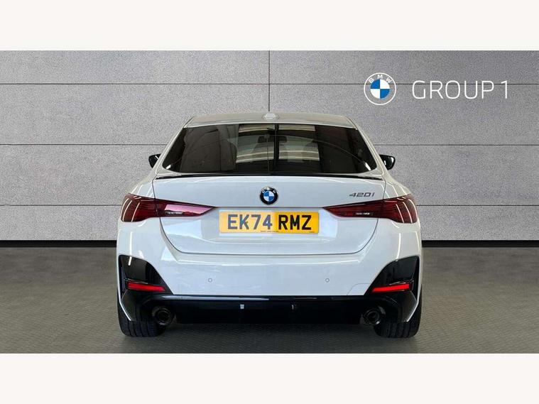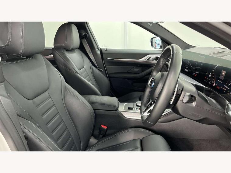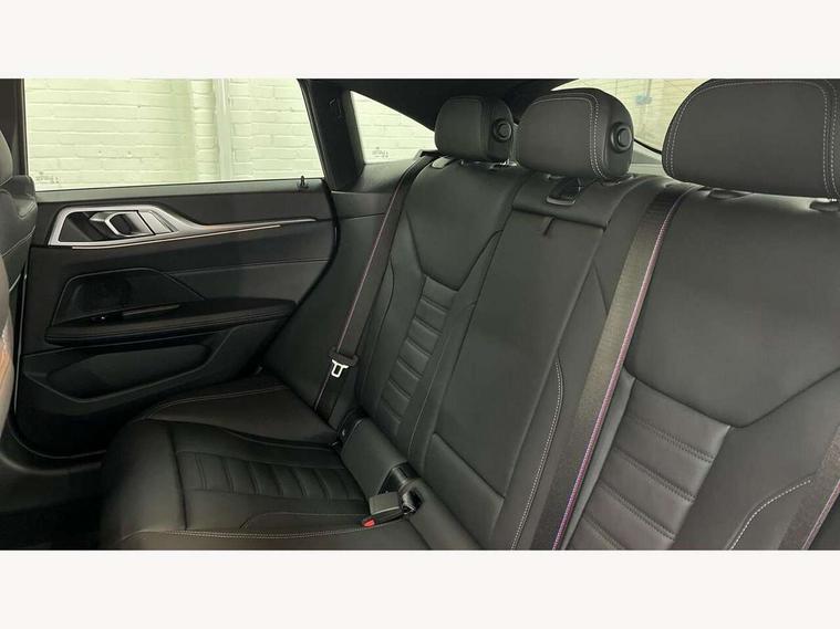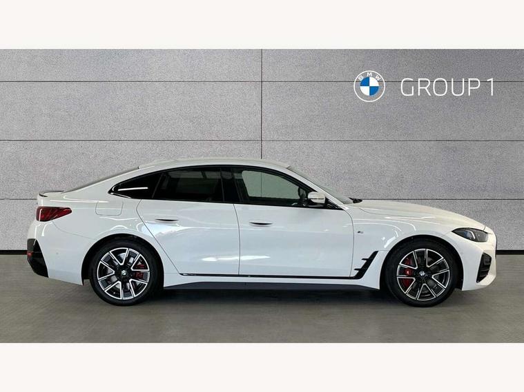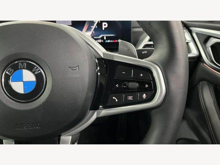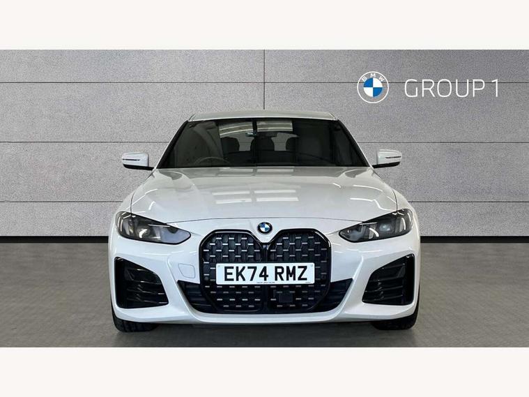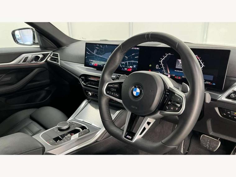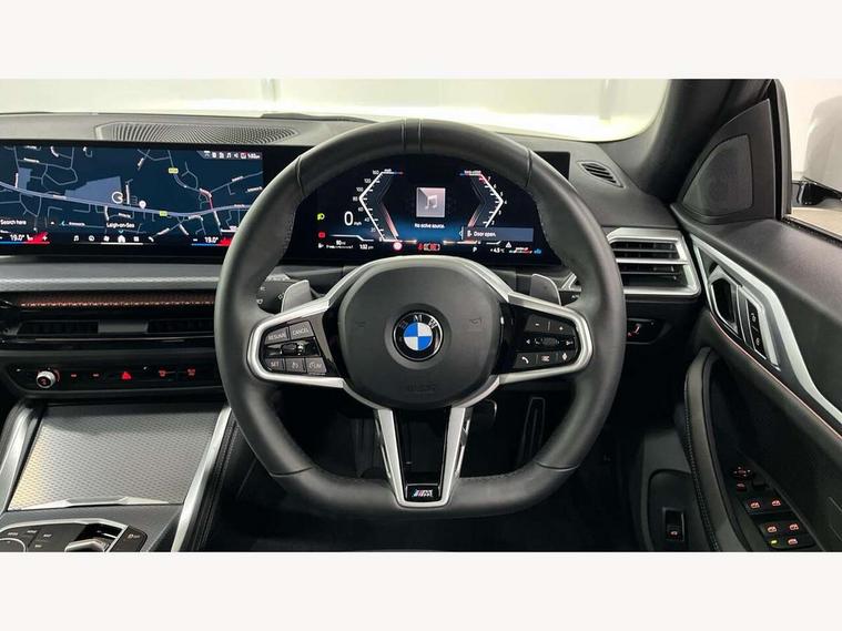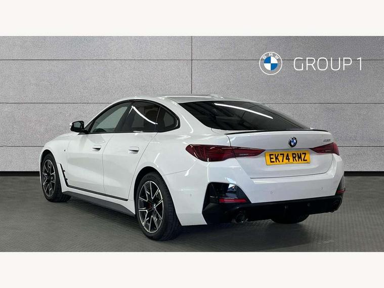 Active guard plus, Attentiveness assist, Auto start-stop, Bluetooth hands free facility with USB audio interface with audio streaming, BMW ConnectedDrive online services, BMW iDrive controller on centre console, BMW Live Cockpit Plus Nav-12.3" instrument&14.9" control Widescreen curved display/Intelligent Voice Assist/iDrive touch/Access 3rd party app/4G LTE, BMW service history, BMW Teleservices, Brake pad wear indicator in front and rear, Check Control warning system for monitoring of lights and door/luggage compartment open warning, Condition based service, Electric bootlid, Electric power steering with Servotronic steering optimised at all speed ranges, Gearshift time display in manual mode, Instrument cluster with speedometer with mph readout, tachometer, fuel gauge and oil temperature gauge, Integrated owners handbook, Language version English, Oil sensor for level and grade, warning by check control system, On board computer - average speed, fuel consumption, outside temp display with acoustic warning, clock/date, service interval, odometer/trip meter, Optimum shift indicator, Run flat indicator, Shifting point display, Variable sport steering, 8 speed automatic steptronic transmission with gearshift paddles, Balanced 50/50 weight distribution, Double joint spring strut front axle, Double VANOS, Drive performance control - ECO PRO, comfort and sport modes, High precision injection, Low centre of gravity, Petrol Particulate Filter, Stroke dependent dampers, VALVETRONIC engine management, 1x USB type A with data transfer and 1.5 Amp charging function in the centre console, 1x USB type C with 3 Amp charging function in the front centre armrest, DAB tuner, Electronic service booklet, Personal eSim, Acoustic glazing, Automatic headlight beam throw control with load dependent regulating reaction, dynamic compensation of braking dive and acceleration squat, Automatic windscreen wipers and automatic headlight, Automatically dimming electrochromatic rear view mirror, BMW emblem on engine compartment lid and tailgate, BMW radiator grille with mesh grille, end face of the nuggets in aluminium matt and frame in chrome matt, Body colour fuel filler flap, Body colour roof fin, Bonnet and tailgate badge, Brushed aluminium inserts in the front door sill finishers with BMW designation, Door sill strips, Dynamic brake lights, Electric windows - front and rear, with open/close fingertip control, anti trap facility and comfort closing function all round, Exterior mirrors - electrically folding with anti-dazzle, Fading support, Follow me home headlights, Front and rear bumper system, Front apron plastic in body colour, Green tinted heat protection glazing, High gloss shadow line exterior trim, Illuminated bow type door handles in body colour drivers side with door lock, Interior rear view electrochromatic mirror with automatic anti dazzle function, LED 3rd brake light, LED daytime running lights, LED front fog lights, LED front indicators, Licence plate panel integrated into front bumper and tailgate, Lightweight engineering, Low and high beam headlights in Bi-LED, M designation on front side panels, left and right, M rear boot spoiler, One piece front bumper cover including towing eye cover in body colour, Preparation for high beam assistant, Rear side wing doors, Rear wiper, Reversing light, Side frame trim strip black matt, Two part LED tailights in L-shape with components in smoked glass, brake light, LED turn indicator and rear fog light, Visible exhaust tailpipe finisher, Visible VIN plate, Welcome lights in interior and door handle area, Widened track and increased camber values for max transverse dynamics, agility and steering precision, Window recess finisher strip in matt black, Windscreen wipers with integrated heated washing jets, 12V power socket in front centre console, 2 front cupholder in centre console with clamping elements and matt black inlay, 3 rear headrests, 3 seat bench in 2nd row, 3 spoke flat bottom M sport leather multifunction steering wheel, 3 zone automatic air conditioning, 4 pieces lashing eyelets in luggage compartment, 40:20:40 split folding rear seat and rear centre armrest with two cupholders, Anthracite headlining, Armrest integrated in front and rear door trim + front centre console armrest, Battery in luggage compartment, BMW ID, Four grab handles integrated in roof lining, Front and rear door pockets, Front and rear reading lights, Front footwell lights, Heated driver and front passenger seats, Height adjustable front headrests, Height adjustable mechanically and infinitely variable steering column, Illuminated armrest storage compartment, Illuminated glove compartment with separate small compartment, Luggage compartment light, Luggage compartment seprating net on side trim left/right, Bag hook, 12V socket, TTH button, USB C charging in rear, Folding compartment on driver side, Make-up mirror lights, Single front passenger seat, Storage compartment in rear centre console, Sunvisors with illuminated vanity mirrors and ticket pocket, Through load system, Toolkit located in luggage compartment, Velour front floor mats, Ambient lighting pack - 4 Series, Connected professional package - 4 Series, M sport exterior styling pack - 4 Series, Park assist pack - 4 Series, 3 point seatbelts on all seats, Battery safety cut-off, BMW emergency call, Brake energy regeneration, Braking pre-tensioning, Child locks, Child seat ISOFIX attachment for the two outer rear seats, Coasting in idle in ECO PRO mode, Cornering brake control (CBC), Crash sensor activating of airbags, Unlocking doors, hazard warning lights, fuel cut off, interior lighting+activation of safety battery terminal clamp, Driver and front passenger side airbags, integrated in the door side seat backrest bolsters for all seat variants, Driver/Front Passenger airbags, Dry braking, Dynamic brake control, Dynamic stability control + (DSC+) - Anti-lock Braking System (ABS) with brake assist and cornering brake control 