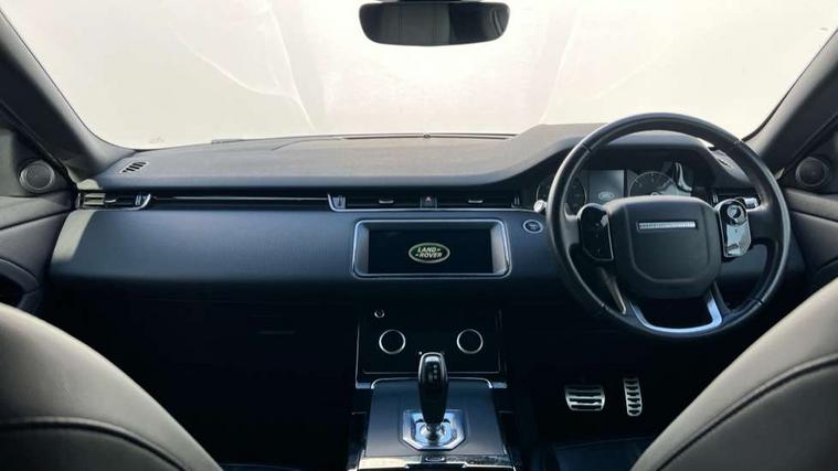 Android Auto, Apple car play, Bluetooth connectivity, Brake pad wear indicator warning light, Driver condition monitor, Electronic power assisted steering (EPAS), InControl remote, Land Rover InControl apps, Lane keep assist, Navigation pro system, Pro services and wifi hotspot, Push button starter, Smart settings, Traffic sign recognition with adaptive speed limiter, Voice control system, All terrain progress control, Efficient Driveline, Passive suspension, Terrain Response 2 Auto, Digital Audio Broadcast radio-DAB, Steering wheel mounted controls, Electric windows with one touch open/close and anti trap, Evoque and R-Dynamic badge, Flush deployable exterior door handles, Heated rear window with timer, Heated washer jets, Heated windscreen, Rain sensing windscreen wipers, Rear fog lights, Shadow atlas bonnet and tailgate script, Tailgate spoiler, 40:20:40 split folding rear seats, Black gearshift paddles, Bright metal pedals, Isofix system on outer rear seats, Overhead lighting console, Overhead stowage for sunglasses, Passive front head restraints, Rear air vents, Rear centre headrest, Sunvisors with illuminated vanity mirrors, Twin front cupholders with cover, Twin sliding front centre armrest, Two zone climate control, Anti-lock braking system (ABS), Customer configurable autolock, DSC - Dynamic Stability Control, Electronic brake force distribution, Electronic parking brake, Electronic traction control, Front and rear seatbelt reminder, Hill descent control, Hill launch assist, Low traction launch, Power operated child locks, Roll stability control, Six airbags - Driver and passenger airbags/driver knee airbag/front side airbag and curtain airbags, Torque vectoring brake, Tyre pressure monitoring system, Alarm, Immobiliser, Intrusion sensor, Locking wheel nuts,