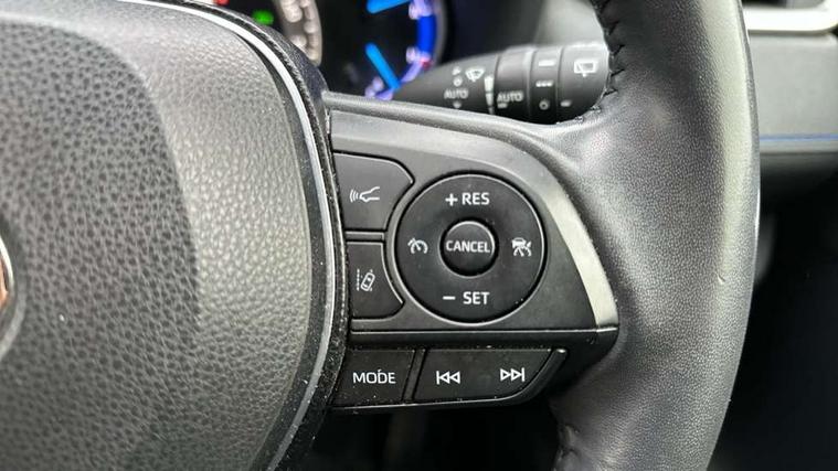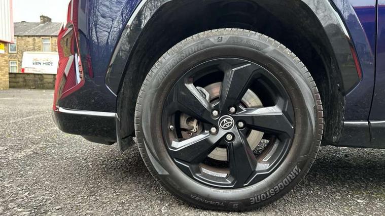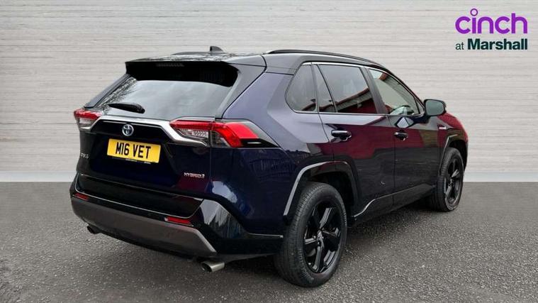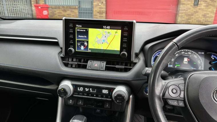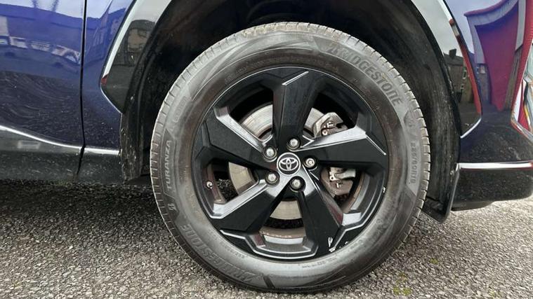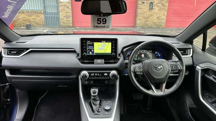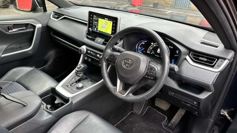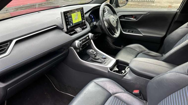 7" colour TFT display, Adaptive cruise control with lane trace assist, Adjustable speed limiter, Blind spot monitoring with rear cross traffic alert, Bluetooth system, Cyclist Detection, Drive mode selector, eCall emergency call system, ECO-driving indicator, Electric power steering, Hybrid system indicator, Lane departure warning system, Lights on warning, Night Time Pedestrian Detection, Pedestrial detection, Power boot opening and closing, Rear parking camera, Rear parking sensors, Remote boot door release in cabin, Tachometer, Touch 2 Go navigation system including 3D maps and voice control, Traffic sign recognition, Trip computer, Voice control system, Vehicle Stability Control (VSC), 6 speakers, 8" Multimedia display touch screen, Auxiliary socket for external MP3 player, DAB audio, Steering wheel mounted audio controls, Toyota touch media system, USB connection, Auto dimming interior mirror, Auto high beam, Automatic headlamp levelling, Automatic headlights, Automatically retractable door mirrors, Bi-tone black roof, Black door mirrors, Black rear spoiler, Black roof rails, Black Shark-fin antenna, Body colour door handles, Body coloured bumpers, Door mirror puddle lights, Electric adjustable door mirrors, Emergency brake-light signal (EBS), Follow me home headlights, Front fog lights, Gloss black front bumper insert, Gloss black rear bumper insert, Headlight cleaners, Heated door mirrors, LED daytime running lights, LED High mounted stop lamp, LED rear lights, Meshed upper front grille, Power front windows, Power rear windows, Privacy glass, Projector LED headlights, Rear screen wiper - intermittent, Rear windscreen defogger, Silver front under-run, Silver rear under-run, Trailer sway control, Turning signal integrated indicators in door mirrors, 3 rear headrests, 60/40 split fold rear seat back, Black roof lining, Boot light, Clean air filter, Driver and front passenger personal light, Driver and front passenger Whiplash Injury Lessening seats, Driver and passenger sunvisors with illuminated vanity mirrors, Dual sided deck board in boot, Dual zone automatic air conditioning, Floor mats, Folding rear centre armrest, Front and rear bottle holders, Front centre armrest, Front footwell lights, Front headrests, Front seat and rear pockets, Front sport seats, Front/rear roof mounted assist grips, Heated driver and front passenger seats, Isofix child seat preparation, Leather gear shift with chrome surround, Light blue ambient lighting on front cupholders and open tray, Manual telescopic and tilt 3-spoke leather steering wheel with Chrome insert, Manually reclining and sliding front passenger seat, Pollen filter, Power height-adjustable sliding reclining and lumbar support for driver seat, Rear coat hooks, Rear door armrests, Rear passenger air vents, Reclining rear seats, Satin chrome interior door handles, Sunglasses holder, Synthetic leather upholstery, Parking pack - Rav4, 3x3 point rear seatbelts, ABS/EBD, Adjustable front driver and passenger seat belt extender, Brake assist function, Child proof door locks, Collision mitigation braking system, Driver/Front Passenger airbags, Driver/front passenger side airbags, Drivers knee airbag, Electronic parking brake, Electronic Stability Programme (ESP), Emergency brake light system (EBS), Front and rear curtain airbags, Front and rear seatbelt reminder, Hill start assist, Passenger airbag cut-off device, Seatbelt pretensioners with load limiters, Traction control, Tyre pressure warning, Alarm/immobiliser, Glass-breaking alarm sensors, Light - on and Key in reminder, Remote central locking, Smart entry + Smart start, Speed sensitive auto door locking, Tilt detection sensors, Piano black centre console with silver insert, Soft-touch black lower dashboard, Soft-touch black upper dashboard with silver insert, Full size spare wheel,