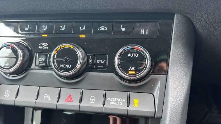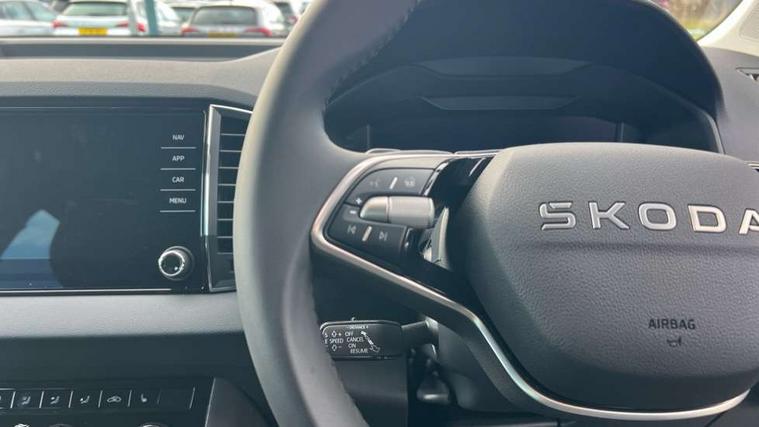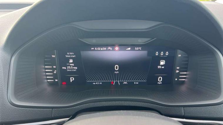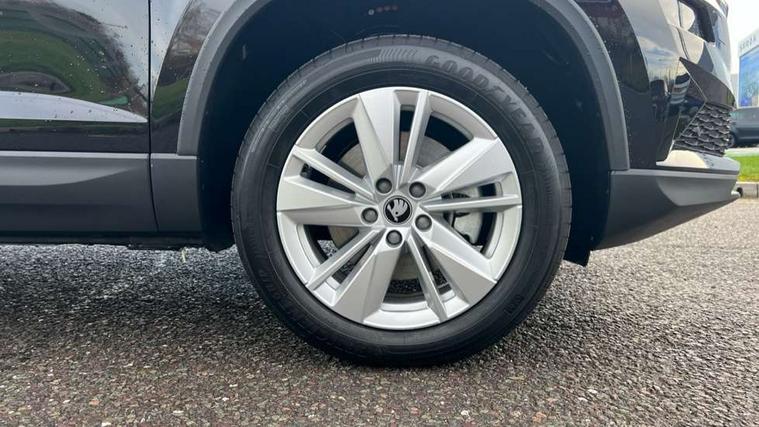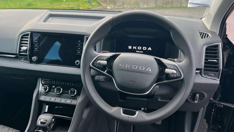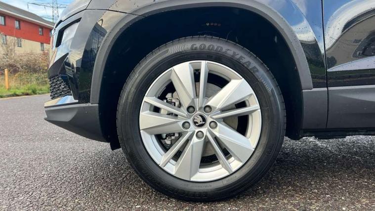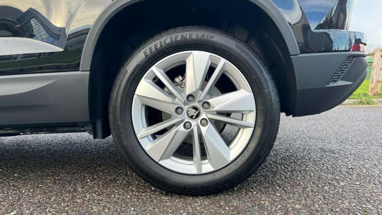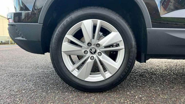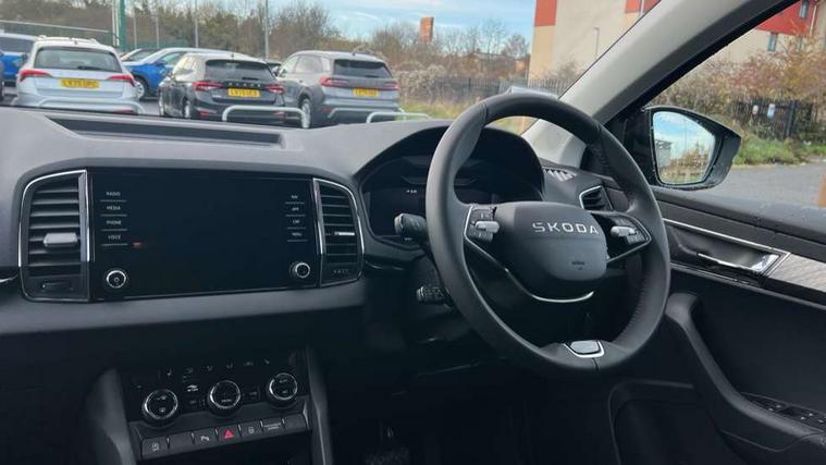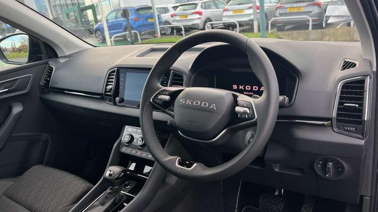 Advanced driver attention and drowsiness monitor, Amundsen navigation system with 8" touchscreen display and integrated WLAN and web radio, Electro-mechanical PAS, Emergency services call system, Lane assist, Outside temperature gauge, Sensor for driver assistance systems, Service interval indicator, SmartLink wireless for Apple and wired for Android, Start/stop system with regenerative braking, Traffic sign recognition, USB C Port x 2 in front centre console, Virtual Cockpit - 10.25" digital display, Wireless smartphone charging, 8 Speakers, DAB radio with Bluetooth, USB connection, Acoustic glass, Aero front windscreen wipers with intermittent function, Auto dimming rear view mirror with light and rain sensors, Black electric window control buttons, Body colour door mirrors and handles, Electric front and rear windows with child proof lock, Electrically adjustable heated folding and auto dimming door mirrors, Front fog lights, Headlight range control, Heated rear windscreen, LED daytime running lights, LED Headlights, LED rear lights with high functionality welcome effect and dynamic indicators, Light assistant (coming/leaving home/tunnel light), Plastic scuff plates in door apertures, Privacy glass, Rear side wing doors, Rear window wiper with washer system and intermittent control, Safety reflectors on front doors, Third brake light, Unique dark chrome design logo on alloy wheels, 1.5 litre bottle holders in driver and front passenger door panels, 12V socket in boot, 12v socket in front centre armrest with storage compartment and rear air vents, 2 spoke leather heated multifunction steering wheel with DSG paddles, 2 x Tablet holder, 3 rear height adjustable headrests, 3 seat bench in 2nd row, 4 foldable roof handles with rear coat hooks, Black floor carpet, Cargo elements in boot, Chrome inner door handles, Driver/front passenger reading lights, Foldable hooks in the boot, Folding tables on the front seat backrests, Front head restraints, Height adjustable driver and passenger seat, Height adjustable front three point seats belts with tensioners, Height/reach adjust steering wheel, Ice scraper, Illuminated glovebox, Illuminated luggage compartment, Interior noise suppression, Isofix child seat preparation for front passenger seat, Isofix child seat preparation outer rear, Loft fabric upholstery, Manual lumbar support for front seats, Pearl grey interior ceiling, Pen holder, Pollen filter, Rear boot cover, Rear package tray, Rear reading lights, Rubbish bin door, Safety vest holder, Single front passenger seat, Skoda lettering on steering wheel, Storage box in upper central dashboard closed, Sunvisors with illuminated vanity mirrors, Textile floor mats, Ticket holder, Umbrella under passenger seat, Under passenger seat storage compartment, Non Smokers pack, Parking pack - Karoq, Winter pack with heated front seats - Karoq, Automatic door unlocking in case of crash, Automatic fuel cut off in case of crash, Driver airbag, Electronic parking brake with auto hold function, Emergency rear braking signal, ESC (incl. ABS+MSR+ASR+EDS+HBA+DSR+RBS+MKB), Front assist, Front side airbags, Head airbags, Hill hold control, Knee airbags, Passenger airbag with switch-off function, Pedestrian monitor, Power operated child safety locks, Seatbelt reminder signalisation and pretensioner for all seats, Three point seatbelts rear, Two tone horn, Tyre pressure monitor, Alarm with interior monitoring, back up horn and tilt sensor with safe function, Electronic engine immobiliser, Keyless entry and start/stop, Remote central locking with 2 remote folding keys, Anodized cross door decor, Black centre console, Chrome framed air vents, Satin black dashboard, Satin black door trim, Anti-theft wheel bolts protection, Breakdown and tool kit,