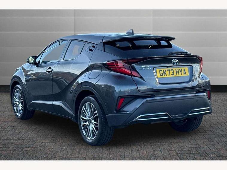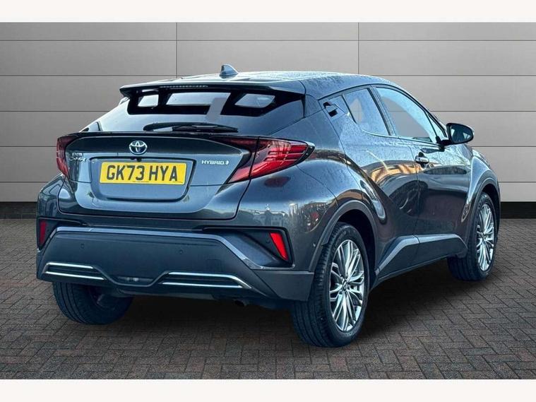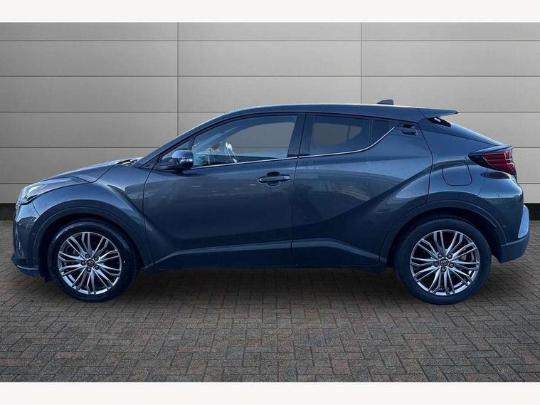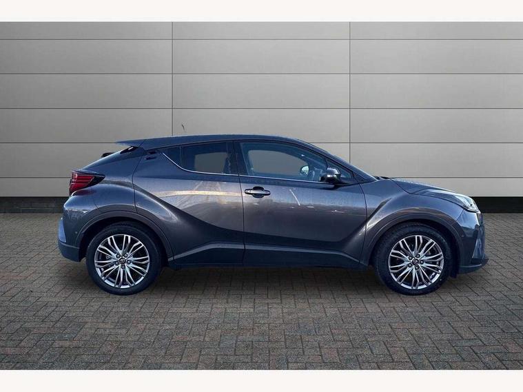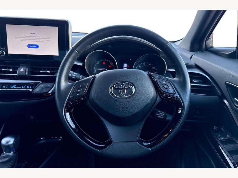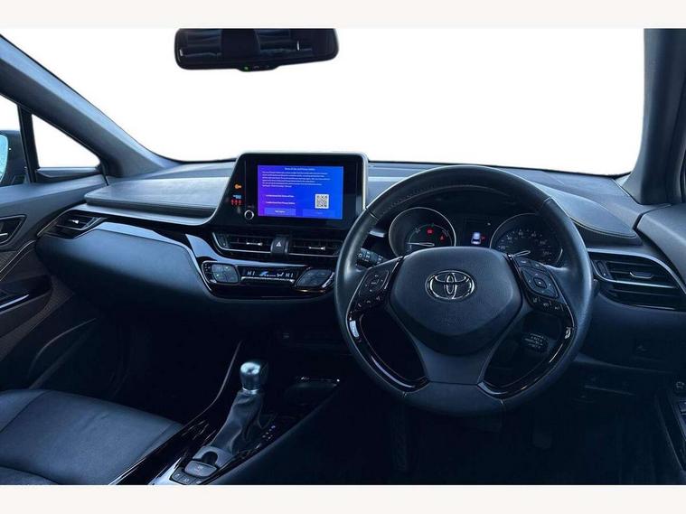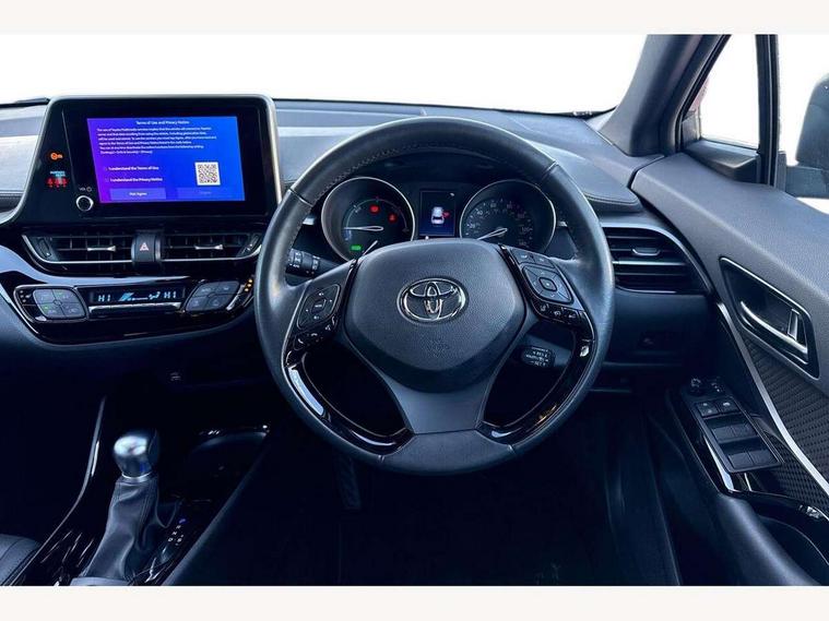 4.2" coloured TFT screen for multi-information display, Adaptive cruise control, Apple car play and Android auto, Bluetooth connectivity, E-call, Electric power steering, Hybrid system indicator, Lane departure alert with steering control, Lane trace assist, Push button tailgate release, Remote boot door release in cabin, Remote boot door release in key, Reversing camera, Road sign assist - RSA, Simple Intelligent parking assist, Smart voice assist, Touch 2 Go navigation system, Trip computer, Voice recognition, Wireless smartphone integration, Vehicle Stability Control (VSC), 6 speakers, AM/FM radio, DAB Radio (Digital Audio Broadcasting), Toyota touch 2 multimedia system with 8" display, USB connector, Wi-fi connectivity, Adaptive front light system, Adaptive LED Headlights, Anti-jam protection on power windows, Auto high beam, Auto up and down function on all power windows, Automatic headlight levelling, Automatic headlights, Automatic headlights cut-off, Black and body coloured rear bumper, Black lower front grille, Black upper front grille, Body colour door handles, Body colour door mirrors, Body colour front spoiler lip, Body coloured front bumper, Boot door release with push button, Electric heated door mirrors, Follow me home headlights, Front and rear power windows, Headlight cut off reminder, Honeycomb lower front grille, LED daytime running lights, LED fog lights, LED front light guide, LED High mounted stop light, LED rear brake lights, LED rear combination lights, Noise reduction layer on front windows and windscreen, Power adjustable door mirrors, Privacy glass, Rain sensor, Rear sequential indicators, Rear side wing doors, Rear spoiler, Rear tailgate, Rear window defogger, Rear window wiper, Shark fin antenna, UV-filter on driver and passenger windows, UV-filter on rear windows, Variable front intermittent wipers, 12v power outlet - front, 3 rear headrests, 3 seat bench in 2nd row, 3 spoke leather steering wheel, 60/40 split folding 2nd row rear seats, Adjustable rear headrests, Adjustable speed limiter switch on steering wheel, Assist grips front and centre pillar, Audio and telephone switches on steering wheel, Black front door assist grips, Blue ambient lighting on front cup holders, Blue ambient lighting on front doors, Boot light, Chrome interior door handles, Driver and front passenger personal light, Driver and front passenger Whiplash Injury Lessening seats, Driver and passenger seatback pockets, Dual zone automatic air conditioning, Floor mats, Front cupholders, Front head restraints, Front sports seats, Glovebox with internal light, Hard tonneau cover, Heated driver and front passenger seats, Heated steering wheel, Hooks for luggage holding net, Humidifying Nanoe air purifier, Illuminated entry system, Isofix attachments on outer rear seats, Leather gearshift, Leather wrapped steering wheel, Light on driver sun visor, Light on passenger sun visor, Manual telescopic steering wheel, Manual tilt steering wheel, Microphone on front personal light, Mirror on driver sun visor, Mirror on passenger sun visor, Multimedia switches on steering wheel, Pollen filter, Power adjustable lumbar support on driver seat, Power tilting cushion on driver seat, Shopping bag hooks, Single front passenger seat, Slow opening on lower glovebox, Voice recognition switch on steering wheel, Leather pack - C-HR, Tech with parking sensor pack - C-HR, 16 Disk front wheel brake, 3x3 point rear seatbelts, ABS+EBD+Brake assist, Electronic parking brake, Front and rear seatbelt reminder, Front passenger airbag on/off switch, Hill start assist control (HAC), Pre collision system with pedestrian detection, Pre-tensioners and force limiters, Rear door child safety locks, SRS Airbags - Driver + Front passenger, front side, front and rear curtain and driver's knee airbags, Toyota safety sense, Tyre pressure monitoring system, Tyre pressure warning system, Acoustic vehicle alert system (AVAS), Glass-breaking alarm sensors, Immobiliser, Intrusion alarm, Intrusion sensor, Motion sensor alarm, Power door locks, Power passenger window lock, Remote central locking, Black lower dashboard, Dark brown upper dashboard, Piano black console, Silver deco line on upper dashboard, Tyre repair kit,