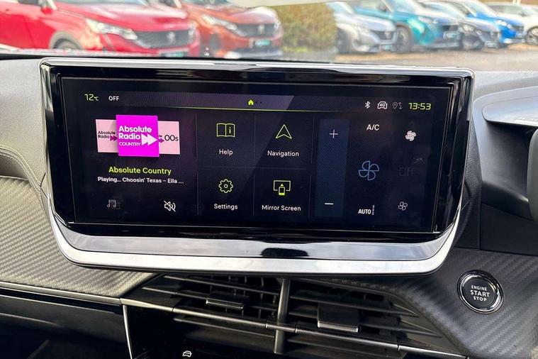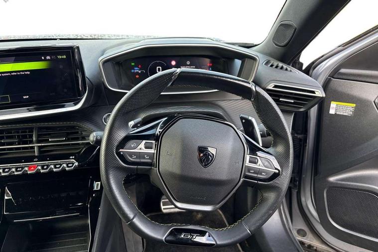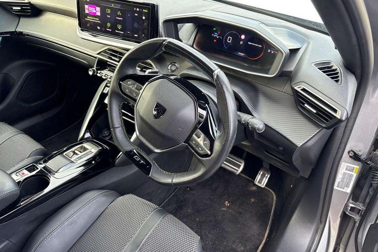 Bluetooth telephone facility, Driver attention warning, E-call, Exterior temperature indicator with ice warning, Multi function trip computer, PEUGEOT i-Cockpit with compact steering wheel, PEUGEOT i-Cockpit with configurable 3D headup instrument panel, PEUGEOT SOS and assistance, Smartphone charging plate, Speed limit recognition and recommendation, Wireless mirror screen with mirror link, apple carplay and android auto, Petrol Particulate Filter, 1x USB-C socket in rear and 1x USB-A socket in rear, 2 USB-C ports in the front, 6 speakers radio with mp3 compatible, DAB Radio (Digital Audio Broadcasting), Voice recognition for radio, navigation and telephony features, 2 X Rear number plate lights, Aluminium door sill scuff plates with peugeot lettering, Automatic hazard light activation upon heavy brake application, Black diamond roof, Black front wing trim with gloss black detail and GT badging, Body coloured exterior door handles, Dark tinted rear side and tailgate windows, Diamond black mirror shells, Diamond black rear roof spoiler, Electric, heated, and power folding door mirrors, Frameless electrochrome interior rear view mirror, Front bumper - Meteor grey lower trim, Full LED headlights with smartbeam assist with auto height adjustment, Gloss black finish on B pillar, Gloss black rear cluster connecting strip, Gloss black roof bars, Gloss black window surround, GT model designation badging on tailgate, Headlights left on audible warning, LED daytime running lights with distinctive 3 claw signature, LED side indicator lights integrated into door mirrors, LED third brake light, Model designation badges front and rear, One touch electric front/rear windows with pinch protection, Radiator grille - body coloured vertical chequered grille, Radiator grille - gloss black top edge trim, Rear full LED 3D peugeot signature claw effect lights with daylight function, Rear reversing lights, Rear side wing doors, Rear windscreen wiper triggered automatically in reverse gear, Tailgate with heated rear windscreen and wiper blade, Twin chromed exhaust pipes, Wheel arch extensions, 1/3 to 2/3 split folding rear seats, 12V socket, 3 seat bench in 2nd row, 8 Colour personalisable ambient lighting, Automatic air conditioning with pollen and active carbon filter, Central front armrest with storage compartment, Driver and front passenger sport seats, Electric power steering with reach and rake adjustable steering column, Front and rear carpet mats in black, Front LED interior light with 2 reading spotlights and rear interior light with timer, Front passenger seat manual adjustment - height, longitudinal and back rest angle, High centre console, ISOFIX child seat mounting points on passenger seat, Mistral full-grain perforated leather steering wheel with Lime Green stitch detail and satin chrome 'GT' emblem, Multifunction steering wheel, Piano keys: Gloss black and chrome toggle switches to access main functions of the vehicle and touchscreen functions, Roof lining - Mistral black, Seatbelt unfastened on the move audible and visual alert for front and rear seats, Single front passenger seat, Two position modular boot floor, Visibility pack - 2008, 2x 2nd row ISOFIX child seat mountings, ABS (Anti-lock Braking System) with EBD (Electronic Brakeforce Distribution) and EBA (Emergency Braking Assistance), Active safety brake with night function/cyclists/pedestrians, Adaptive driver and front passenger airbags with passenger airbag deactivation function, Child locking functionality on rear doors, Driver/front passenger side airbags, Electric parking brake, ESP (Electronic Stability Program) + Hill Start Assist, Front and rear curtain airbags, Front and rear disc brakes, Front and rear three-point retractable seatbelts, with force limiters, Front optimised safety headrests and rear retractable headrests (x3), height adjustable, Tyre pressure sensor, Automatic door locking when moving off, Deadlocks, Electronic code immobiliser, Peugeot Open and Go (keyless entry and push button start), Thatcham category 1 alarm, Carbon effect Dashboard, front and rear door panel finish,