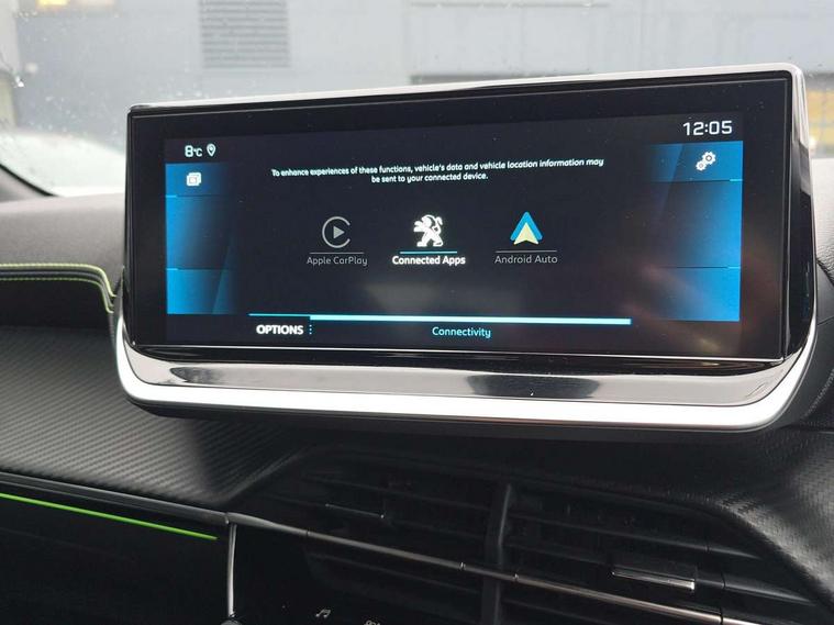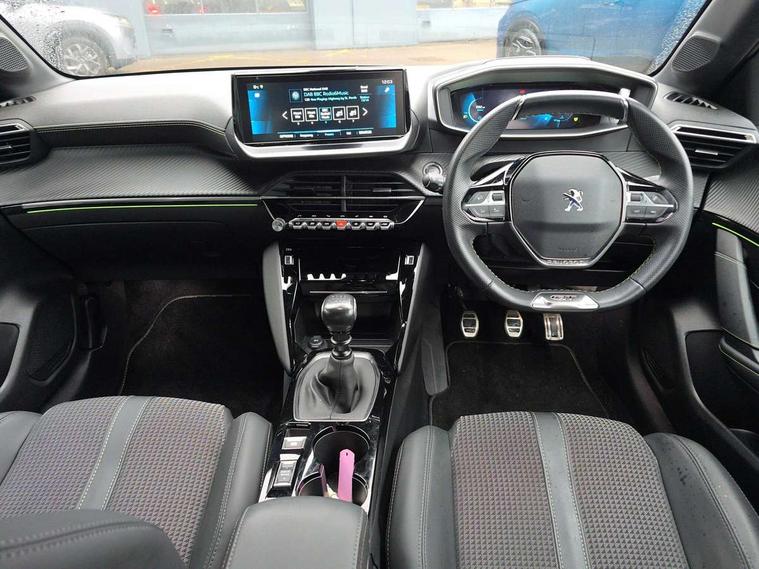 10" Capacitive colour touchscreen with connected 3D navigation, Bluetooth telephone facility, Driver attention warning, Exterior temperature indicator with ice warning, Lane keep assist, Mirror screen with mirror link, apple carplay and android auto, Multi function trip computer, Peugeot connect SOS and assistance, PEUGEOT i-Cockpit with compact steering wheel, PEUGEOT i-Cockpit with configurable 3D headup instrument panel, Push button start, Smart phone docking station, Speed limit recognition and recommendation, Start/stop system, Visio park assist 180 with colour reversing camera + front and rear parking sensor, 2 front USB socket with USB-C, 2x USB sockets in rear, 6 speakers radio with mp3 compatible, DAB Digital radio, Voice recognition for radio, navigation and telephony features, 2 X Rear number plate lights, Automatic lights, Automatic windscreen wipers, Body coloured exterior door handles, Dark tinted rear side and tailgate windows, Diamond black rear spoiler, Diamond Black roof, Electric front windows + one touch + anti-pinch, Electric rear windows with one touch/anti-pinch, Electrically adjustable, heated and power folding door mirrors, Follow me home headlights, Frameless electrochrome interior rear view mirror, Full LED headlights with smartbeam assist, Gloss black finish on B pillar, Gloss black rear cluster connecting strip, Gloss black wheel arch extensions, Gloss black window surround, GT model designation badging on C pillar, GT model designation badging on tailgate, Headlights left on audible warning, LED daytime running lights with 3 claw headlight with distinctive tooth design, LED side indicator lights integrated into door mirrors, LED third brake light, Model designation badges front and rear, Nera black door mirror shells, Peugeot scuff plates, Radiator grille - Dark chrome chequered and gloss black edge trim, Rear bumper with gloss black finish, Rear full LED 3D peugeot signature claw effect lights with daylight function, Rear lower bumper diffuser effect trim in gloss black, Rear reversing lights, Rear side wing doors, Rear windscreen wiper triggered automatically in reverse gear, Roof mounted aerial with fin design, Roof spoiler, Single chrome exhaust tailpipe, Tailgate with heated rear windscreen and wiper blade, Variable front intermittent wipers, 1/3 to 2/3 split folding rear seats, 12V socket, 3 seat bench in 2nd row, 8 Colour personalisable ambient lighting, Aluminium pedals and foot rest, Automatic air conditioning, Driver and front passenger seat manual adjustment in longitudinal and back rest angle, Driver and front passenger seat mechanical height adjustment, Driver and front passenger sport seats, Electric power steering with reach and rake adjustable steering column, Front and rear carpet mats in black with lime green stitch detail, Front centre armrest with storage compartment, Front LED interior light with 2 reading spotlights and rear interior light with timer, Gear shift indicator, High centre console with 2 cup holders, ISOFIX child seat mounting points on passenger seat, Lime green contrast stitching to armrest, front centre console, door panels and dashboard facia, Map pockets on the backs of the front seats, Mistral full grain perforated leather steering wheel with aikinite stitch detail and satin chrome 'GT' emblem, Piano keys gloss black plated toggle switches to access main functions of the vehicle, Piano keys gloss black plated toggle switches to access touchscreen functions, Rear centre headrest, Roof lining - Mistral black, Satin chrome gear lever with black stitching, Seatbelt unfastened on the move audible and visual alert for front and rear seats, Single front passenger seat, 3 rear 3 point seatbelts, ABS (Anti-lock Braking System) with EBD (Electronic Braking Distribution) and EBA (Emergency Braking Assistance), Active safety brake with night function/cyclists/pedestrians, Adaptive driver and front passenger airbags with passenger airbag deactivation function, Child locking functionality on rear doors, Driver/front passenger side airbags, Electric parking brake, ESP with Hill Assist, Front and rear curtain airbags, Front and rear disc brakes, Front optimised safety headrests and 3 x rear retractable headrests with height adjustable, Front three point retractable seatbelts with force limiters, Tyre pressure sensor, Acoustic vehicle alert system (AVAS), Automatic door locking when moving off, Automatic hazard light activation upon heavy brake application, Deadlock, Electronic code immobiliser, Remote central locking, Thatcham cat. 1 alarm with anti lift sensor, Carbon effect Dashboard, front and rear door panel finish, 17" Bronx two-tone alloy wheels, Space saver spare wheel,