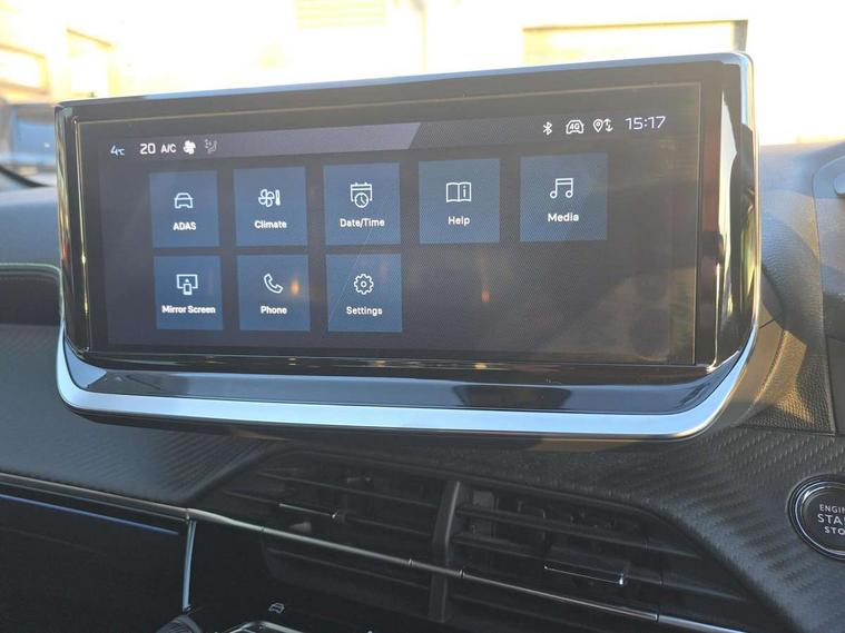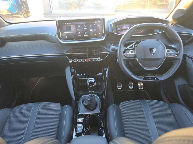 Bluetooth telephone facility, Drive mode select (Eco/Normal/Sport), Driver attention warning, Emergency call service, Exterior temperature indicator with ice warning, Front and rear parking sensors, Multi function trip computer, PEUGEOT i-Cockpit with 10" configurable 3D colour head up instrument panel, PEUGEOT i-Cockpit with 10" HD capacitive colour touchscreen, PEUGEOT i-Cockpit with compact steering wheel, PEUGEOT SOS and assistance, Push button start, Smart phone docking station, Smartphone 15W wireless charging plate, Speed limit recognition and recommendation, Start/stop system, Wireless mirror screen with apple carplay and android auto, 6 Speakers - 2 tweeters and 4 door speakers, DAB Digital radio, Peugeot i-connect infotainment system - 10in HD touchscreen, AM/FM/DAB digital radio, Wifi Mirroring, Bluetooth & 2 USB connection, USB-A socket (x1) and USB-C socket (x1) - rear, USB-C data and charge socket and USB-C charge socket in front, Voice recognition for radio, navigation and telephony features, 2 X Rear number plate lights, Acoustic windscreen, Antenna - Gloss Black 'fin' design, Automatic hazard light activation upon heavy brake application, Body coloured exterior door handles, Dark tinted rear side and tailgate windows, Diamond black rear spoiler (roof), Door sills protection with PEUGEOT signature lettering, Electric heated and power folding door mirrors with courtesy floor lighting, Frameless electrochrome interior rear view mirror, Full LED headlights with automatic height adjustment and PEUGEOT smartbeam assist, Gloss black B pillar, Gloss black door mirror shells, Gloss black front bumper grille with body colour accents, Gloss black rear cluster connecting strip, Gloss black wheel arch extensions, Gloss black window weatherstrips, GT model designation badging on C pillar, GT model designation badging on tailgate, Headlights left on audible warning, LED 3 claw horizontal rear lighting signature (with daylight function) and LED brake lights, indicators and reversing lights, LED daytime running lights with distinctive 3 claw signature, LED front indicators, LED third brake light, Model designation badges front and rear in basalt grey, One touch electric front/rear windows with pinch protection, Rear bumper with gloss black finish, Rear reversing lights, Rear side wing doors, Rear windscreen wiper triggered automatically in reverse gear, Roof spoiler, Tailgate with heated rear windscreen and wiper blade, Variable front intermittent wipers, 1/3 to 2/3 split folding rear seats, 12V socket, 3 seat bench in 2nd row, 8 Colour personalisable ambient lighting, Adamite green contrast stitching to front and rear armrest, front centre console, dashboard facia, Aluminium pedals, Automatic mono zone climate control air condition, Boot lighting, Driver and front passenger dynamic seats, Driver and front passenger seat manual adjustment in longitudinal and back rest angle, Driver and front passenger seat mechanical height adjustment, Driver and passenger sun visors, front footwells and central storage with LED lighting, Electric power steering with reach and rake adjustable steering column, Front centre armrest with storage compartment, Front LED interior light, front LED reading spotlights(x2), rear LED reading spotlight(x2), Gear shift indicator, High centre console with 2 cup holders, Luxury carpet mats, Map pockets on the backs of the front seats, Multi function full grain perforated leather steering wheel with adamite green stitch detail and 'GT' emblem, Passenger seat height adjuster, Piano keys gloss black plated toggle switches to access main functions of the vehicle, Rear centre headrest, Roof lining - Mistral black, Seatbelt unfastened on the move audible and visual alert for front and rear seats, Single front passenger seat, Visibility pack - 208, 2x Isofix child seat fitting on outer rear seats, 3 rear 3 point seatbelts, ABS (Anti-lock Braking System) with EBD (Electronic Brakeforce Distribution) and EBA (Emergency Braking Assistance), Active safety brake with night function/cyclists/pedestrians, Child locking functionality on rear doors, Driver and front passenger airbag with passenger airbag deactivation, Driver/front passenger side airbags, Electric parking brake, ESP with Hill Assist, Front and rear curtain airbags, Front and rear disc brakes, Front optimised safety headrests and 3 x rear retractable headrests with height adjustable, Front three point retractable seatbelts with force limiters, Remote plip(x2) for locking, unlocking, includes emergency key blade, Tyre pressure monitoring system, Acoustic vehicle alert system (AVAS), Alarm - Connected, volumetric , perimetric, anti lift sensor, Automatic door locking when moving off, Deadlock, Electronic code immobiliser, Peugeot Open and Go System, Remote central locking, Carbon effect Dashboard, front and rear door panel finish, 17" Yanaka two tone diamond cut alloy wheels wheels includes gloss black inserts, Space saver spare wheel,