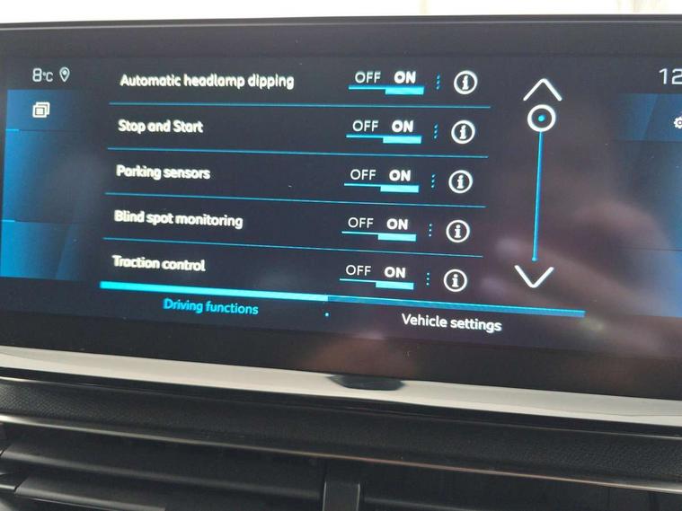10" High Definition Capacitive Touchscreen, 3D connected navigation + voice control, Bluetooth telephone connection, Driving timer alert system, Extended Traffic sign recognition, Exterior temperature gauge with frost alarm, Lane departure warning system, Mirror screen with Apple CarPlay and Android auto, Multi function trip computer, Peugeot connect SOS and assistance, Peugeot i-cockpit with 12.3" headup digital instrumental panel, 8.0" capacitive touch screen and compact sports steering wheel, Rear passenger USB charging sockets (x2) (type A), Speed limit recognition, Sports button, Dynamic stability control, Bi Tuner radio including DAB, USB socket, Automatic activation of hazard warning lights, Black diamond roof and nera black door mirror shells, Black rubber side window trim, Body colour door handles, Body coloured rear spoiler, Body protectors in black, Chrome front wing trim, Chrome radiator grille and surround, Chrome rear bumper scuff plate, Chrome trim to lower side windows, Dark tinted Rear side and tailgate windows, Door mirrors with blind spot detection indicator and auto dipping function in reverse gear, Electric folding door mirrors with exterior courtesy LED lighting, Electric front/rear windows with one touch/auto up/down, Electrically heated door mirrors, Fog Mode, Frameless electrochrome rear view mirror, Front door sills with stainless steel insert featuring 'PEUGEOT' lettering, Front windscreen wiper with magic wash cleaning system, Full LED headlights with static corner lighting and Daytime Running Light extension, Gloss black B and C pillar and aerodynamic deflector trim, Gloss black front bumper air scoops, Gloss black rear cluster connecting strip, GT emblem (front wings and tailgate), Headlights left on audible warning, Heated rear windscreen with integrated antenna, LED rear lights including reversing lights, scrolling indicators and PEUGEOT '3Claw Effect' light signature (with daylight function), LED rear number plate lighting, LED side indicator lights integrated into door mirrors, Rear windscreen wiper with auto activation when reversing, Stainless steel roof arches, Twin exhaust effect trim, 2 cupholders in front centre console, 3 x 12V power sockets, 4 Grab handles retractable and damped, Aikinite stitching in armrest, gear lever and dashboard facia, Aluminium pedals, Automatic and dual zone diffusion air conditioning system, Blue ambient lighting for connecting zone, Blue ambient lighting to front door panels, central storage and cupholders, Brumeo fabric trimmed door armrests, Central front armrest with butterfly wing opening, Tramontane double stitching and illuminated storage compartment, Electric power steering with reach and rake adjustable steering column, Flocked front door pocket interior with blue ambient lighting, Flocked glovebox interior, Foldable front passenger seat, Footwell lighting, Front ambient lighting, Front interior light with reading spotlights (x2), row 2 interior light with reading spotlights (x2), Gear shift indicator, Illuminated glovebox, Illuminated vanity mirror, Isofix child seat fittings x 3 in the second row, LED interior lighting, Map pocket on front seat backs, Mistral floor mats with Aikinite contrast stitching, Mistral full grain perforated leather steering wheel with aikinite stitch detail and satin chrome 'GT' emblem, Rear ventilation system, Retractable parcel shelf, Roof lining and windscreen pillars in Mistral black, Satin chrome digital instrument panel and touchscreen trim, Satin chrome front door panel recess trim, Satin chrome interior door handles, Satin chrome scorpion's tail and toggle switch trim, Seatbelt not fastened audible and visual alert for front seats, Seatbelt unfastened on the move audible and visual alert for front and rear seats, Third row seats (can be stored under bootfloor or removed completely), Twin rear coat hooks, Children's pack - 5008, Drive Assist Plus Pack - 5008, Driver sport pack - 5008, Visibility pack - 5008, ABS + EBD + EBA, Adaptive driver and front passenger airbags with including passenger airbag deactivation function, Electronic parking brake, ESP and ASR traction control with deactivation switch, Five 3 point rear safety belts, Front and rear curtain airbags, Front optimised safety headrests and rear retractable headrests (x3), height adjustable, Front side airbags, Front three point retractable seatbelts height adjustable with pre tensioners and force limiters, Front ventilated disc brakes, Hill start assist, Rear disc brakes, Rear three-point retractable seatbelts (x3) with pre-tensioners and force limiters in the outer rear seats, Two tone horn, Automatic door locking when moving off, Child lock control of rear doors and windows, Electronic code immobiliser, Keyless Start, Perimetric and volumetric alarm with lift and tilt sensor, Peugeot Open and Go System, Remote control central locking with two plip keys, Satin chrome dash trim, Puncture repair kit including compressor, sealant cartridge and towing eye,