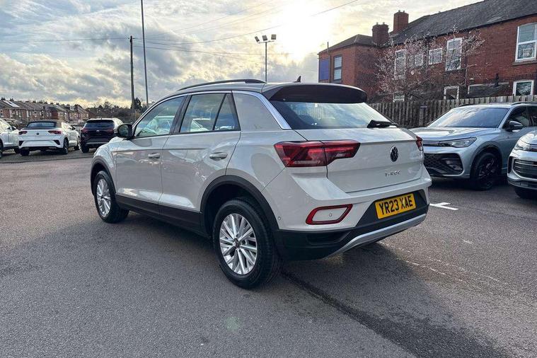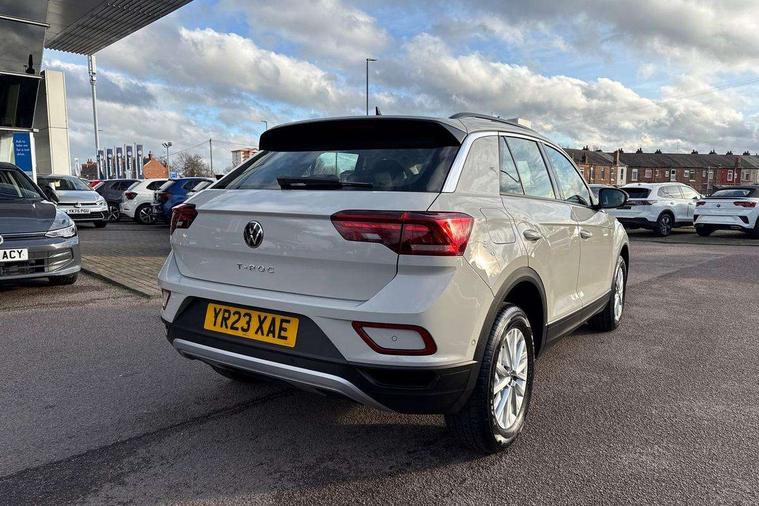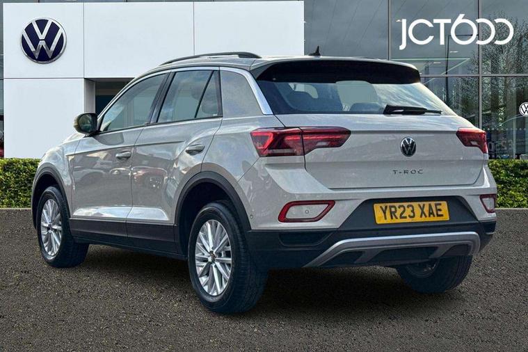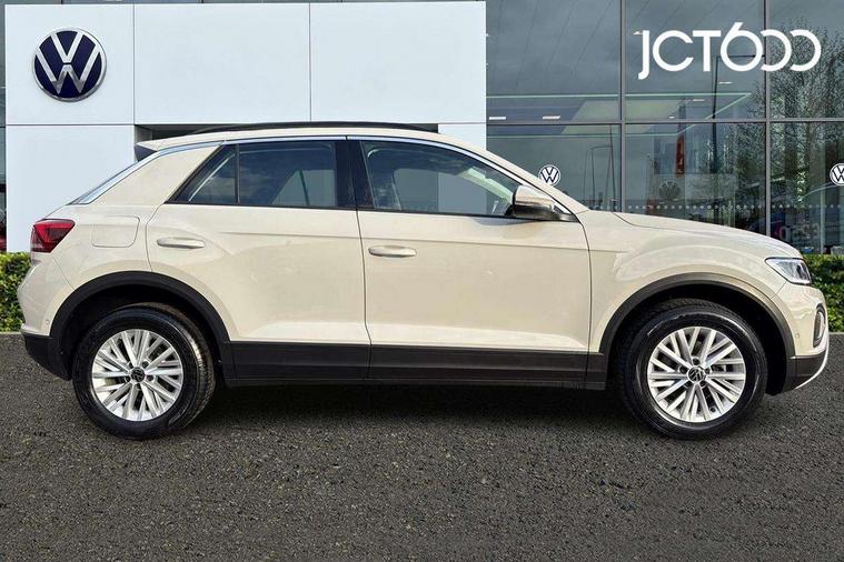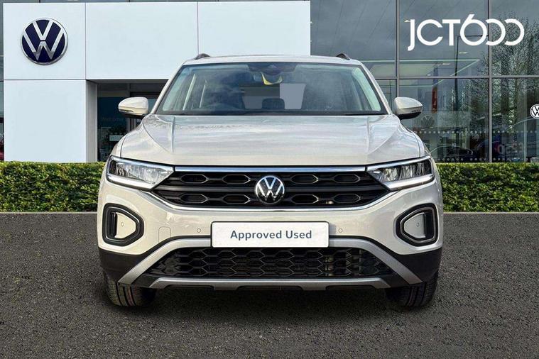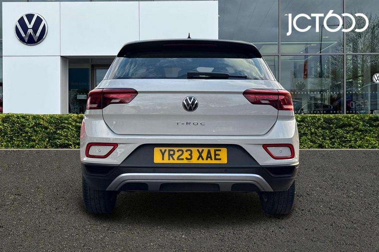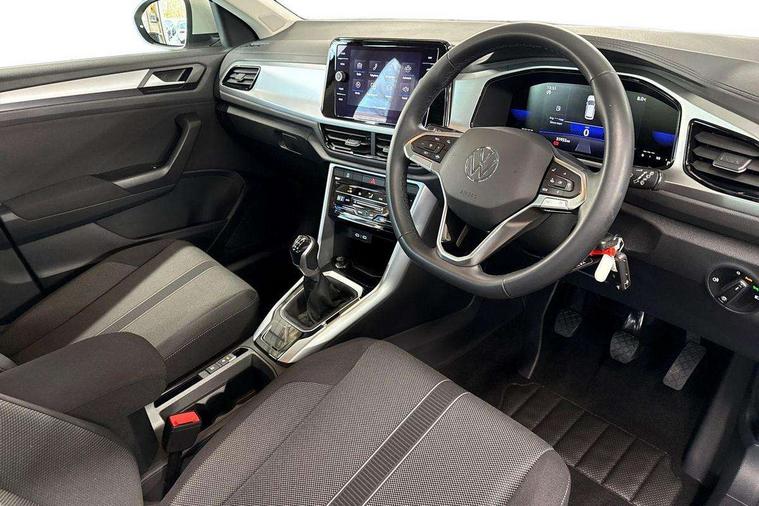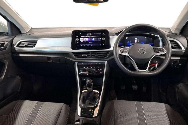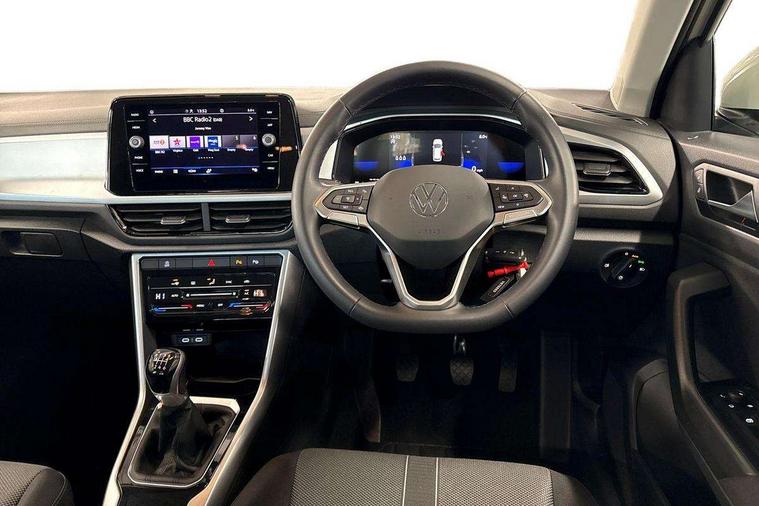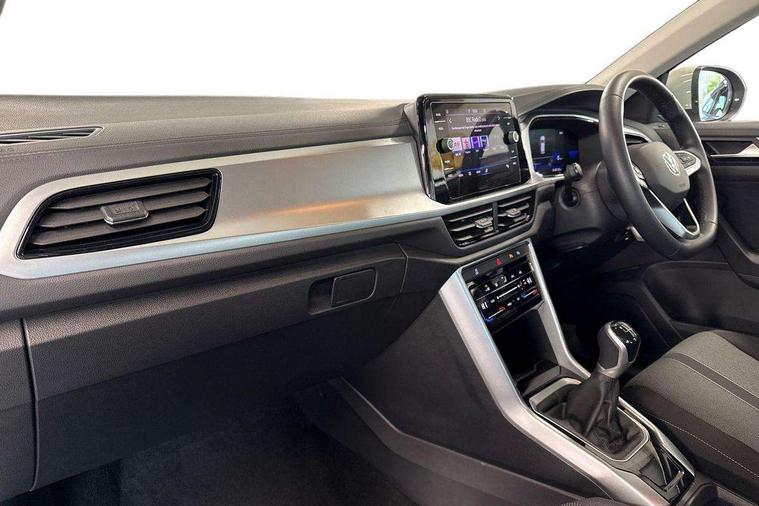 Bluetooth mobile phone interface, Driver alert system with fatigue detection, Driver tips and journey analysis, Emergency call service, Lane keeping system Lane Assist, Modified key software - reduce switch off time for key status change to Long no motion, Online services, Park assist including front and rear parking sensors, Power assisted speed sensitive steering, Service interval indicator, Tailgate/trunk lid release from outside, Think blue trainer driver tips and journey analysis, Warning sound and light for front seatbelts unfastened, Wireless app connect, Battery regeneration during braking, Front shock absorption, Rear shock absorption chassis with increased ride height, Start/stop function with battery regeneration, DAB Digital radio, Diversity antenna for FM reception, Front and rear 6 speakers, Music playback - MP3, WMA and AAC files, Premium USB cable in choice of either Apple or Android smartphone compatibility, SD card slot, Simultaneous pairing of 2 compatible mobile devices, Title and cover art display, We Connect and We Connect Plus functionality, 3rd brake light, Auto dimming interior rear view mirror, Automatic hazard lights activation under emergency braking, Automatic headlight control with LED separate daytime running lights with coming/leaving home function, Black roof rails, Body coloured bumpers and radiator grille with chrome trim and front fog lamps with chrome bezel, Body coloured exterior mirror housings and door handles, Extended roof spoiler, Exterior mirrors aspherical on driver side, convex on front passenger side, External USB type C socket and charging sockets, Front windscreen wiper with intermittent wipe and 4 position delay, Heated rear window, LED Headlights, LED rear combination lamps, LED rear number plate lights, LED tail lamp rear comination lamps, Power windows with comfort operation and circuit breaker, Rain sensor, Rear exhaust tailpipe, Rear fog light on one side and reversing lights on both sides, Rear side wing doors, Rear wash/wipe with intermittent wipe setting, Remote electrically foldable door mirrors, puddle lights and reverse activated passenger's door mirror, 12V power socket in centre console, 3 rear head restraints, 3 seat bench in 2nd row, 4 load lashing points in luggage compartment, Air care climatronic air conditoning system with active combination filter and 2-zone temperature control, Ambient lighting with mirror logo projection, Cloth upholstery, Door and side trim panel in cloth, Drawer under drivers seat, Driver/front passenger seat height adjustment, Front centre armrest, Front comfort sports seats, Front cupholders x 2, Front reading light, Instrument lighting, white adjustable panel illumination, Interior light delay, Isofix child seat preparation, Leather gearshift handle, Load-through provision with cup holder when folded down ('Unsplit rear seat bench, split folding backrest, with centre armrest), Luggage compartment lighting, Lumbar support for driver's and front passengers seat, Non-folding front passenger seat backrest, Single front passenger seat, Storage compartment in left and right luggage area, Storage compartment in rear doors, Storage compartments in driver and front passenger doors, Sunvisors with illuminated vanity mirrors, Variable boot floor, height adjustable and removable, Driver assistance pack without proactive passenger protection - T-Roc, 3 point height adj front seatbelts + pretensioners, 3 point seatbelts in outer rear with ECE label, ABS, Child locks on rear doors, Driver and front passenger airbag with front passenger airbag deactivation, Driver and front passenger safety-optimised head restraints, Drivers seatbelt reminder, Electronic parking brake, Electronic Stability Control (ESC) inc EDL (Electronic Differential Lock) and ASR (Traction Control), Front and rear passengers curtain airbag system including front side airbags, Front assist with city emergency braking and pedestrian monitoring, Front disc brakes, Front seat side impact airbags, Hill start assist, Predictive pedestrian protection, Rear disc brakes, Single tone horn, Tyre pressure loss indicator, Volkswagen roadside assistance, Alarm with interior protection, Anti-theft alarm system with interior monitoring, backup horn, and towing protection, Remote central locking with SAFELOCK, radio remote control with 2 remote control folding keys, Pewter matt decorative inserts for intrument panel, centre console and door panels at the front, Trims for alloy wheels,
