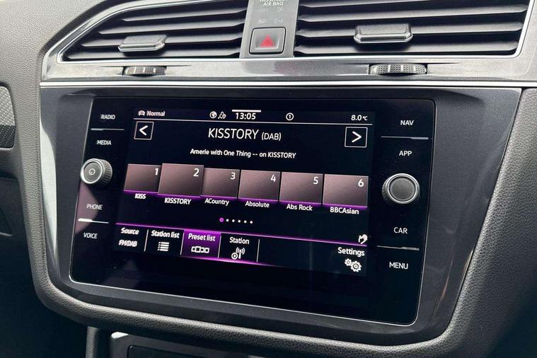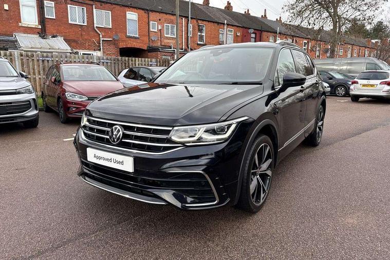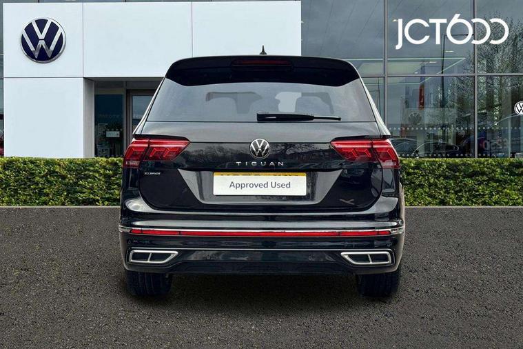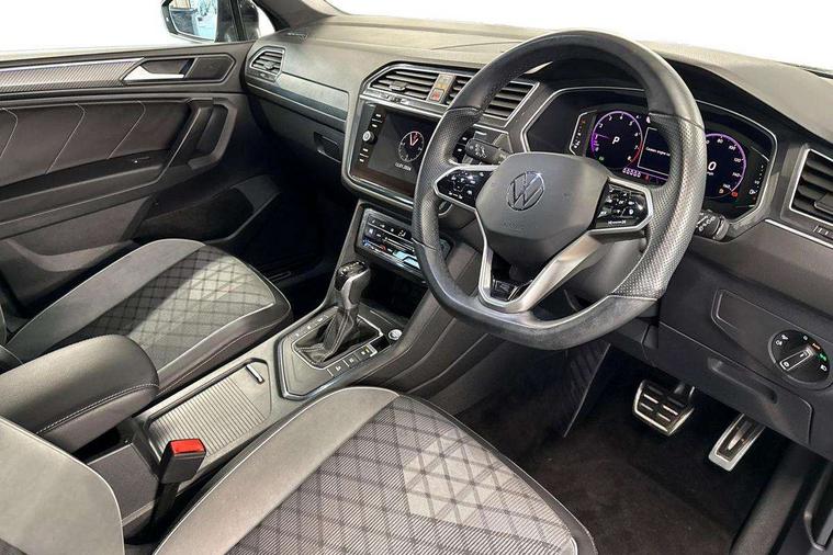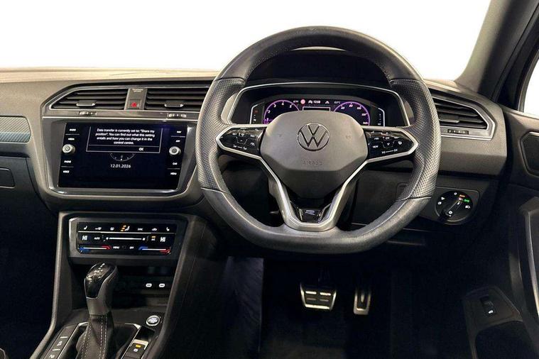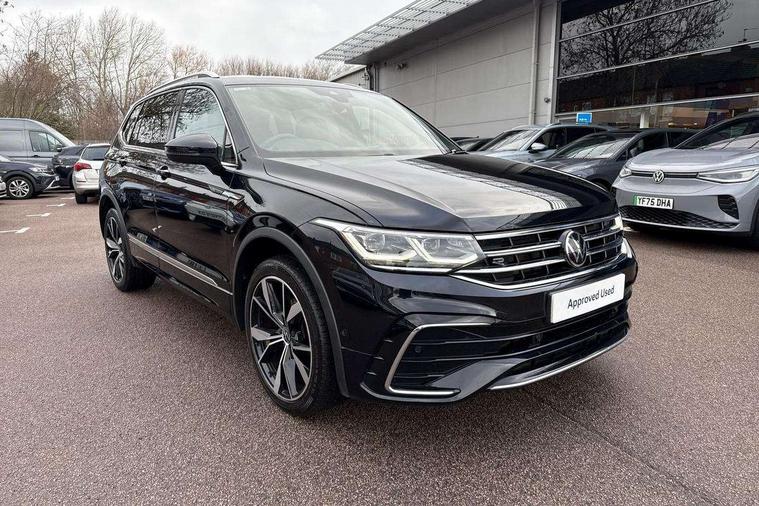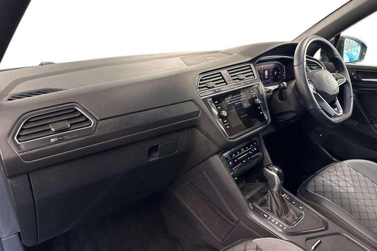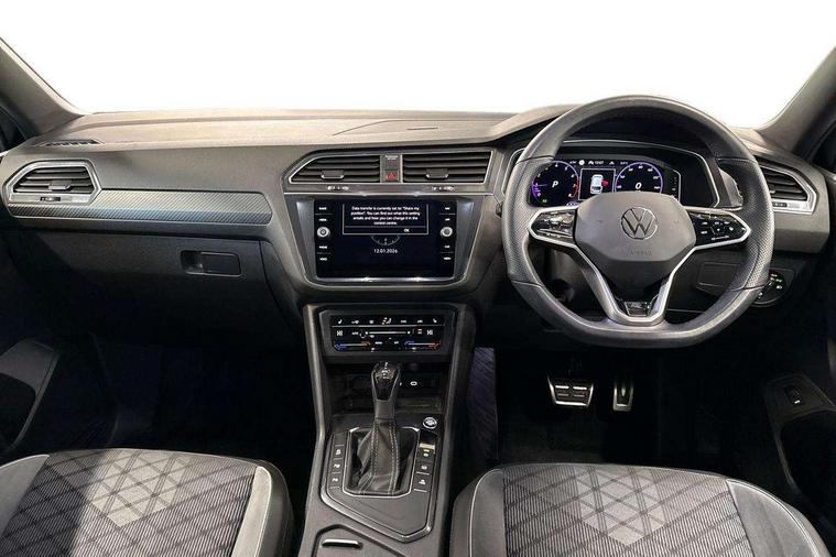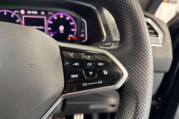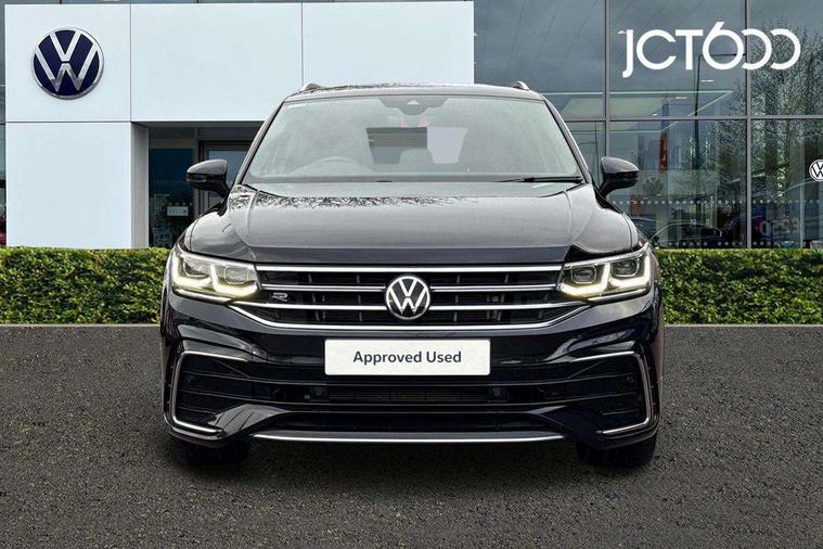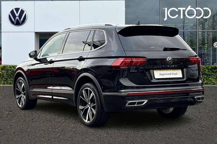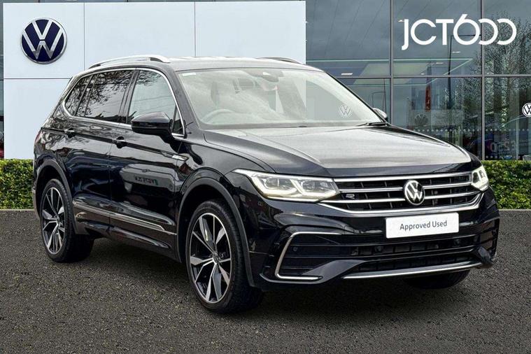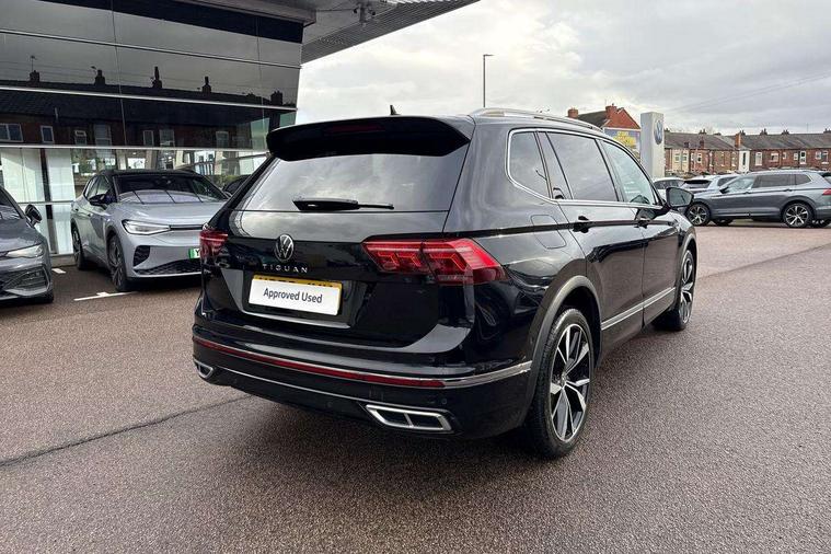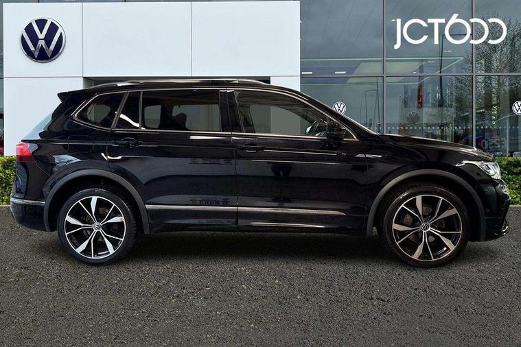 Adaptive cruise control, App-Connect, Digital cockpit pro, Driver alert system, Driver profile selection, Dynamic road sign display, eCall emergency call service, Electric boot lid, Lane change system side assist and rear traffic alert, Lane keeping system Lane Assist, Mobile phone interface comfort with inductive charging feature, Multifunction front facing camera, Progressive steering, Speedo and rev counter, electronic odometer, trip, service interval display and exterior temperature gauge, Front wheel drive, Start-stop system with battery regeneration (recuperation - energy recovery during braking), 2 USB-C ports in the front, 1 USB-C charging socket on the center console in the rear, 8 Speakers, DAB Digital radio, Diversity antenna for FM reception, Radio, Auto dimming interior rear view mirror, Automatic headlight control system, Chrome mouldings on side window, Coming/leaving home lighting function, Dark red rear combination lamps in LED technology, Exterior badge deletion, Exterior mirror housings painted in silver, Headlight range control, Heated windscreen washer jets, LED headlamps with LED separate signature running light and dynamic cornering light, Poor weather light and cornering light, Rain sensor, Rear fog light, Rear side wing doors, Rear spoiler in R style, Rear wiper, Silver roof rails, Third brake light, 12-volt outlet in centre console rear and luggage compartment, 12V socket in centre console, 3 head restraints in rear, 3 individual folding 2nd row seats, 3rd row 2 individual seats, Air Care Climatronic 3 zone automatic climate control with enhanced air filter and controls in the rear, Black roof lining, Door and side trim panel with leatherette insert, Drawers under front seats, Driver and front passenger seat height adjustment, Foldable front passenger seat backrest, Front + rear carpet mats, Front centre armrest, Front footwell illumination, Heated front seats, Heated leather wrapped multifunction sports steering wheel with touch control and shift paddles, Illuminated scuff plates, ISOFIX anchorage points for mounting 2 child seats on rear seats and i-Size child seats, Leather gearshift handle, LED interior light with switch off delay/dimmer and 2 front/rear LED reading lights, Stainless steel pedals, Sun visors with illuminated vanity mirrors, Ambience pack - Tiguan Allspace R Line, Driver assistance plus package - Tiguan Allspace, 3 point seat belt for centre rear seat, 3 rear three point seatbelts, ABS+EBD+Brake assist, Driver and front passenger safety-optimised head restraints, Driver's and front passenger's airbag with front passenger's airbag deactivation switch, Electronic parking brake, Electronic Stability Control (ESC) inc EDL (Electronic Differential Lock) and ASR (Traction Control), Height adjustable front 3 point seatbelts + pretensioners, Manual rear child locks, Pedestrian monitoring, PreCrash preventive occupant protection Front and rear, Rear disc brakes, Side airbag in front and rear with curtain airbag, Two tone horn, Warning buzzer for seatbelts if unfastened, Anti theft alarm system with interior monitoring, backup horn and towing protection, Anti-theft wheel bolts, Electronic steering lock, Remote central locking with 2 remote folding keys,