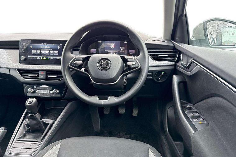 8" Digital display, Advanced driver attention and drowsiness monitor, Bluetooth, e-Call (emergency call), Front assist system, PAS, Rear parking sensors, Speed limiter, Tailgate, Traffic sign recognition, Wireless smartlink, 4 USB C ports, 8 Speakers, 8.25" Skoda infotainment display, DAB radio, Auto dimming rear view mirror, Automatic headlamp activation with Coming home and Leaving home feature, Automatic high/low beam, Body colour bumpers, Body colour door mirrors and handles, Chrome moulding around grille, Front and rear electric windows, Full LED headlights, Heated rear window, LED 3rd brake light, LED brake lights, LED daytime running lights, LED front turning lights, LED high beam, LED low beam, LED taillights, Rear LED fog light, Rear side wing doors, Rear wiper, Tinted windows, 12V socket in luggage compartment, 3 seat bench in 2nd row, Black / Grey armrest stitching, Black hotstamping, Cargo elements, Chrome inner door handles, Door inserts in satin black, Driver and passenger sun visors with vanity mirror, Dual zone climate control, Front and rear roof lights, Front centre armrest, Front head restraints, Glasses storage in roof liner, Height adjustable driver seat, Height adjustable passenger seat, Ice scraper, Illuminated glove compartment, Inner circulation control with pollen filter, ISOFIX for front passenger seat, Isofix preparation for back seats, Leather gearknob and handbrake lever, Loft cloth upholstery, Luggage net under rear parcel shelf, Manual lumbar support for front seats, Net package and top tether hooks in boot space, Pearl grey ceiling, Pocket on the back of both front seats, incl. mobile phone pockets, Single front passenger seat, Textile floor mats, Third rear headrest, Ticket holder, Top tether for front passenger seat, Umbrella in driver's door, 3x3 point rear seatbelts, ABS, Child locks, Curtain airbags and front side airbags, Disc brakes, Driver and front passenger airbags, ESP, Hill hold control, Manual leather parking brake, One tone horn, Passenger airbag switch off function, Seatbelt reminder for driver and front passenger, Tyre pressure monitoring system, Anti theft alarm system with interior monitoring, backup horn and towing protection, Anti-theft wheel bolts, Remote central locking with 2 remote folding keys, SAFE function for remote central locking, Decord pad, door inserts Kota uni,