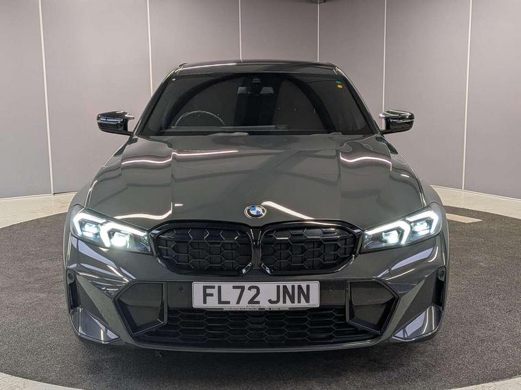 Active guard plus, Attentiveness assist, Automatic Start/stop button, BMW iDrive, BMW Teleservices, Condition based service, ConnectedDrive Services, Driving experience switch, Oil sensor for level and grade, Preparation for driver assistance, Shifting point display, Smartphone integration, Variable sport steering, 48V Mild hybrid technology, Double joint spring strut front axle, Fuel tank breather system, Larger capacity fuel tank, M Sport differential, Sport automatic transmission with steering-wheel mounted gearshift paddles and launch control, DAB tuner, 3rd brake light, Acoustic glazing, Adaptive LED Headlights, Auto dimming rear view mirror, Automated High beam assist, Automatic headlight beam throw control with load dependent regulating reaction, dynamic compensation of braking dive and acceleration squat, BMW emblem, engine compartment lid and tailgate, BMW individual lights shadow line, BMW M Individual high gloss shadow line with extended contents, Body colour roof fin, Door sill strips, Electric windows - front and rear, with open/close fingertip control, anti-trap facility and comfort closing, Follow me home headlight function, Front and rear bumper system with replaceable deformation elements, Front apron plastic in body colour, Fuel filler flap - right rear in body colour, Heated washer jets, High gloss shadow line exterior trim, Illuminated bow type door handles in body colour drivers side with door lock, Interior rear view electrochromatic mirror with automatic anti dazzle function, LED daytime running lights, LED rear lights, LED turn indicator, Licence plate panel integrated into front bumper and tailgate, M Sport spoiler, Matt black B-pillar finsher, Matt black window recess cover, Model designation on right side of tailgate, One piece front bumper cover including towing eye cover in body colour, Rain sensor with automatic headlight activation, Rear boot, Rear side wing doors, Reversing lights, Side frame decorative moulding black matt, Sun protection glass, Visible exhaust tailpipe finisher, Welcome lights in interior and door handle area, 12V power socket in front storage compartment, 2 front cupholder in centre console with clamping elements and matt black inlay, 3 seat bench in 2nd row, 3 zone automatic air conditioning, 40:20:40 split folding rear seat with loading system, Anthracite headlining, Armrest integrated in front and rear door trim + front centre console armrest, BMW ID, Driver backrest width adjustment, Folding rear centre armrest with 2 cupholders, Front and rear door exit lighting (left / right), Front and rear footwell lighting, Front and rear headrests, Front and rear reading lights, Front and rear velour floor mats, Heated front seats, Height adjustable mechanically and infinitely variable steering column, Illuminated armrest storage compartment, Illuminated glove compartment, Illuminated luggage compartment, Lashing eyelets in luggage compartment, LED ambient lighting with welcome carpet light, M Sport multifunction leather steering wheel, Make-up mirror lights, Single front passenger seat, Standard seat for driver and passenger with manual adjustment, Sunvisors with vanity mirrors and ticket pocket, Toolkit located in luggage compartment, Connected pack professional - 3 Series Saloon/Touring, Interior and exterior mirror pack - 3 Series Touring/Saloon, M Aerodynamics package - 3 Series Saloon/Touring, M sport exterior styling pack - 3 Series Saloon/Touring, Storage compartment pack - 3 Series Saloon/Touring, 3x3 point rear seatbelts, BMW emergency call, Child locks on rear doors, Crash sensor activating of airbags, Unlocking doors, hazard warning lights, fuel cut off, interior lighting+activation of safety battery terminal clamp, Driver and front passenger with seat occupancy detection for driver's and passenger side, Driver and passenger side airbags, body protection at side and airbags deploy from seat backrests, Dynamic brake control, Dynamic stability control + (DSC+) - Anti-lock Braking System (ABS) with brake assist and cornering brake control + Automatic Stability Control (ASC), Dynamic Traction Control - DTC, Electromechanical parking brake including automatic hold function and automatic release of the parking brake when pulling away, Electronic differential lock control (EDLC), Head airbags in 1st and 2nd row, head protection at side, curtain airbags open from headliner above 1st and 2nd row, M sport seatbelt, Plastic fuel tank, Side impact protection, Tyre pressure monitoring with three level warning strategy, Ventilated front and rear disc brakes, Warning triangle and first aid kit, Alarm system, Centre lock switch, Closing system with central locking, Electronic vehicle immobiliser, Sensatec instrument panel,